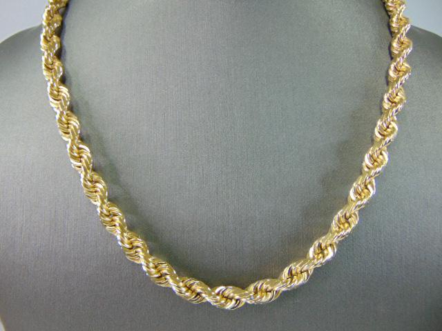 FOR SALE IS THIS HEAVY VINTAGE ESTATE 14K YELLOW GOLD ROPE NECKLACE THAT MEASURES 18" LONG BY ABOUT 1/4" WIDE. THE NECKLACE WEIGHS 67.1g. THIS WOULD MAKE A GREAT GIFT FOR THAT SPECIAL SOMEONE. ANY QUESTIONS PLEASE DO NOT HESITATE TO ASK. BE SURE TO CHECK OUT SOME OF MY OTHER GREAT ITEMS UP FOR SALE. THANK YOU.