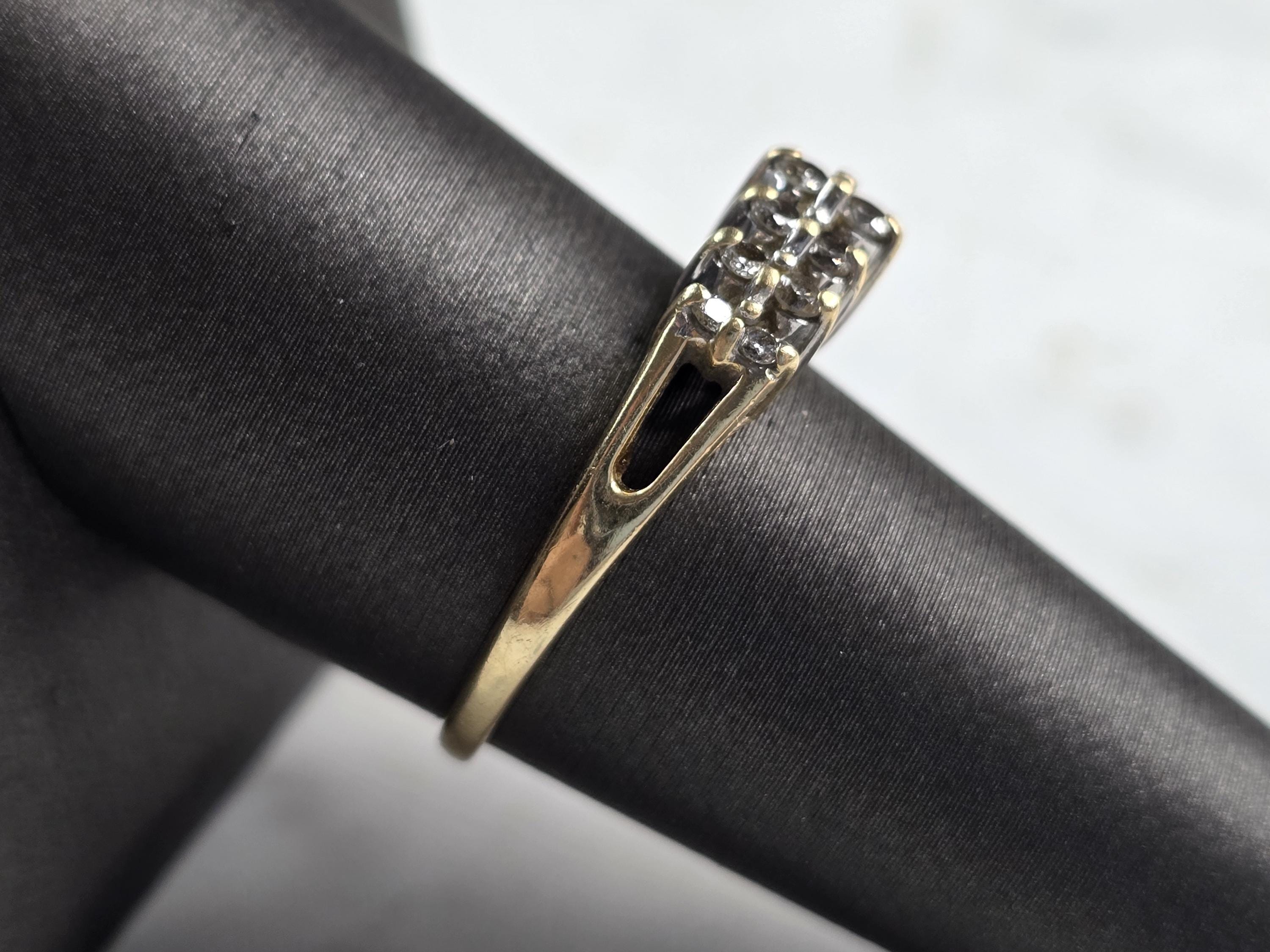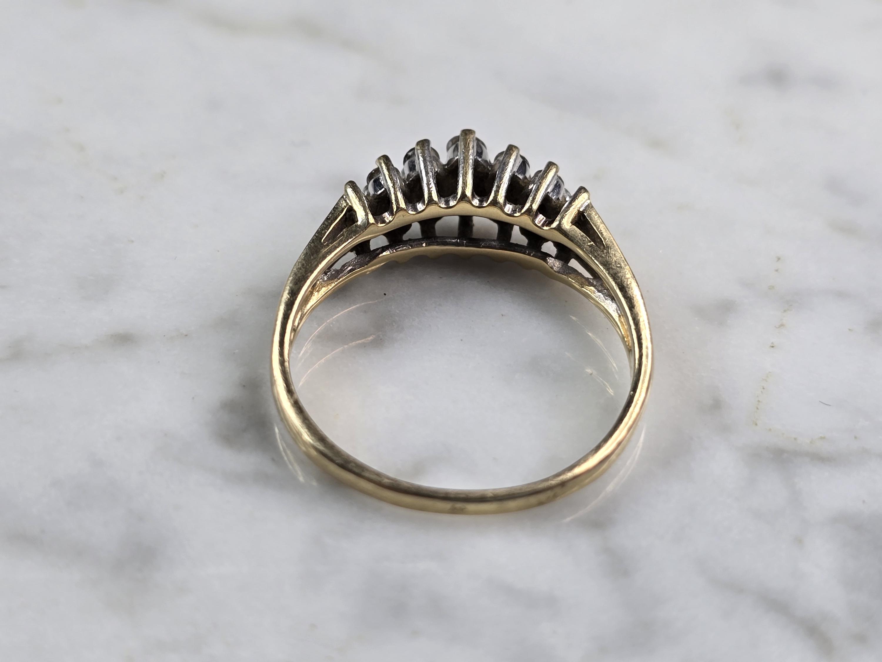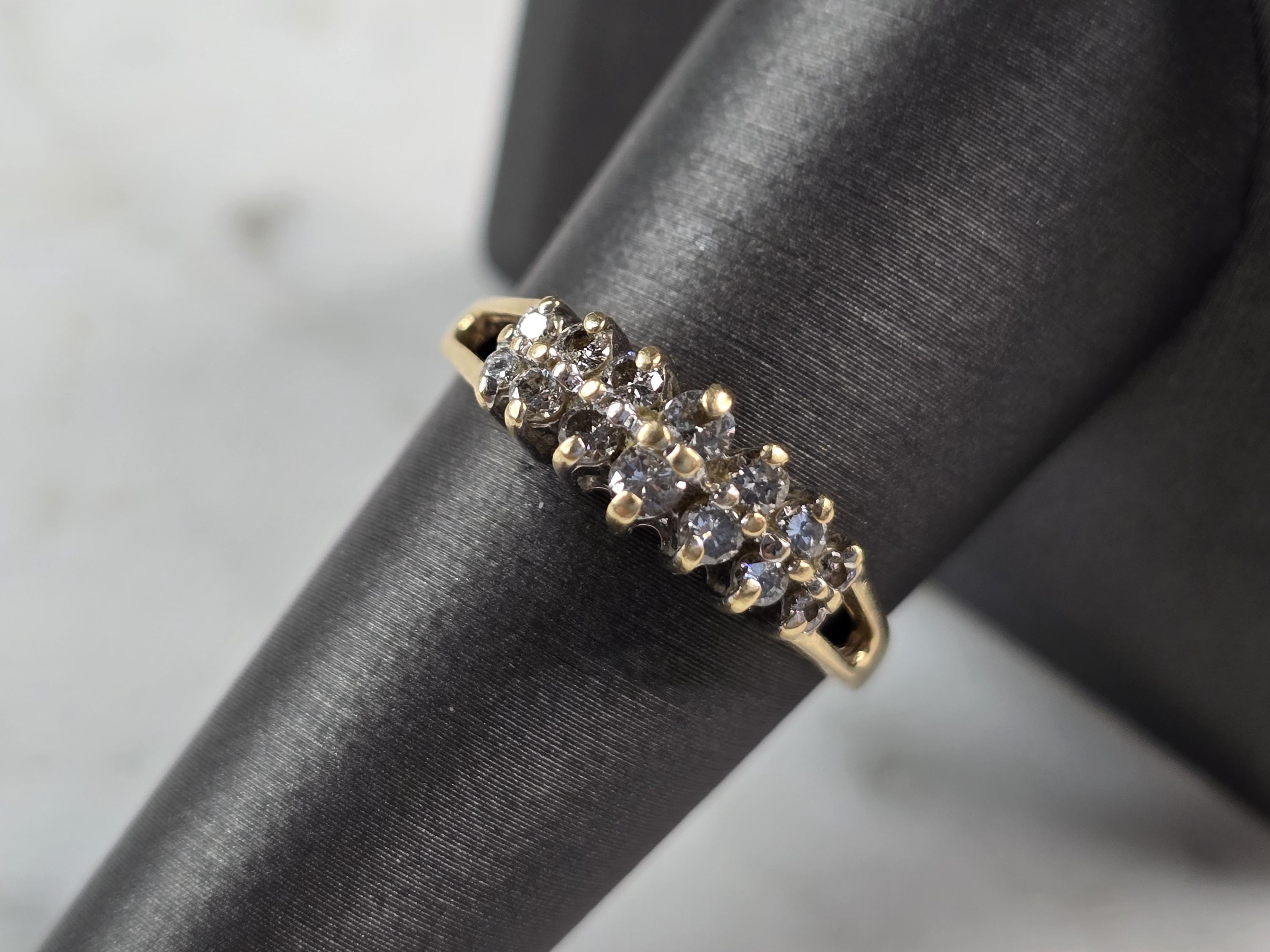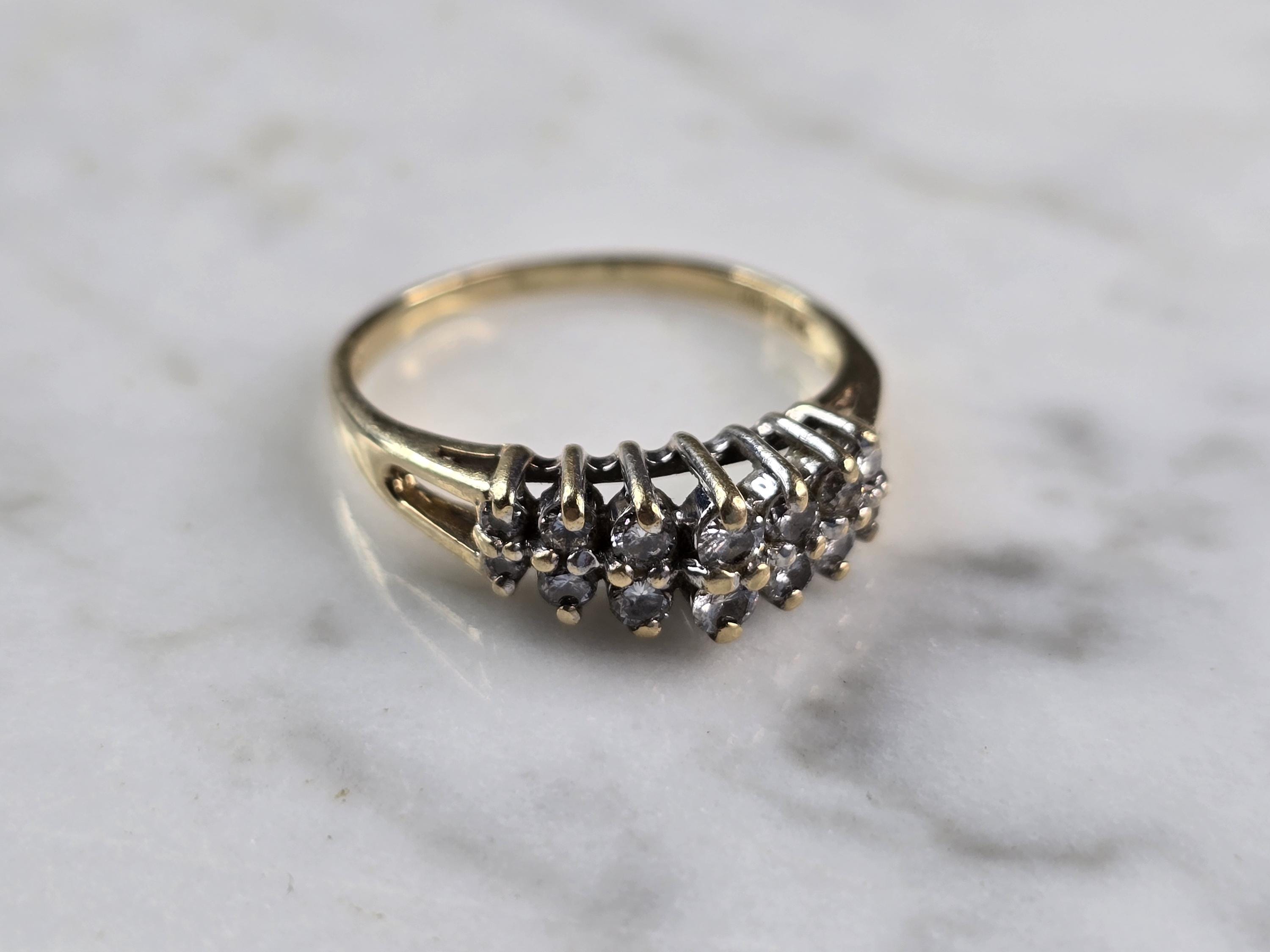 A WOMENS VINTAGE ESTATE 14K YELLOW GOLD DIAMOND CLUSTER RING WITH ABOUT 0.46cts OF DIAMONDS. THE TOTAL WEIGHT IS 3.3g, AND IS A SIZE 8.25. RING IS MARKED "14KP, MAGIC-GLO. THE "P" STANDS FOR PLUMB NOT PLATED. ANY QUESTIONS PLEASE DONT HESITATE TO ASK. BE SURE TO CHECK OUT SOME OF OUR OTHER GREAT ITEMS UP FOR SALE. THANK YOU.