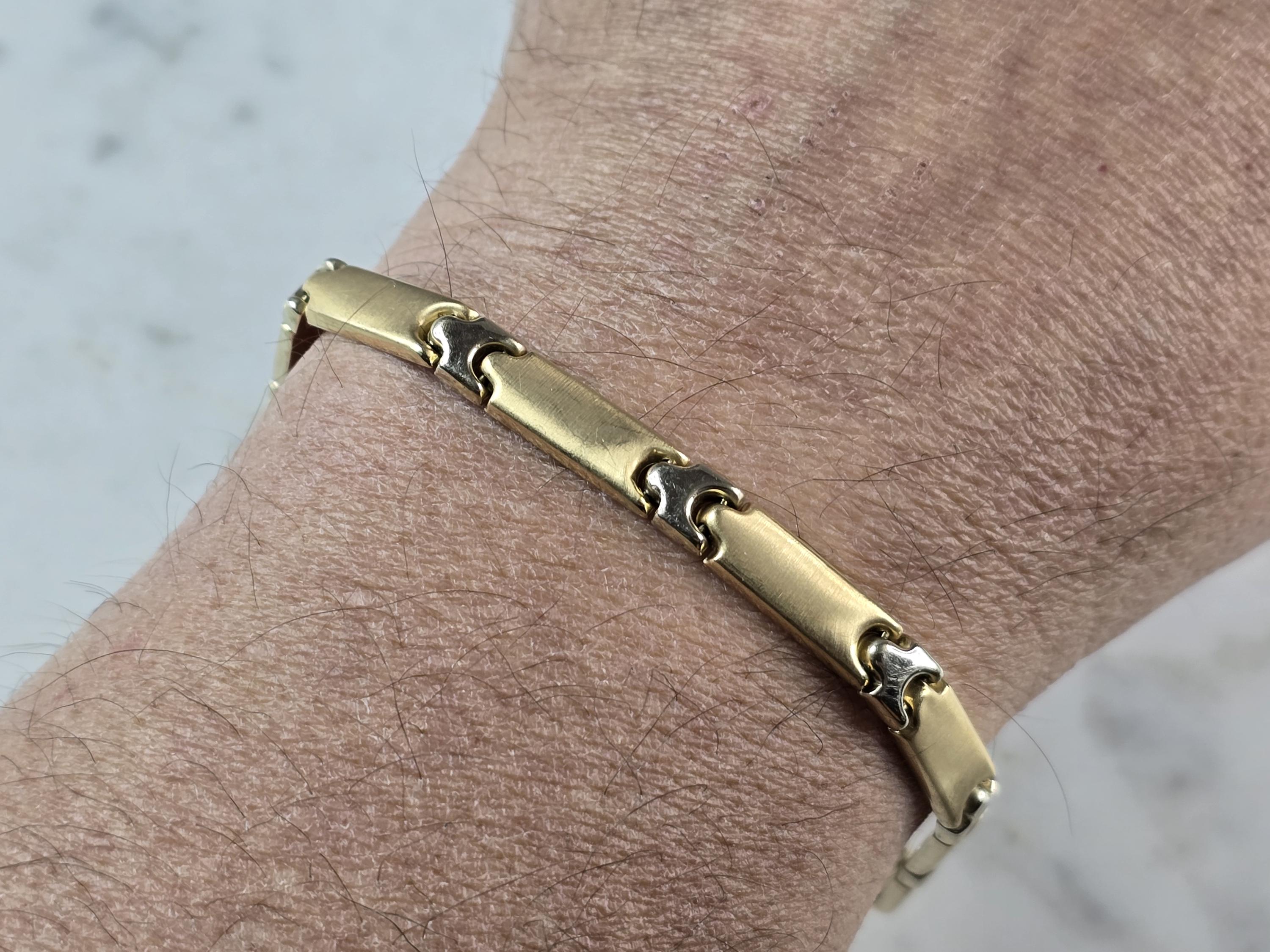 FOR SALE IS A LOVELY VINTAGE ESTATE 14K YELLOW GOLD MODERNIST BRACELET, THAT WEIGHS 10.1g. THE BRACELET MEASURES 7 3/4" LONG BY 1/4" WIDE. MAKES A GREAT GIFT FOR THAT SPECIAL SOMEONE. IF ANY OTHER QUESTIONS, PLEASE ASK. BE SURE TO CHECK OUT SOME OF MY OTHER GREAT ITEMS UP FOR SALE. THANK YOU
