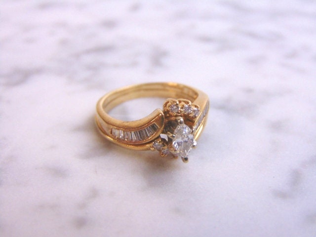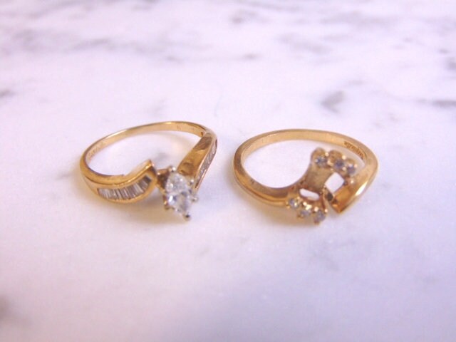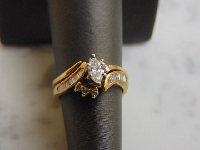 FOR SALE IS THIS LOVELY WOMENS VINTAGE ESTATE 14K YELLOW GOLD 2 PIECE DIAMOND RING SET . THE TOTAL WEIGHT IS 4.3g, AND THE RING SIZE IS A 5.25. THE CENTER DIAMOND IS ABOUT .20cts WITH A TOTAL OF ABOUT .52cts ANY QUESTIONS PLEASE DONT HESITATE TO ASK. BE SURE TO CHECK OUT SOME OF OUR OTHER GREAT ITEMS UP FOR SALE. THANK YOU.