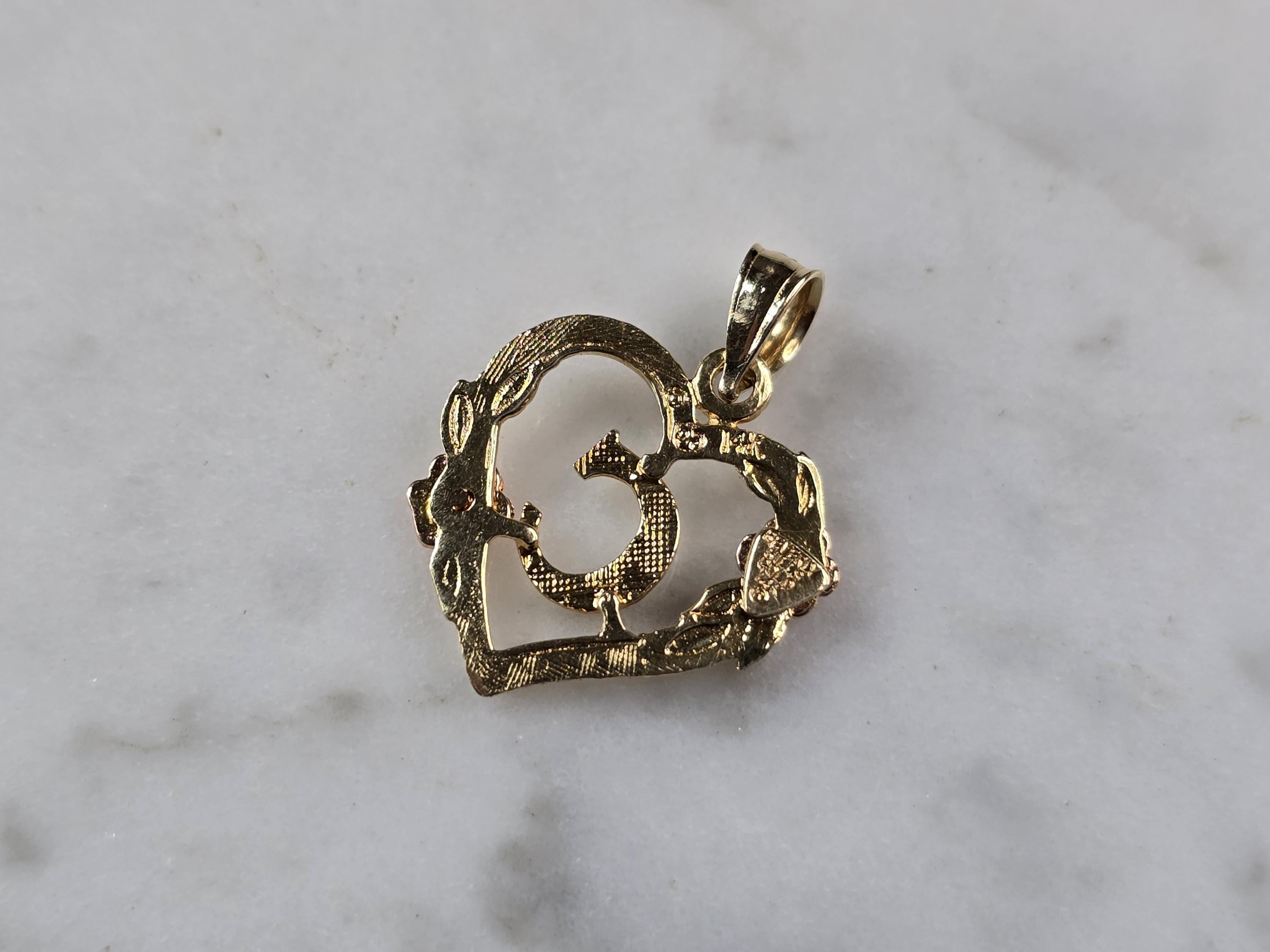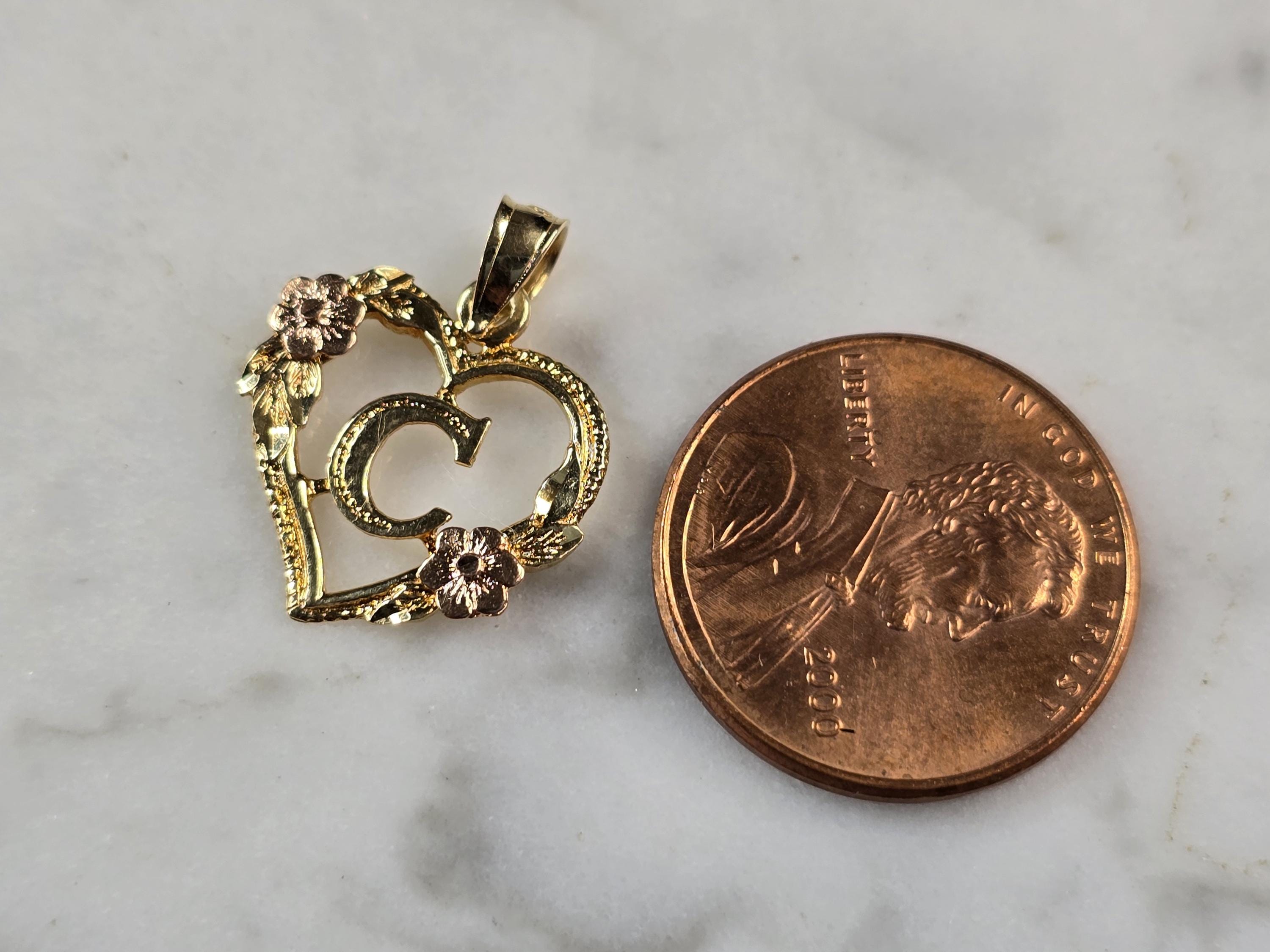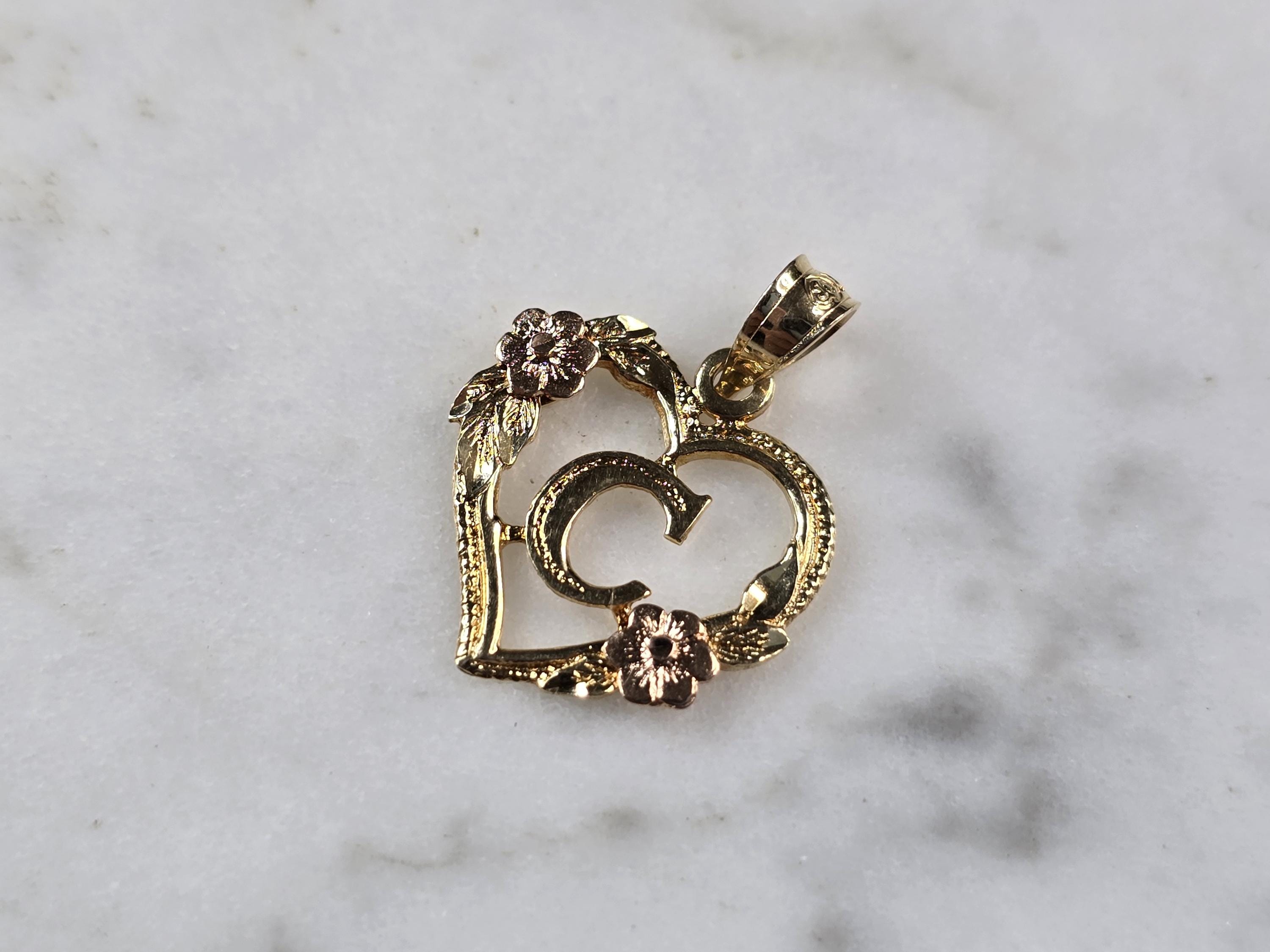A WOMENS VINTAGE ESTATE 14K MULTI TONE GOLD HEART AND ROSE PENDANT, WITH THE INITIAL "C" IN THE CENTER. THE TOTAL WEIGHT IS 0.9g, AND MEASURES 3/4" LONG BY 5/8" WIDE. PENDANT IS MARKED BEVERLY HILLS GOLD. MAKES A GREAT GIFT FOR THAT SOMEONE SPECIAL. ANY QUESTIONS, PLEASE ASK. BE SURE TO CHECK OUT SOME OF MY OTHER GREAT ITEMS FOR SALE.