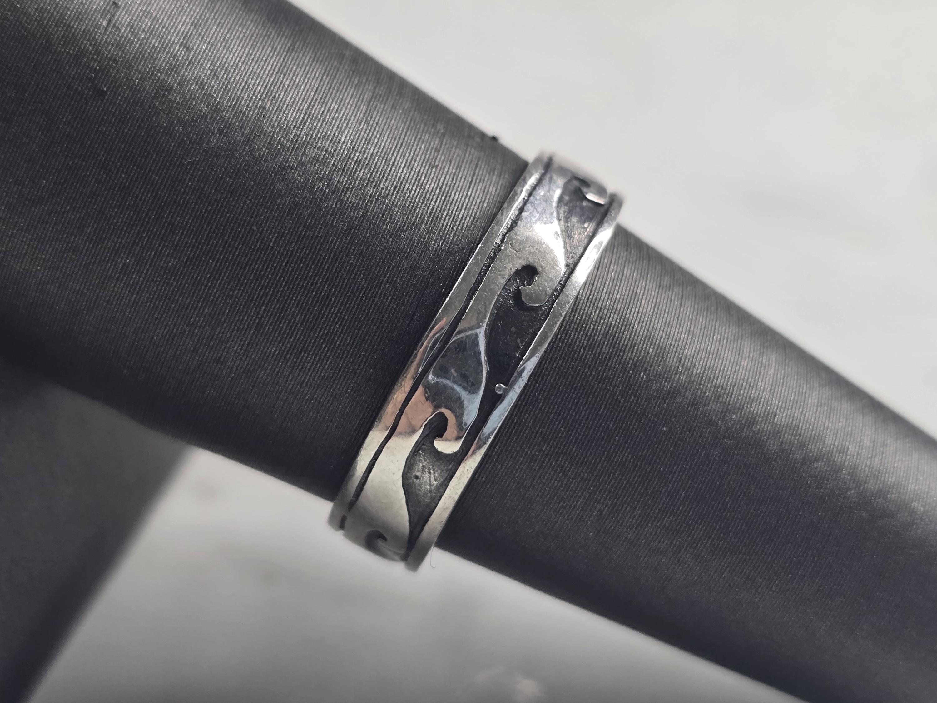 A WOMENS VINTAGE ESTATE STERLING SILVER MODERNIST WAVE RING. THE TOTAL WEIGHT IS 3.0g, AND IS A SIZE 8.0. THE WIDTH OF THE RING IS 3/16". THIS RING WOULD MAKE A GREAT GIFT FOR SOMEONE SPECIAL. ANY QUESTIONS PLEASE DONT HESITATE TO ASK. BE SURE TO CHECK OUT SOME OF OUR OTHER GREAT ITEMS UP FOR SALE. THANK YOU.