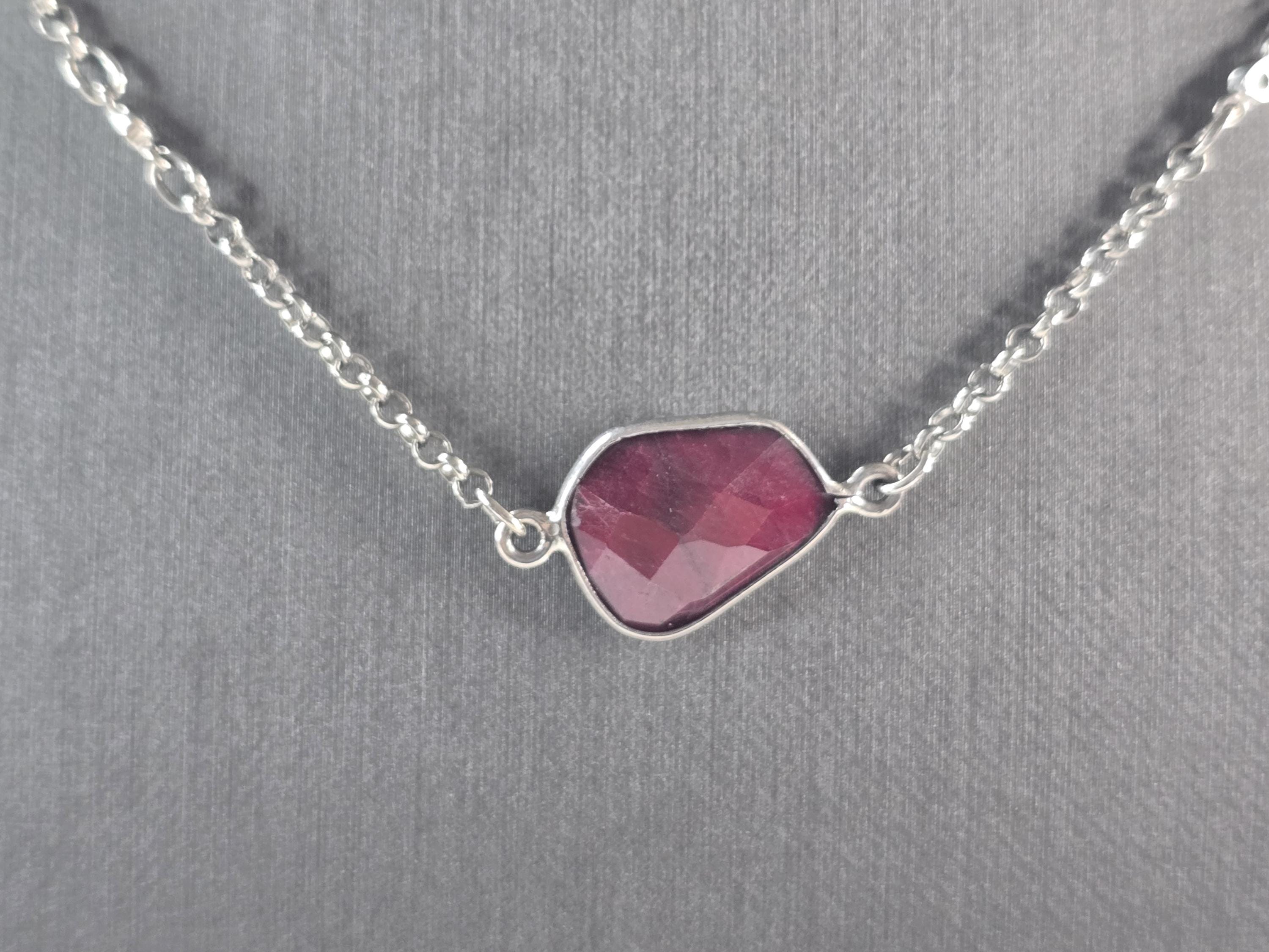 A WOMENS VINTAGE ESTATE STERLING SILVER NATURAL RUBY PENDANT NECKLACE. THE TOTAL WEIGHT IS 16.0g. NECKLACE IS 19 3/4" LONG BY 1/2" WIDE. MAKES A GREAT GIFT FOR THAT SPECIAL SOMEONE. ANY QUESTIONS PLEASE DONT HESITATE TO ASK. BE SURE TO CHECK OUT SOME OF MY OTHER GREAT ITEMS UP FOR SALE. THANK YOU.