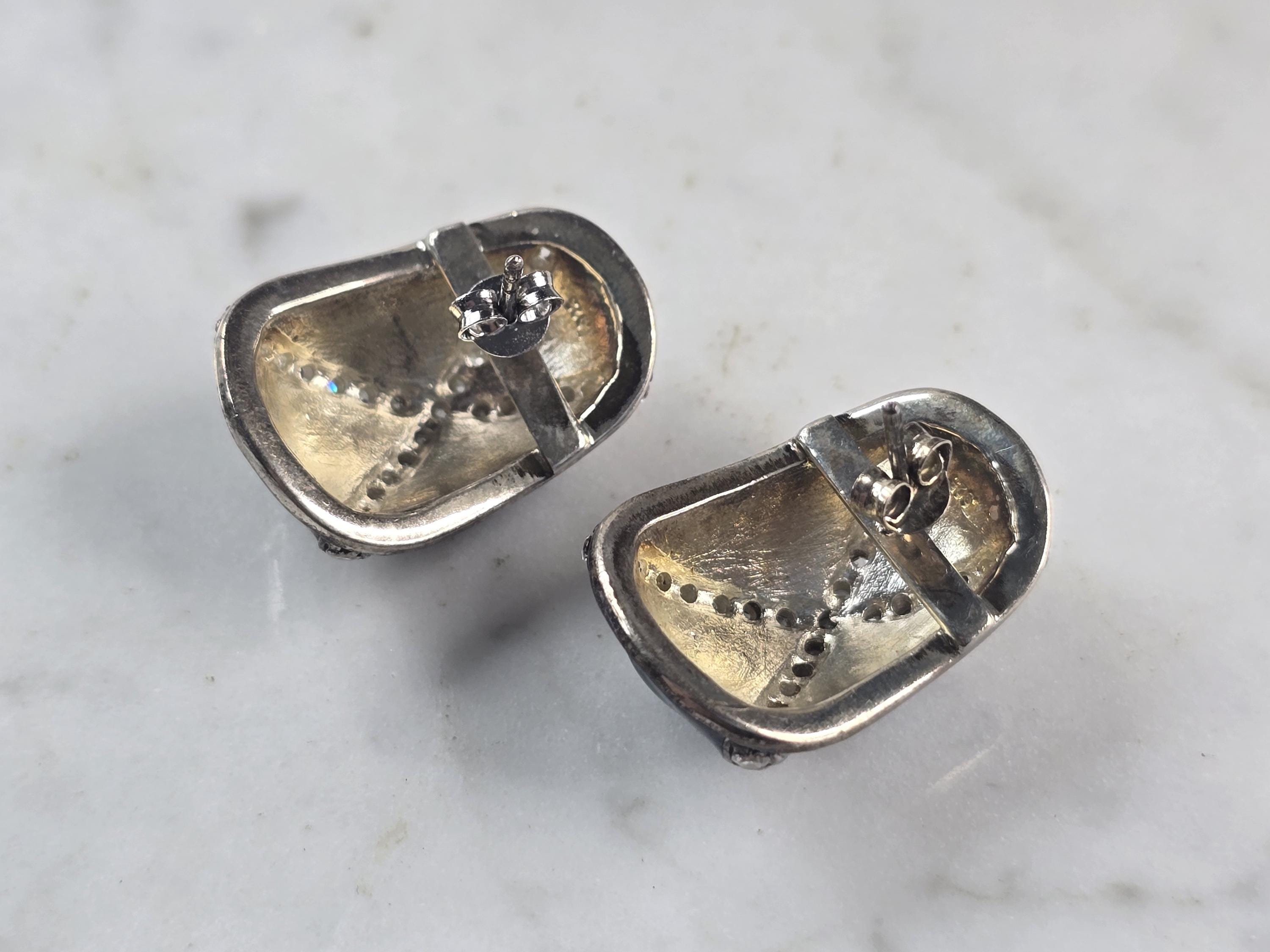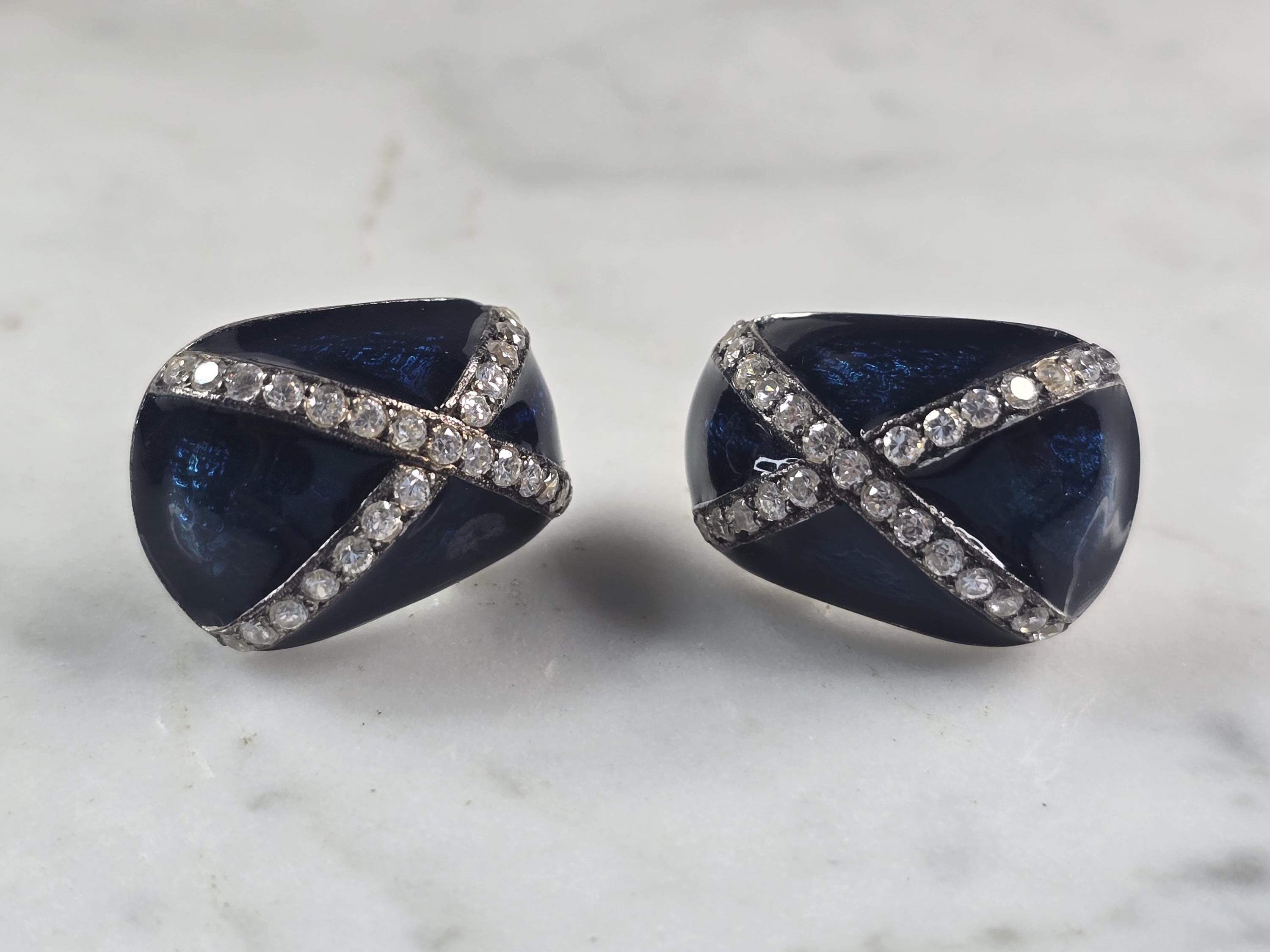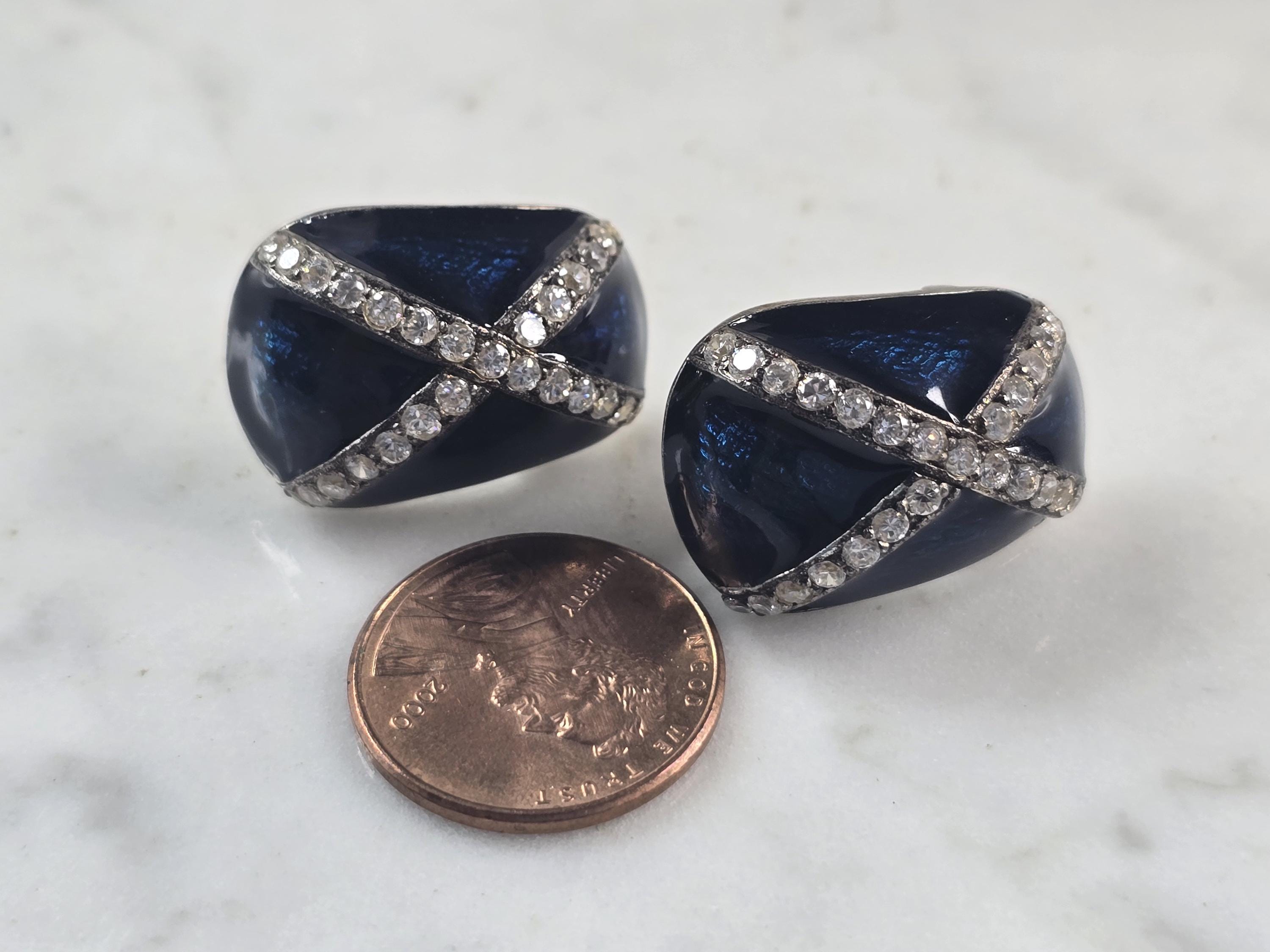 A PAIR OF WOMENS VINTAGE ESTATE STERLING SILVER AND ENAMEL EARRINGS. THE EARRINGS WEIGH 15.7g, AND MEASURE 3/4" BY 5/8" . MAKES A LOVELY GIFT FOR THAT SOMEONE SPECIAL. ANY QUESTIONS, PLEASE DON'T HESITATE TO ASK. BE SURE TO CHECK OUT SOME OF MY OTHER OTHER GREAT ITEMS UP FOR SALE. THANK YOU.