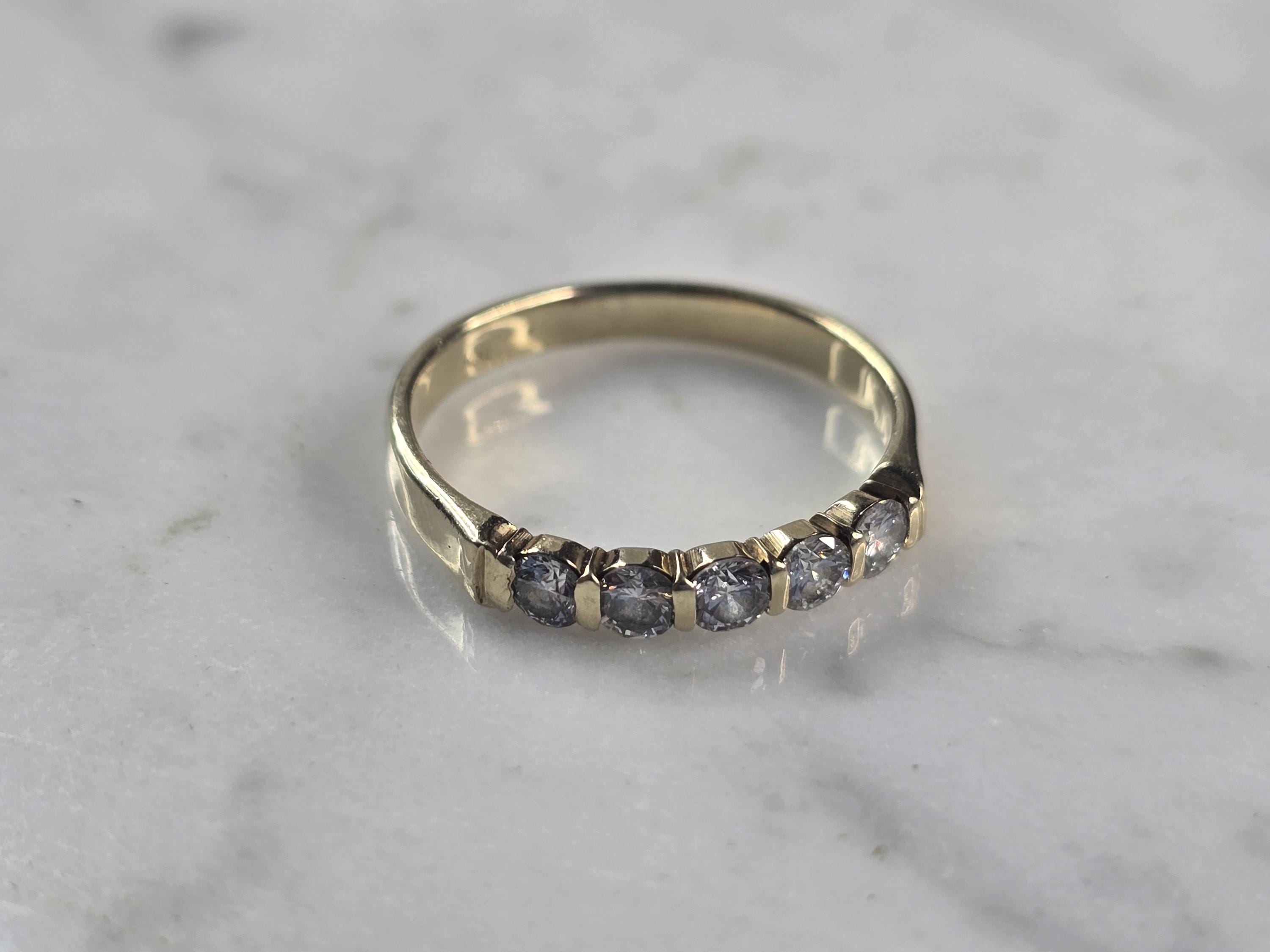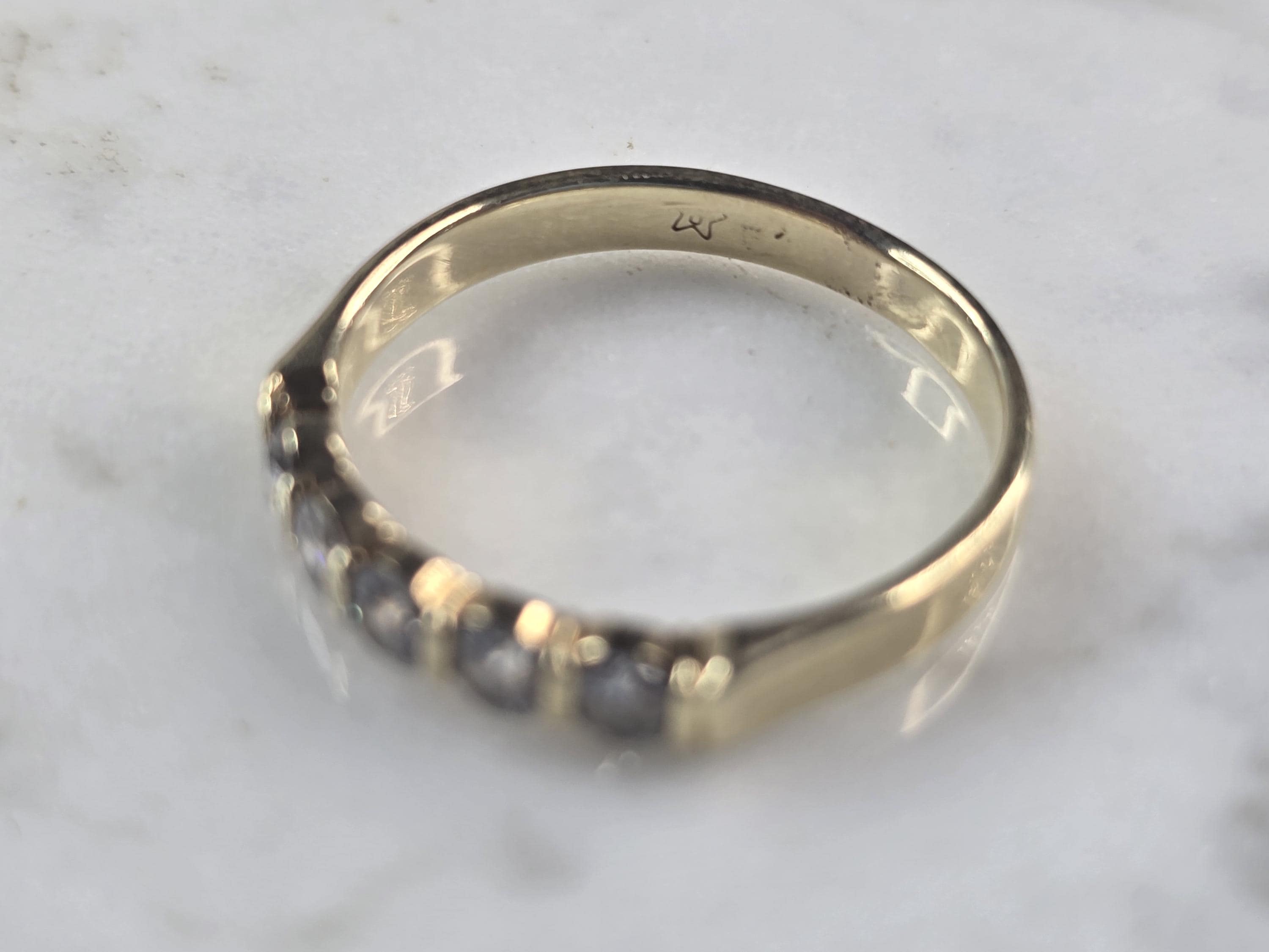 A WOMENS VINTAGE ESTATE 14K GOLD DIAMOND RING. THE RING IS A SIZE 7.0 AND WEIGHS 2.2g. THERE ARE ABOUT .25cts OF DIAMONDS IN THIS RING. THE WIDTH OF THE RING IS 1/8". RING HAS A PARTIAL MAKERS MARK. ASSAY MARK APPEARS TO WORN AWAY. RING HAS BEEN TESTED AND IS GUARANTEED TO BE AS DESCRIBED. RING MAKES A BEAUTIFUL GIFT FOR THAT SOMEONE SPECIAL. ANY QUESTIONS, PLEASE ASK. BE SURE TO CHECK OUT SOME OF MY OTHER GREAT ITEMS UP FOR SALE. THANK YOU