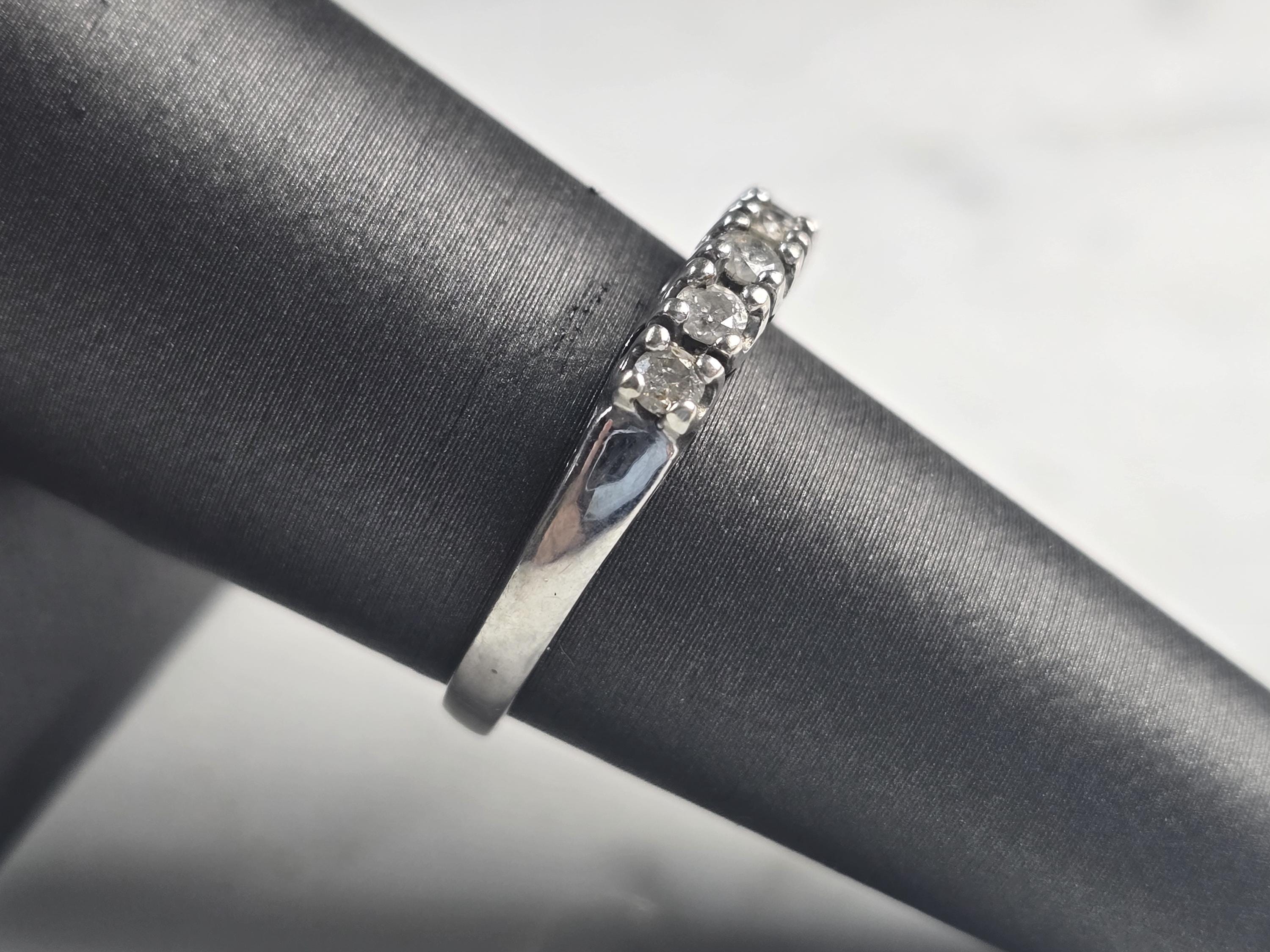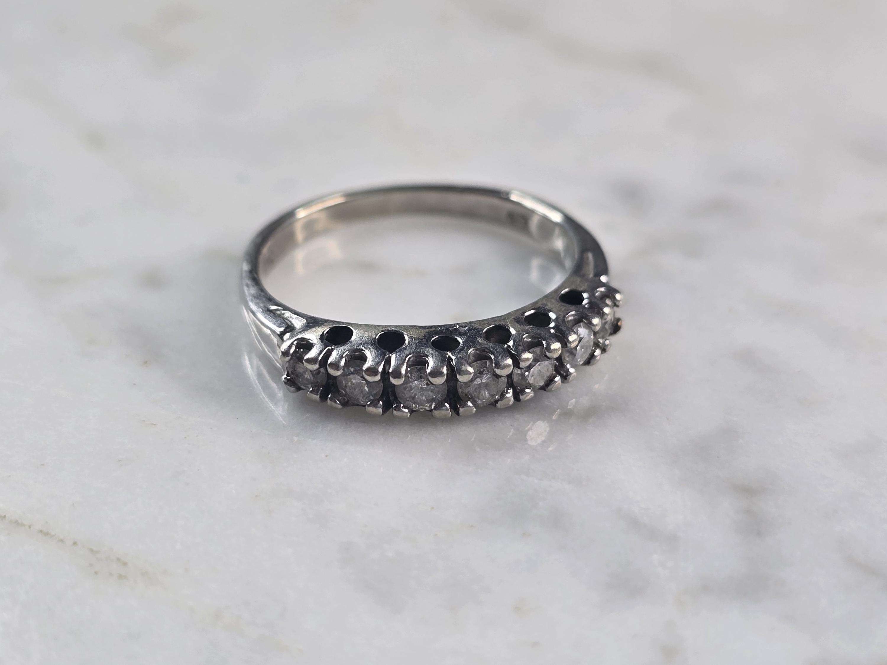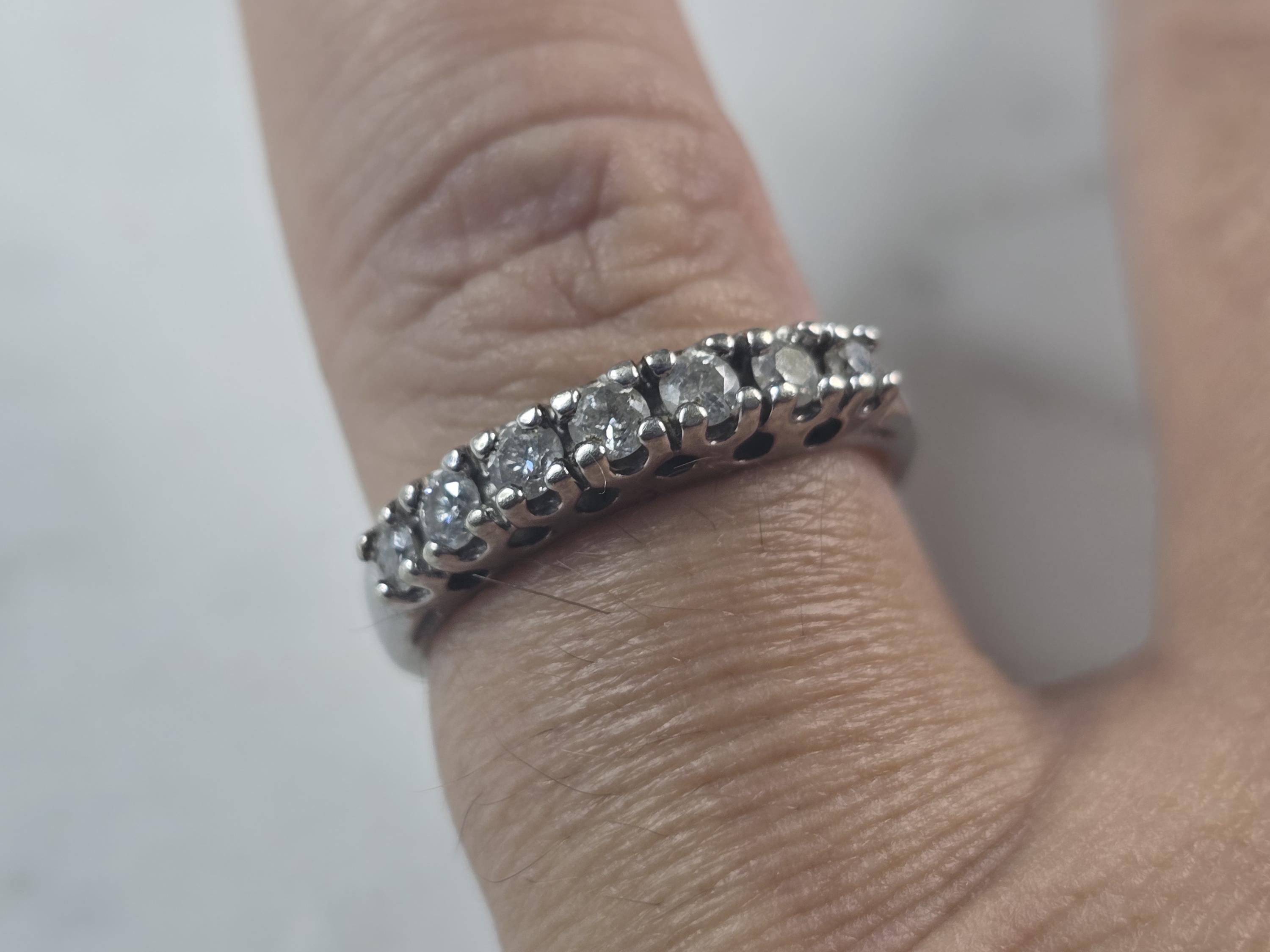 A WOMENS VINTAGE ESTATE 10K WHITE GOLD DIAMOND RING. THE TOTAL WEIGHT IS 2.3g, AND IS A SIZE 7.25. THERE ARE ABOUT 0.35cts OF DIAMONDS IN THE RING. THE WIDTH OF THE RING IS 1/8". MAKES A GREAT GIFT FOR THAT SOMEONE SPECIAL. ANY QUESTIONS, PLEASE ASK. BE SURE TO CHECK OUT SOME OF MY OTHER GREAT ITEMS FOR SALE.