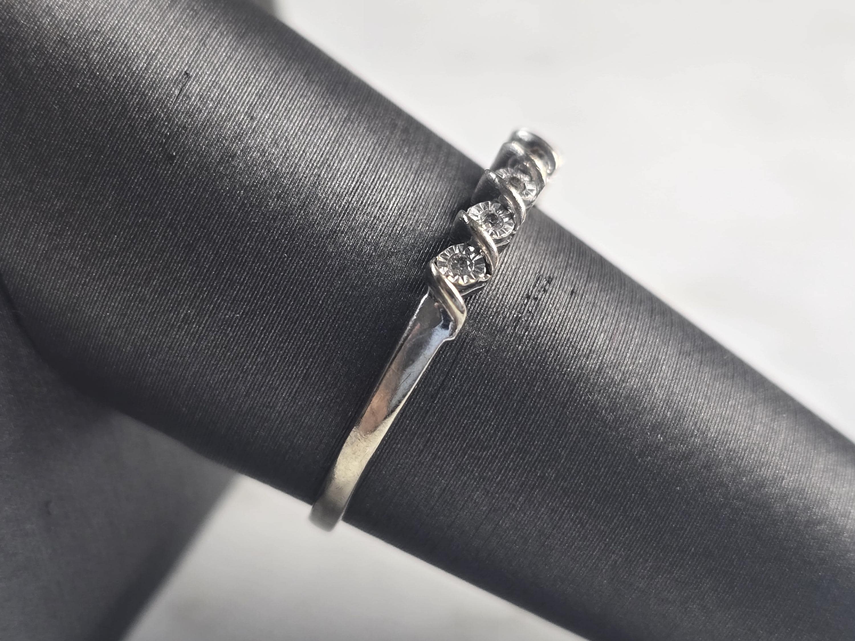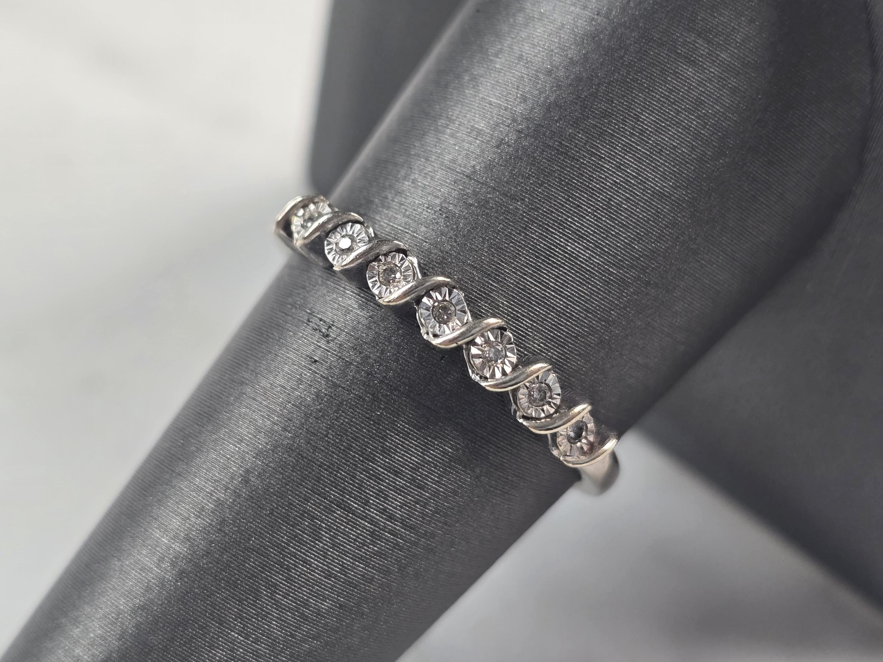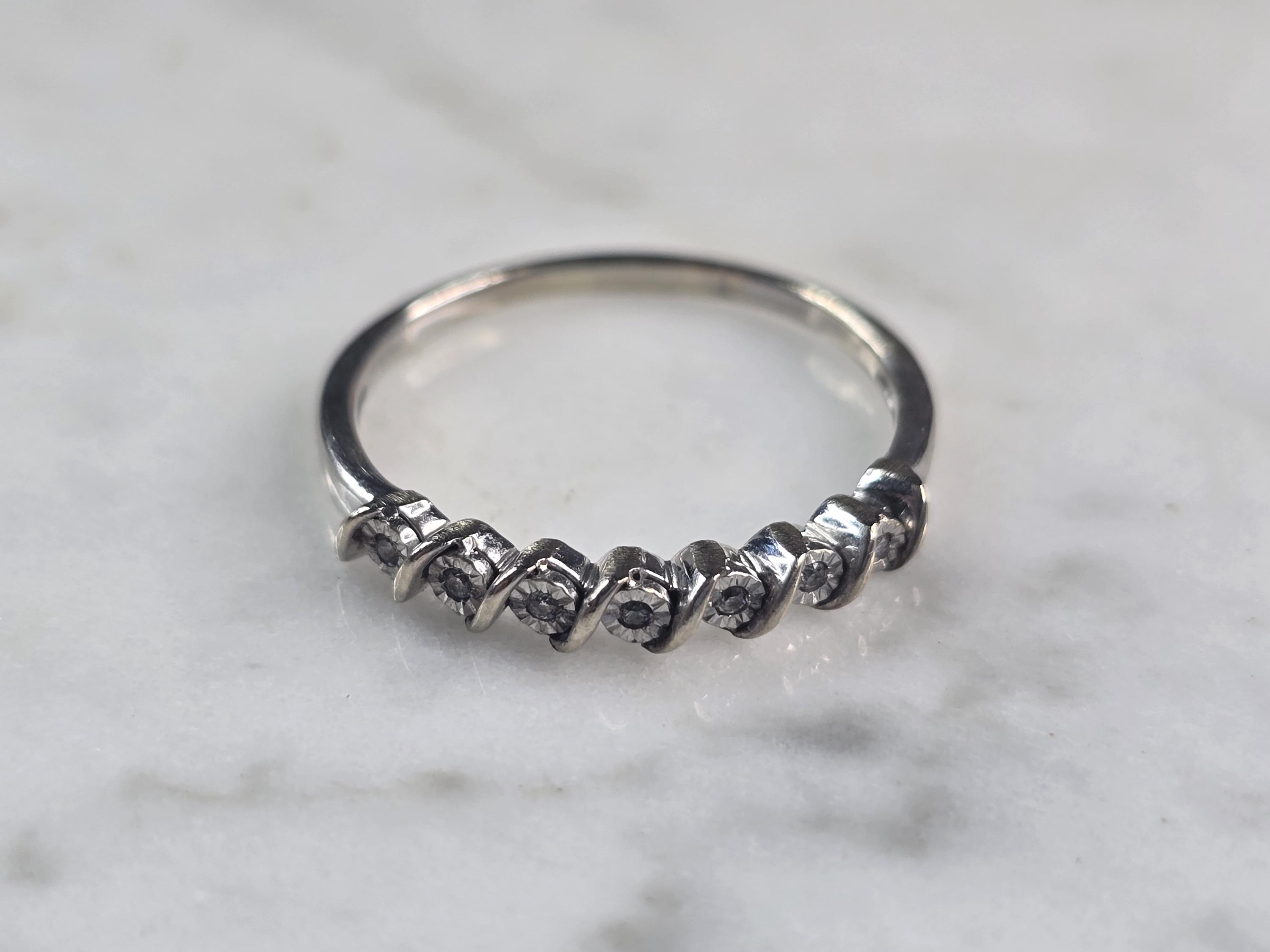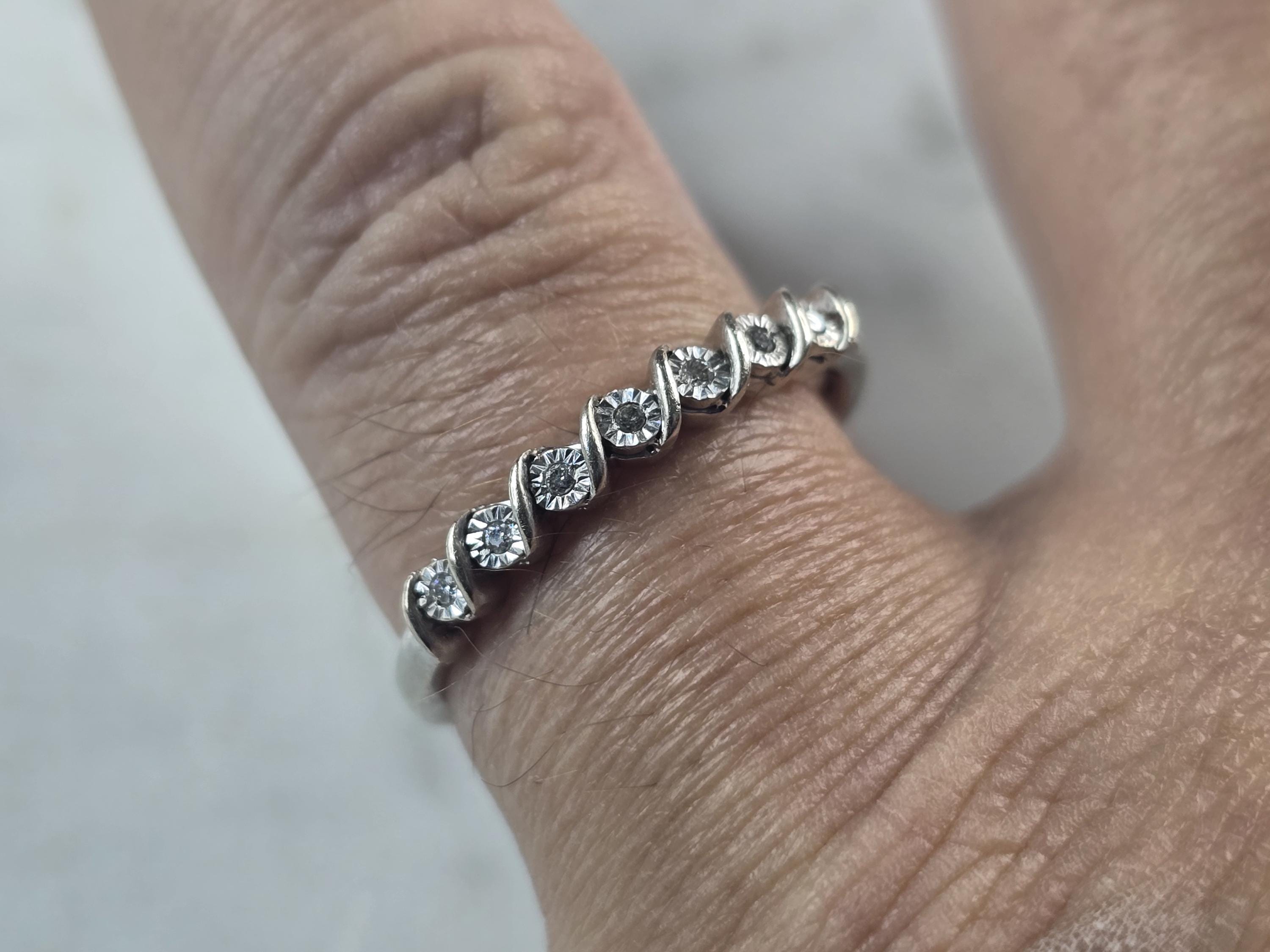 A WOMENS VINTAGE ESTATE 10K WHITE GOLD DIAMOND RING. THE TOTAL WEIGHT IS 1.9g, AND IS A SIZE 8.75. THERE ARE ABOUT 0.07cts OF DIAMONDS IN THE RING. THE WIDTH OF THE RING IS 1/8". MAKES A GREAT GIFT FOR THAT SOMEONE SPECIAL. ANY QUESTIONS, PLEASE ASK. BE SURE TO CHECK OUT SOME OF MY OTHER GREAT ITEMS FOR SALE.