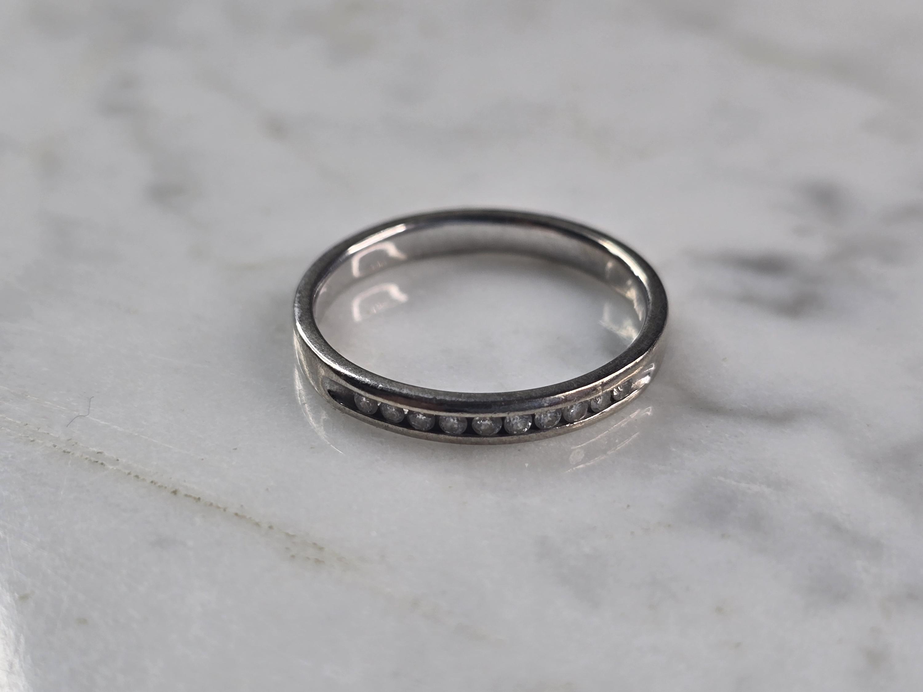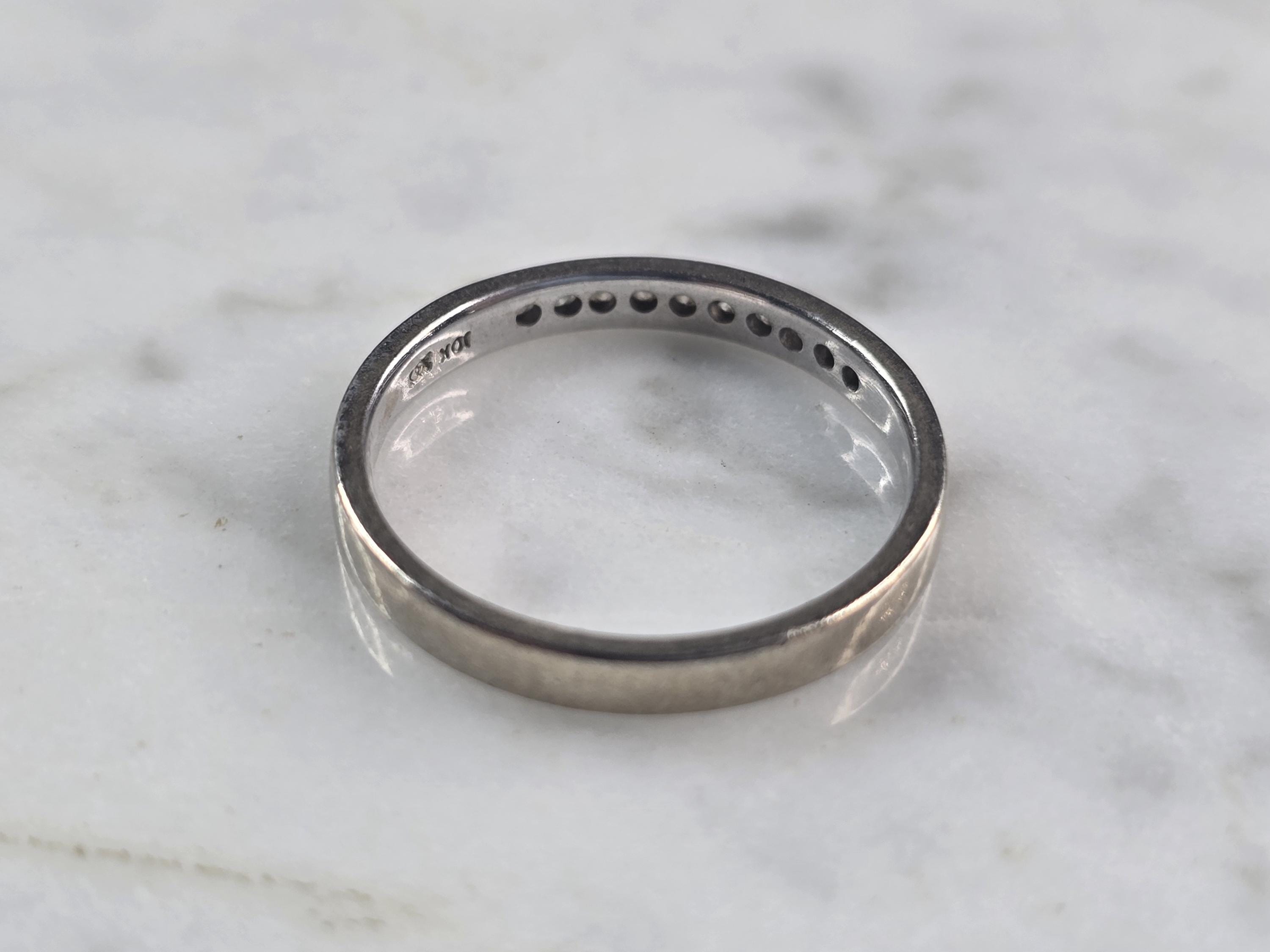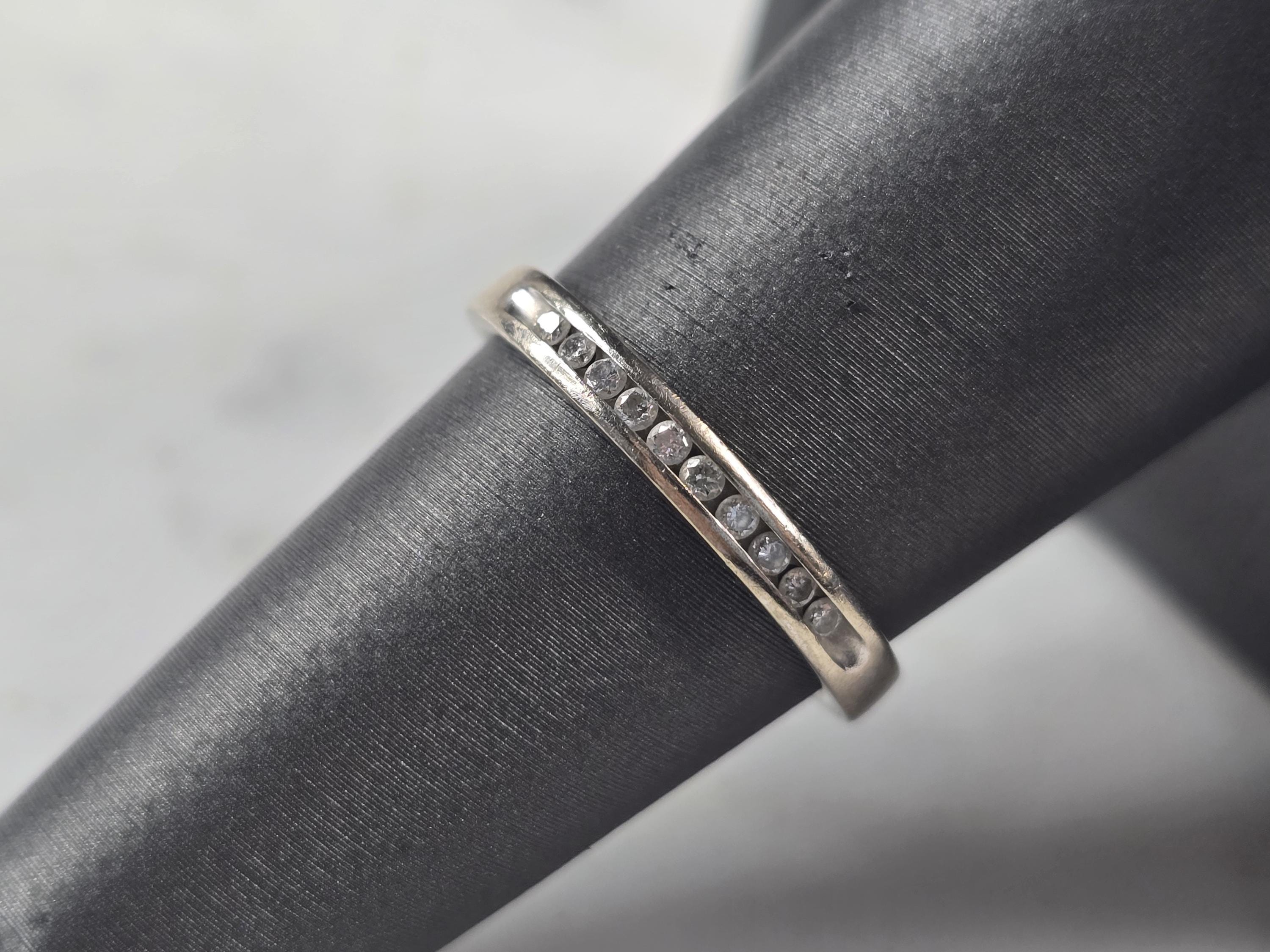 A WOMENS VINTAGE ESTATE 10K WHITE GOLD DIAMOND RING. THE TOTAL WEIGHT IS 2.0g, AND IS A SIZE 7.0. THERE ARE ABOUT 0.10cts OF DIAMONDS IN THE RING. THE WIDTH OF THE RING IS 1/8". MAKES A GREAT GIFT FOR THAT SOMEONE SPECIAL. ANY QUESTIONS, PLEASE ASK. BE SURE TO CHECK OUT SOME OF MY OTHER GREAT ITEMS FOR SALE.