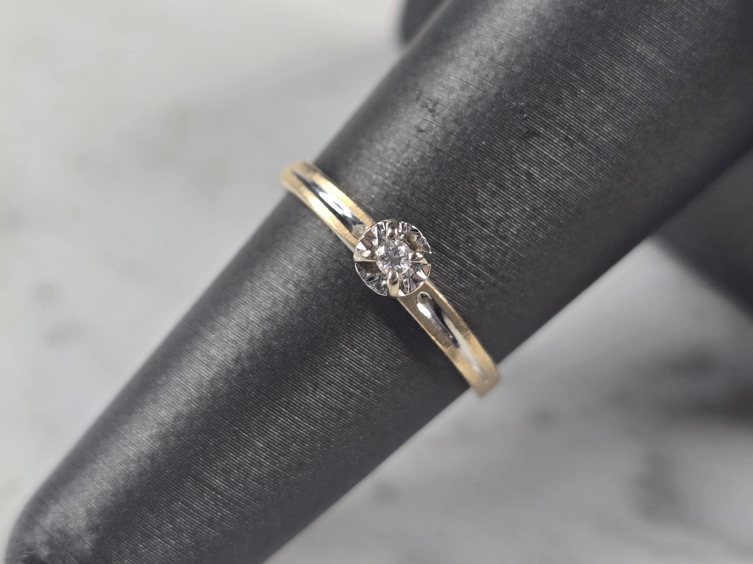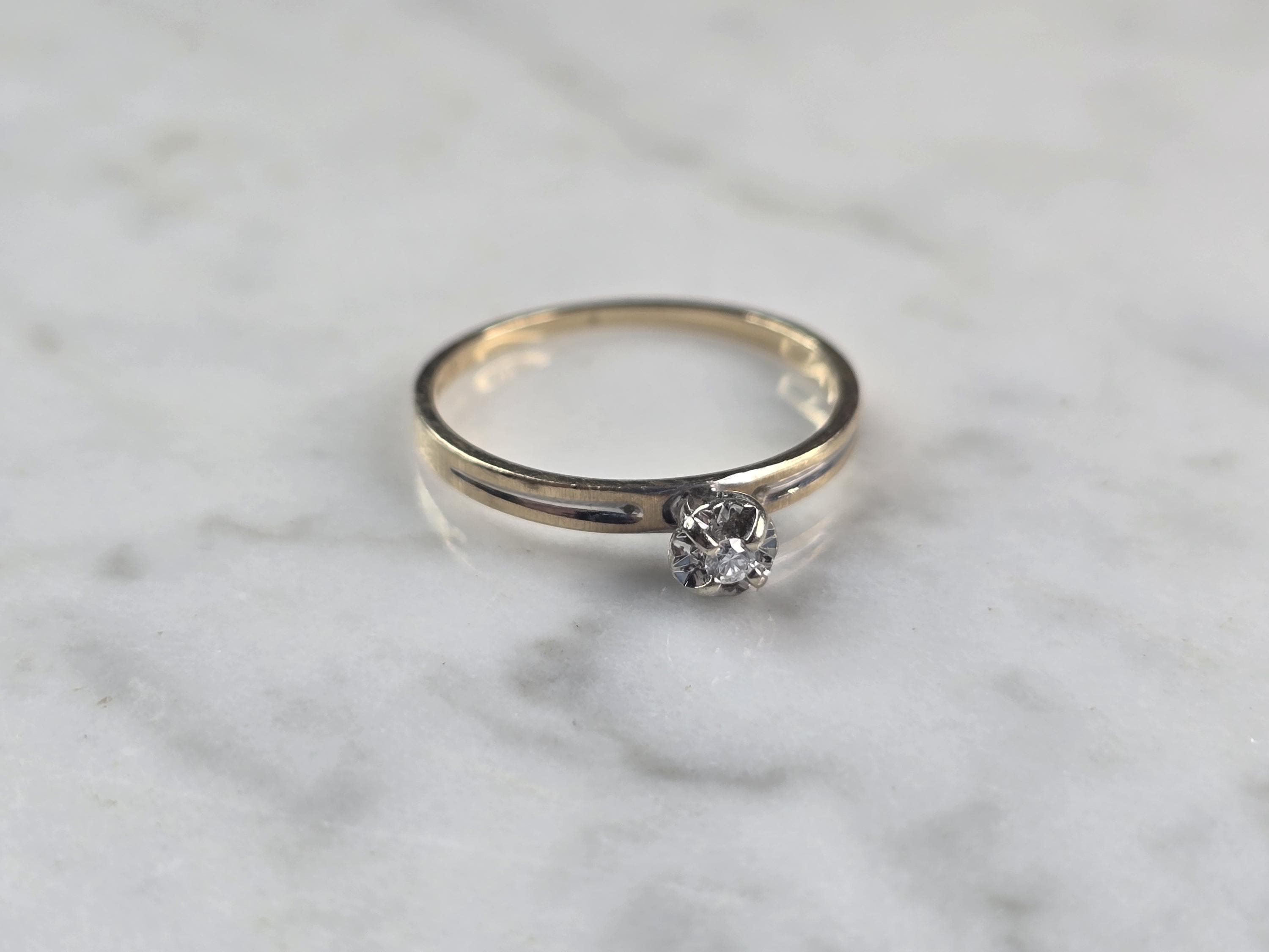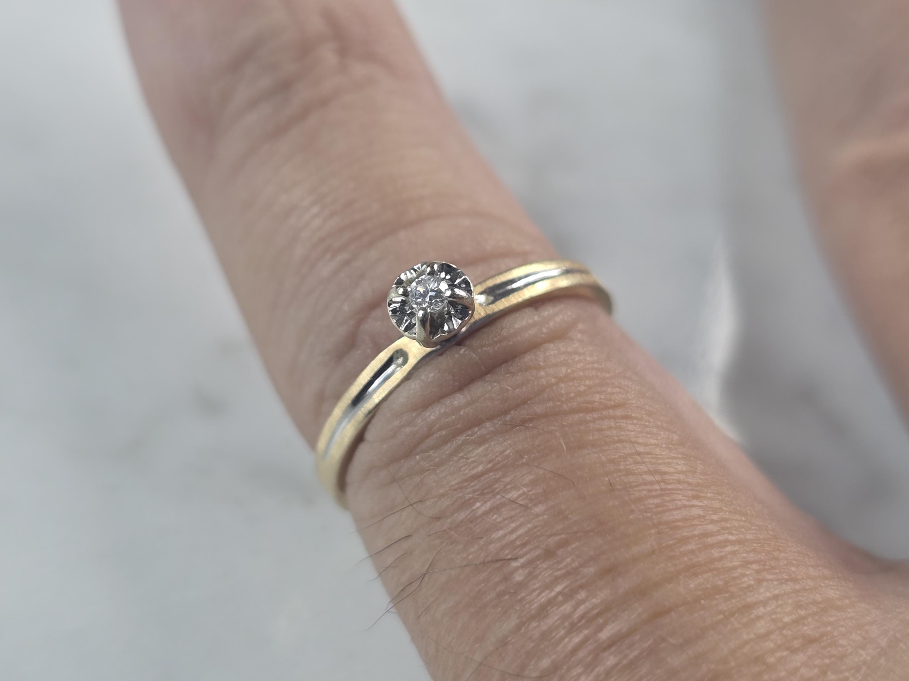 A WOMENS VINTAGE ESTATE 14K YELLOW GOLD DIAMOND RING WITH A .01ct DIAMOND. THE RING IS A SIZE 6.0, AND WEIGHS 1.3g. RING IS MARKED 14K. THIS IS A BEAUTIFUL GIFT FOR THAT SOMEONE SPECIAL. ANY QUESTIONS, PLEASE DON'T HESITATE TO ASK. BE SURE TO CHECK OUT SOME OF MY OTHER GREAT ITEMS UP FOR SALE. THANK YOU.