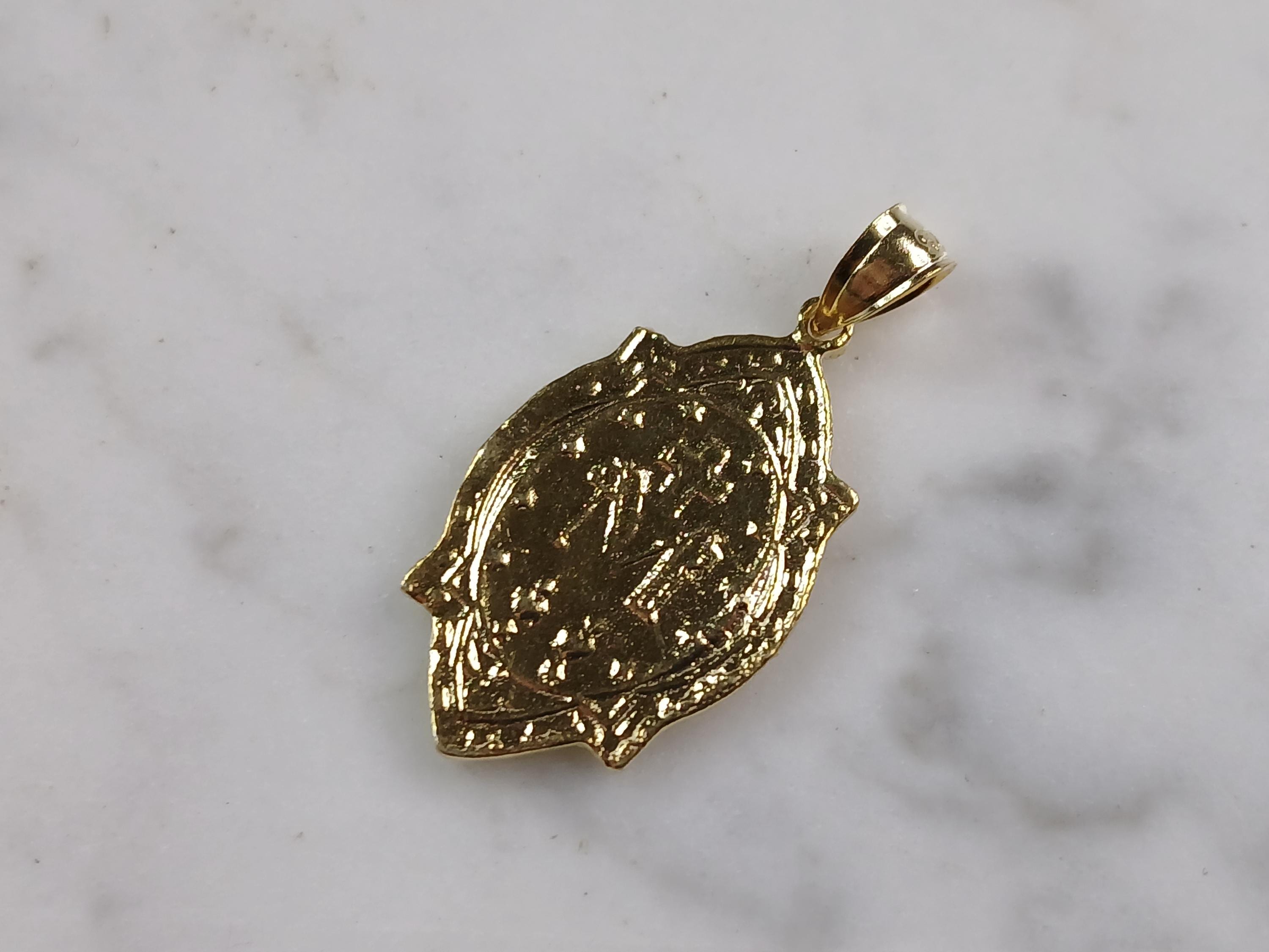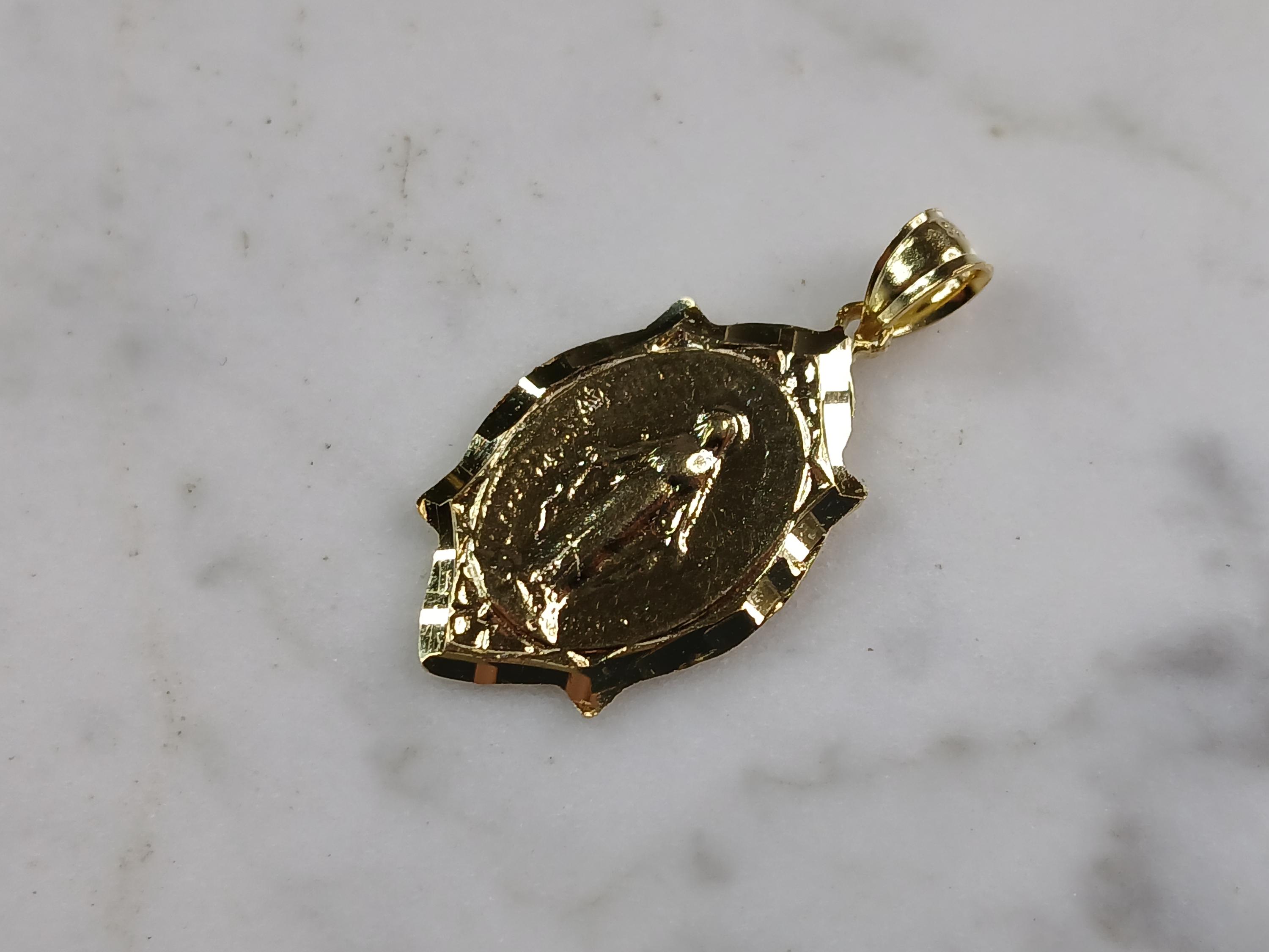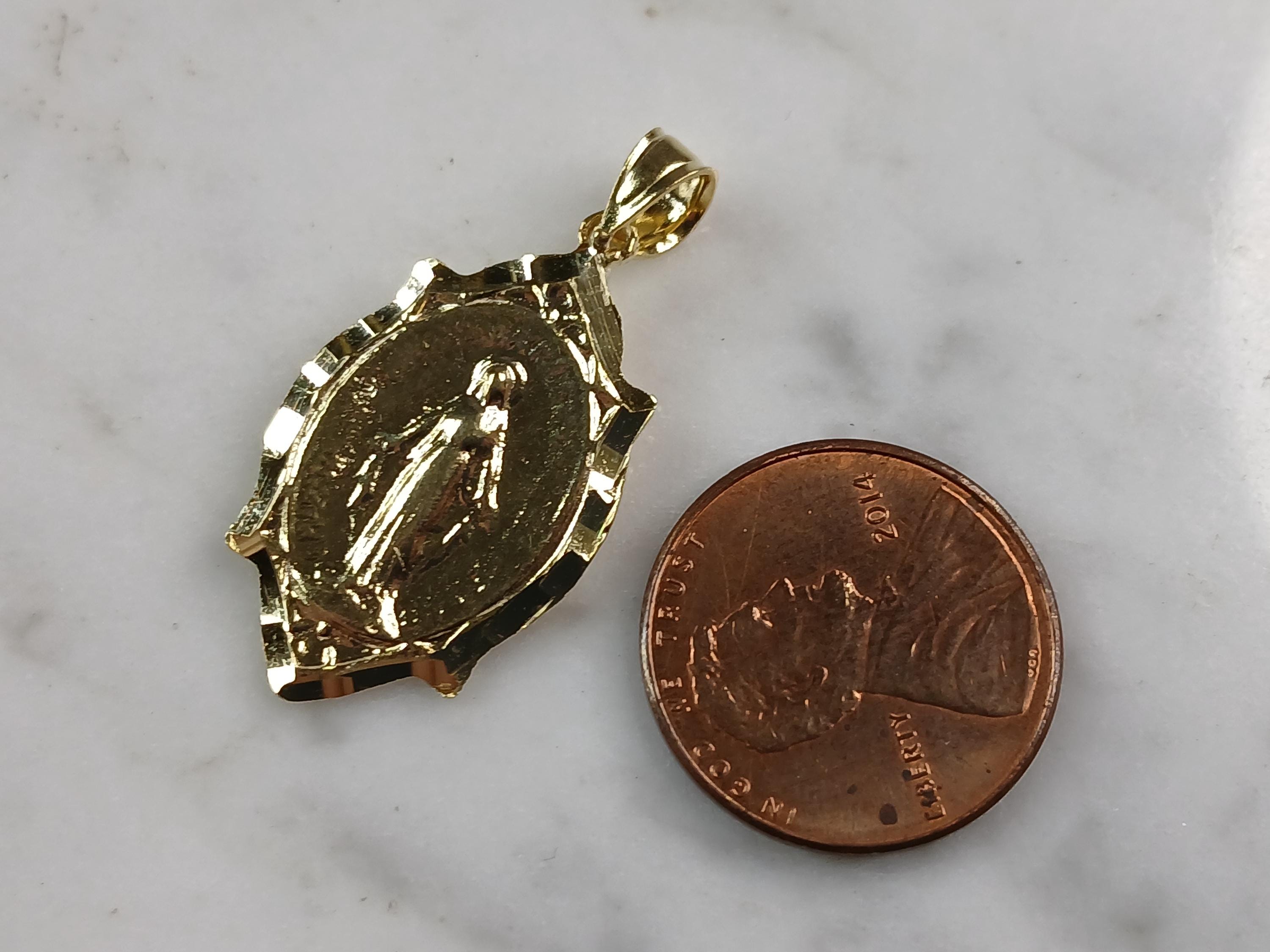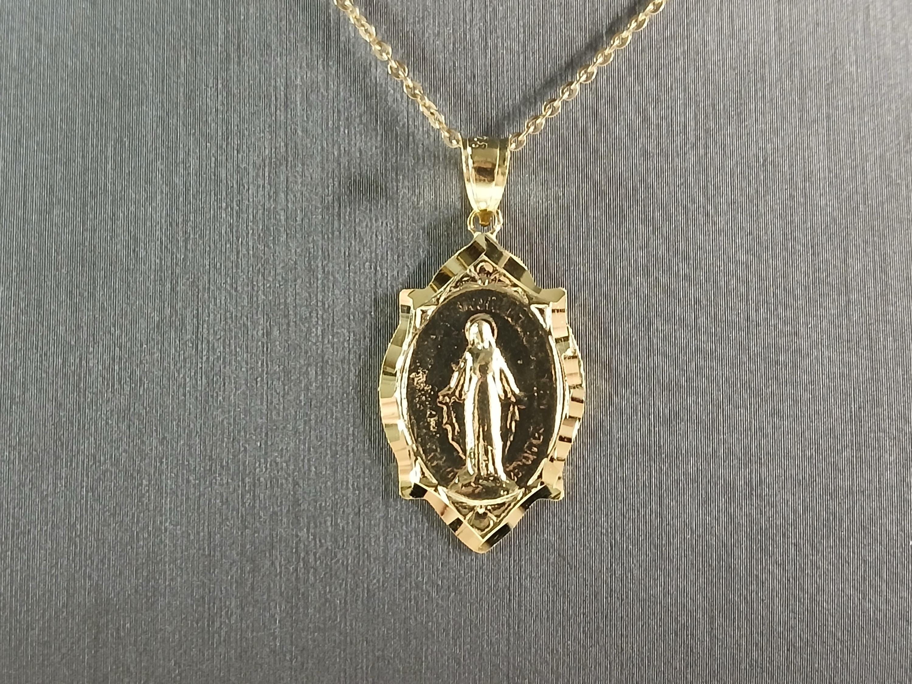 A WOMENS STERLING SILVER GOLD TONE RELGIOUS VIRGIN MARY PENDANT WITH NECKLACE . THE TOTAL WEIGHT IS 3.9g. THE PENDANT MEASURES 1 1/4" LONG BY 5/8" WIDE. THE NECKLACE MEASURES 18" LONG AND IS ADJUSTABLE TO 16" LONG. MAKES A GREAT GIFT FOR THAT SPECIAL SOMEONE. ANY QUESTIONS, PLEASE DO NOT HESITATE TO ASK.