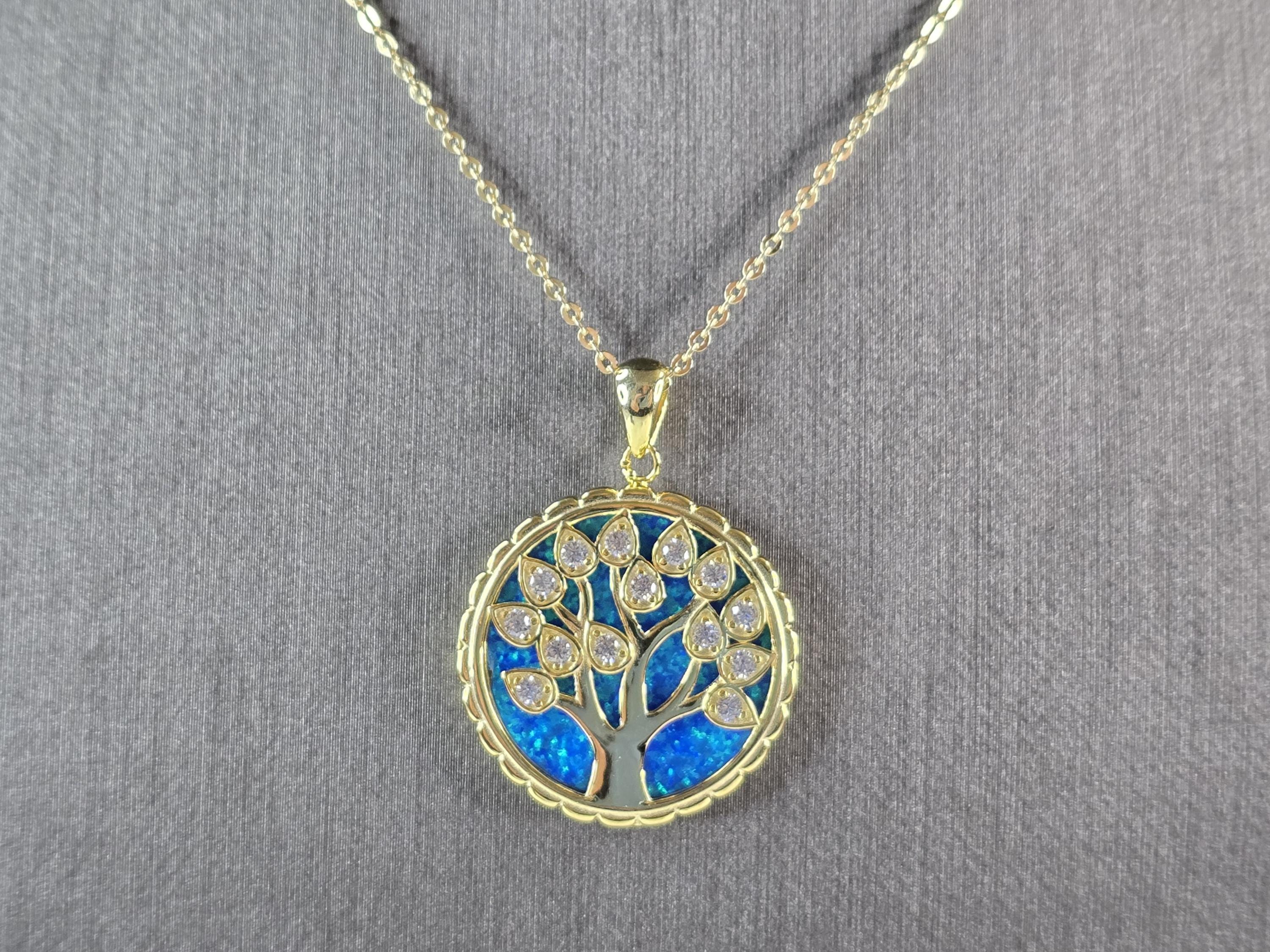 A WOMENS ESTATE STERLING SILVER GOLD TONE OPAL TREE OF LIFE PENDANT WITH NECKLACE. THE PENDANT WITH THE NECKLACE WEIGHS 7.4g. PENDANT MEASURES 1 1/4" LONG BY 7/8" WIDE. THE NECKLACE MEASURES 18" LONG, AND IS ADJUSTABLE TO 16". NOT SURE IF STONES ARE NATURAL OR MAN MADE. MAKES A GREAT GIFT FOR THAT SOMEONE SPECIAL. ANY QUESTIONS, PLEASE ASK. BE SURE TO CHECK OUT OUR OTHER ITEMS FOR SALE.