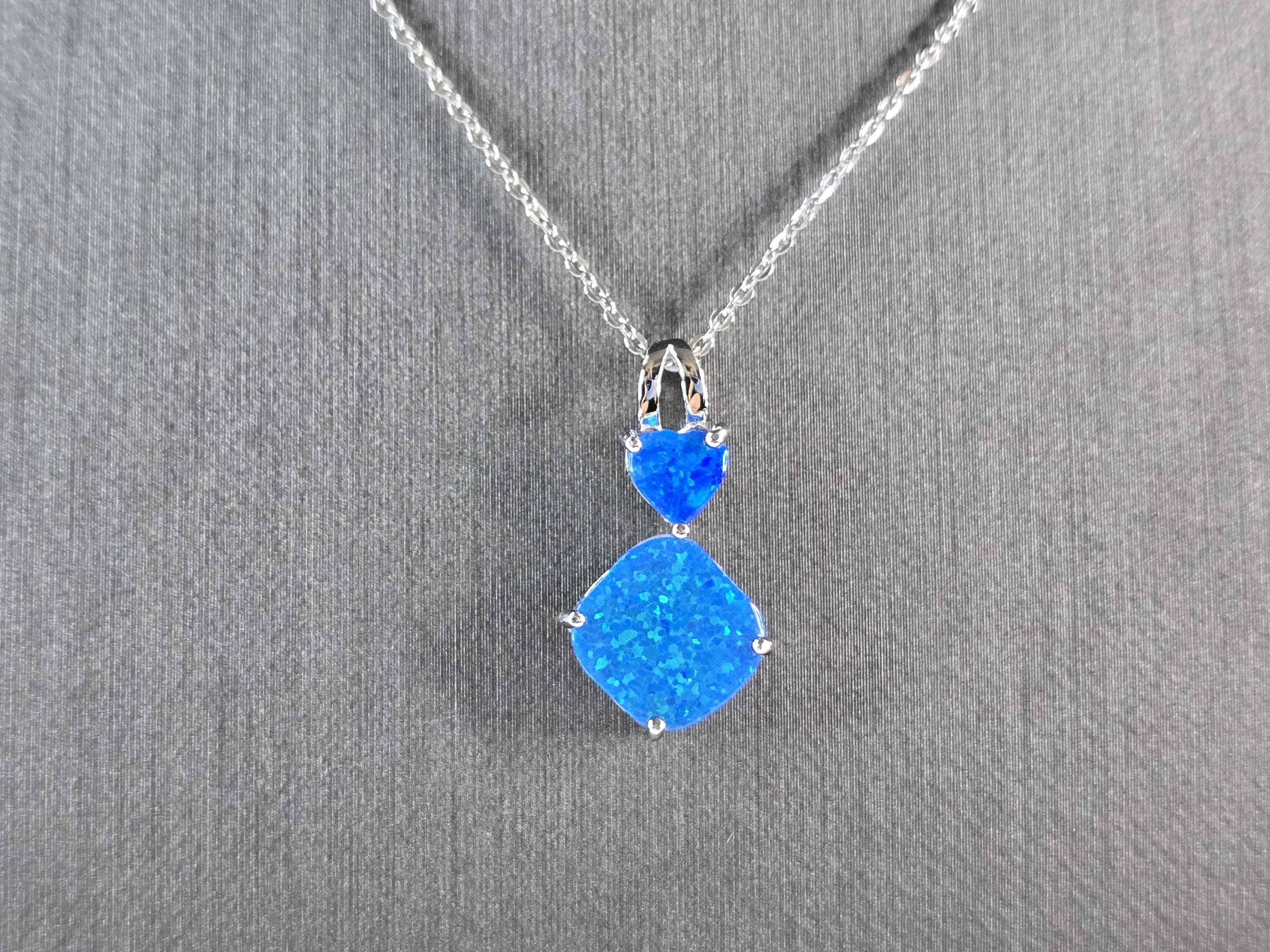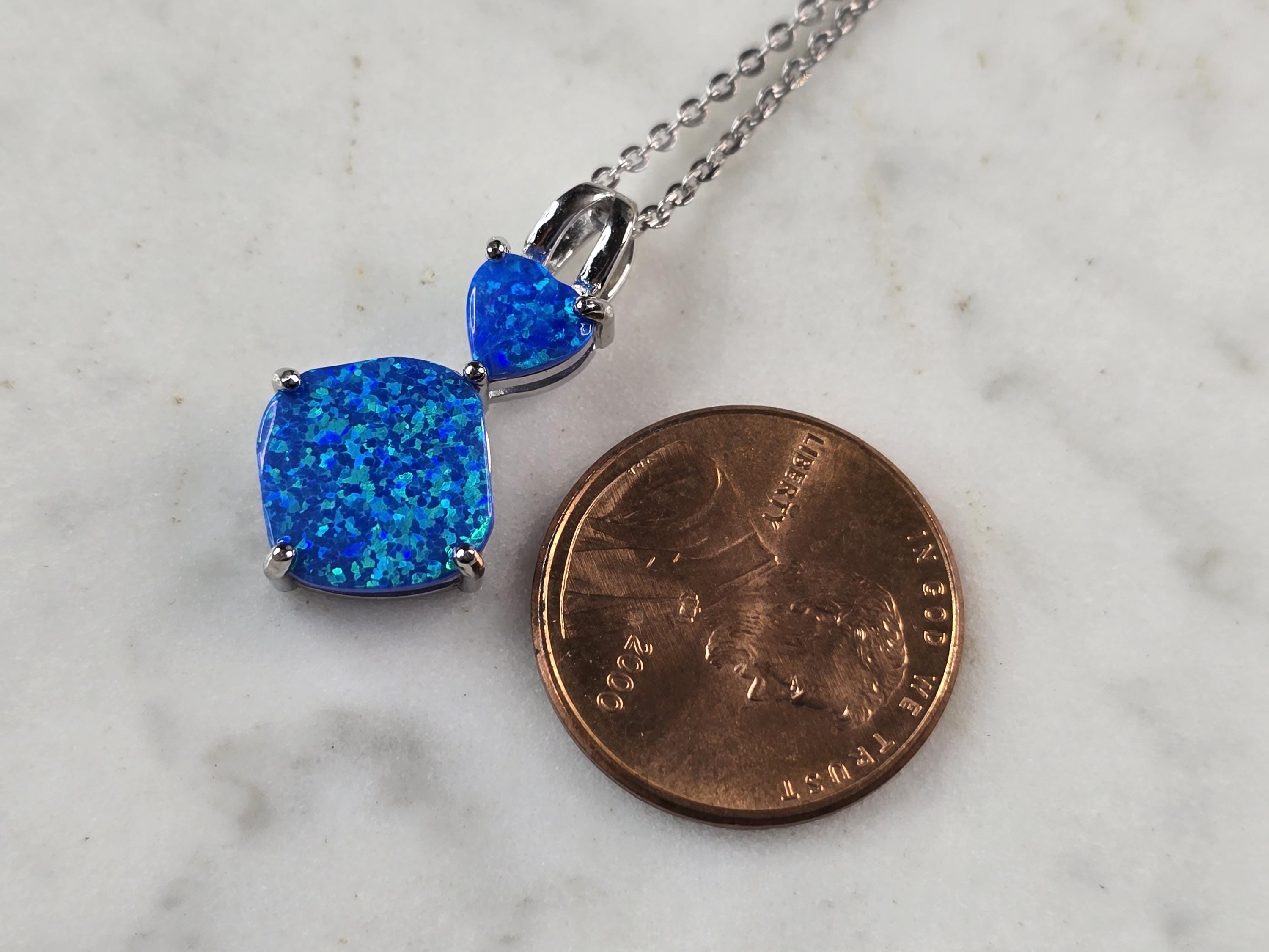 A WOMENS STERLING SILVER BLUE OPAL MODERNIST HEART PENDANT. THE PENDANT WITH NECKLACE WEIGHS 3.0g. THE PENDANT MEASURES 7/8" LONG BY 1/2" WIDE. THE NECKLACE MEASURES 18" LONG AND IS ADJUSTABLE TO 16" LONG. NOT SURE IF STONES ARE NATURAL OR MAN MADE. MAKES A GREAT GIFT FOR THAT SOMEONE SPECIAL. ANY QUESTIONS, PLEASE ASK. BE SURE TO CHECK OUT OUR OTHER ITEMS FOR SALE.