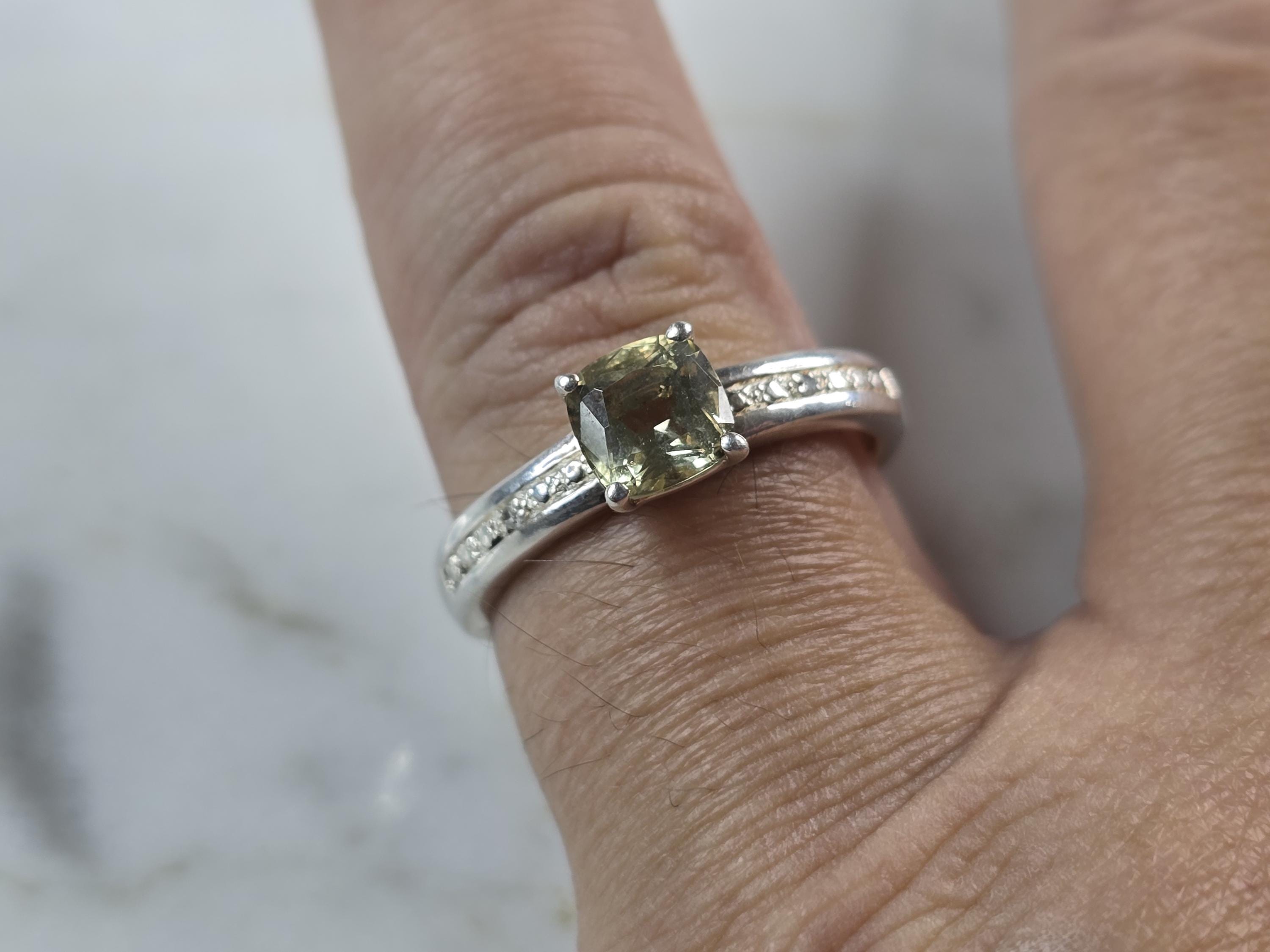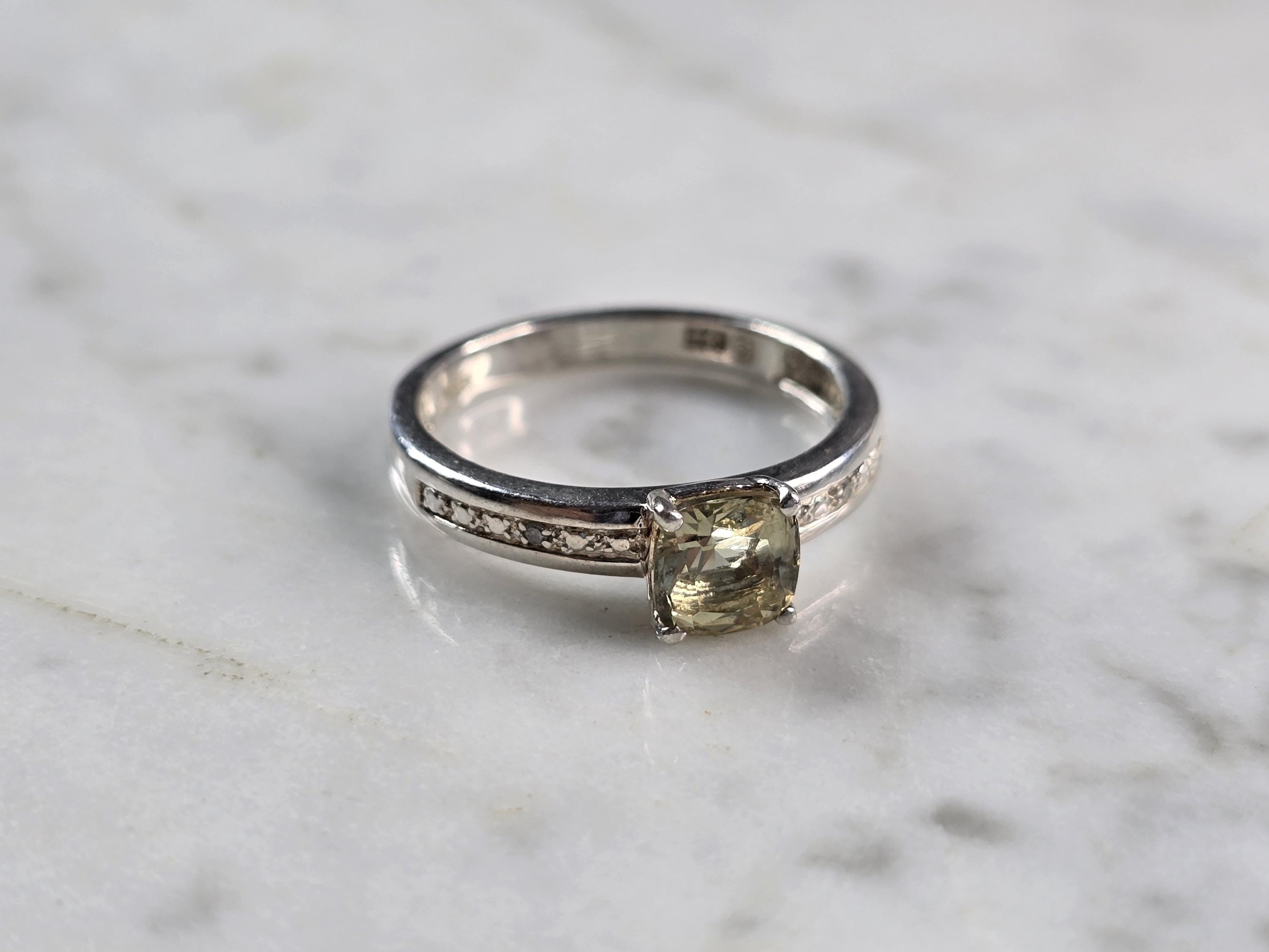A WOMENS VINTAGE ESTATE STERLING SILVER RING WITH A CITRINE COLORED STONE. THE RING WEIGHS 2.9g. THE SIZE OF THE RING IS A 8.0. THE WIDTH OF THE RING IS 1/4". NOT SURE IF THE STONE IS NATURAL OR MAN MADE. ANY QUESTIONS PLEASE DO NOT HESITATE TO ASK. BE SURE TO CHECK OUT SOME OF MY OTHER GREAT ITEMS UP FOR SALE. THANK YOU.
