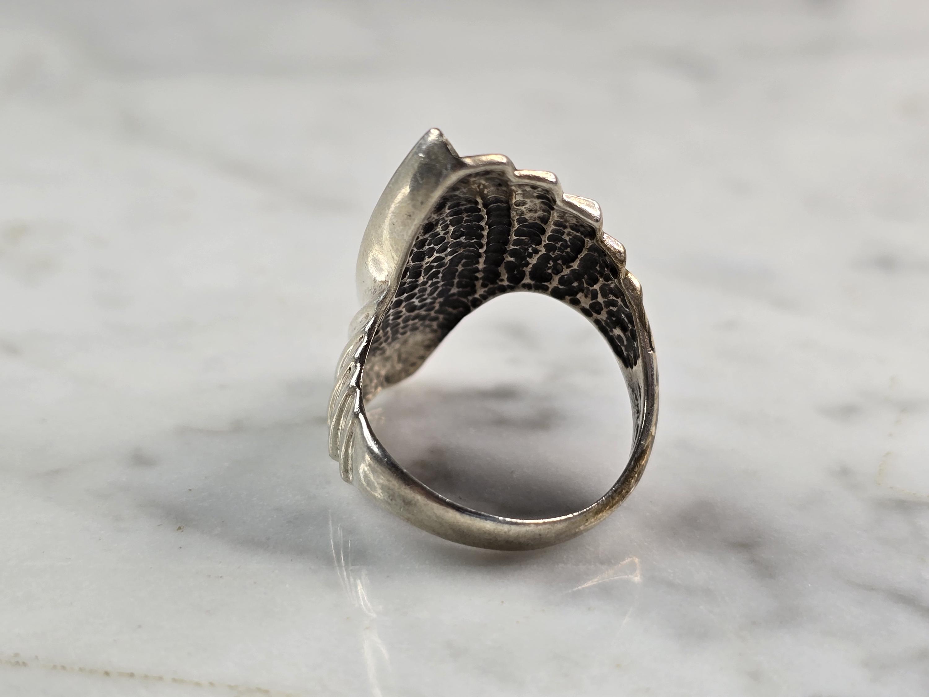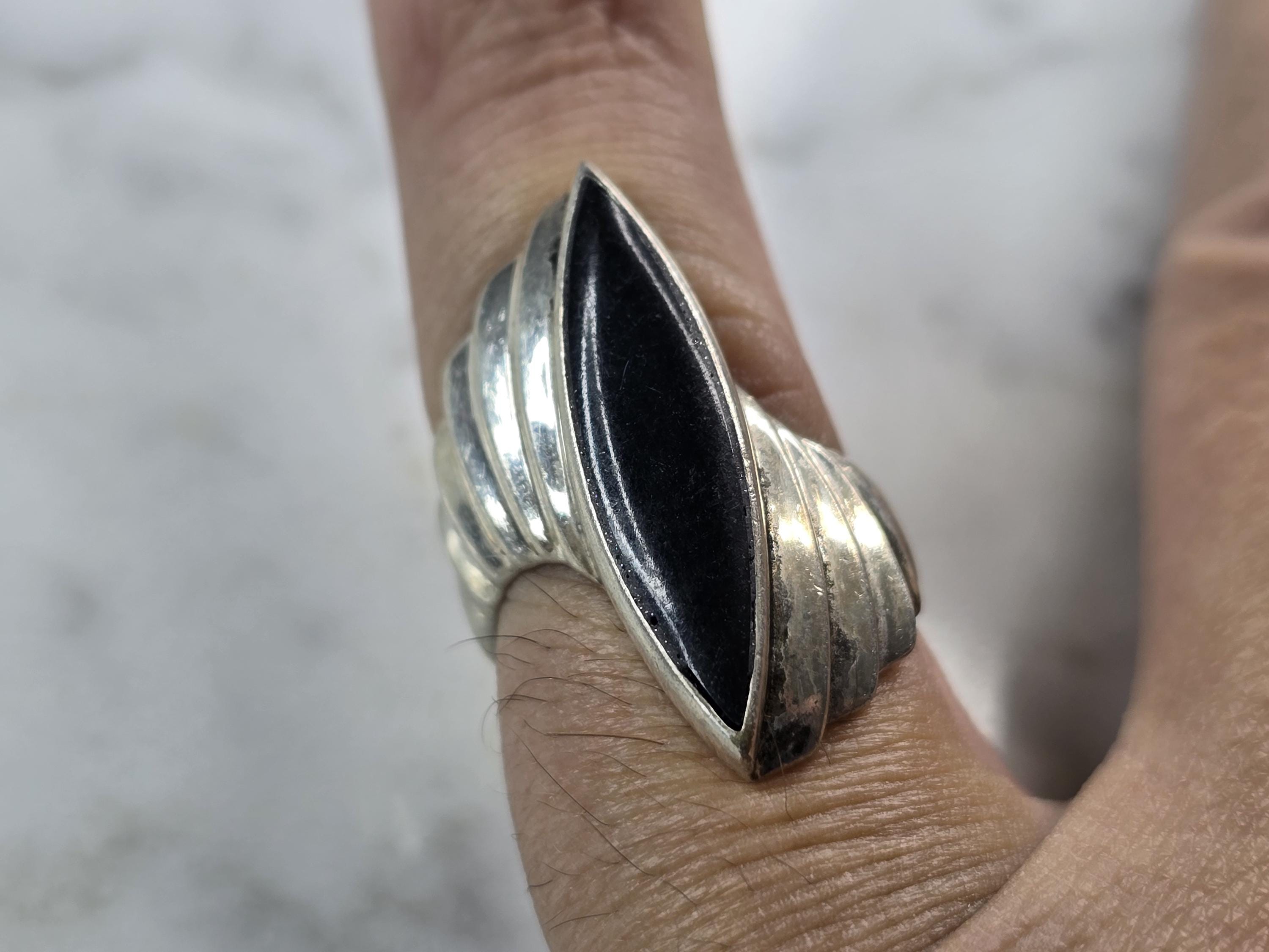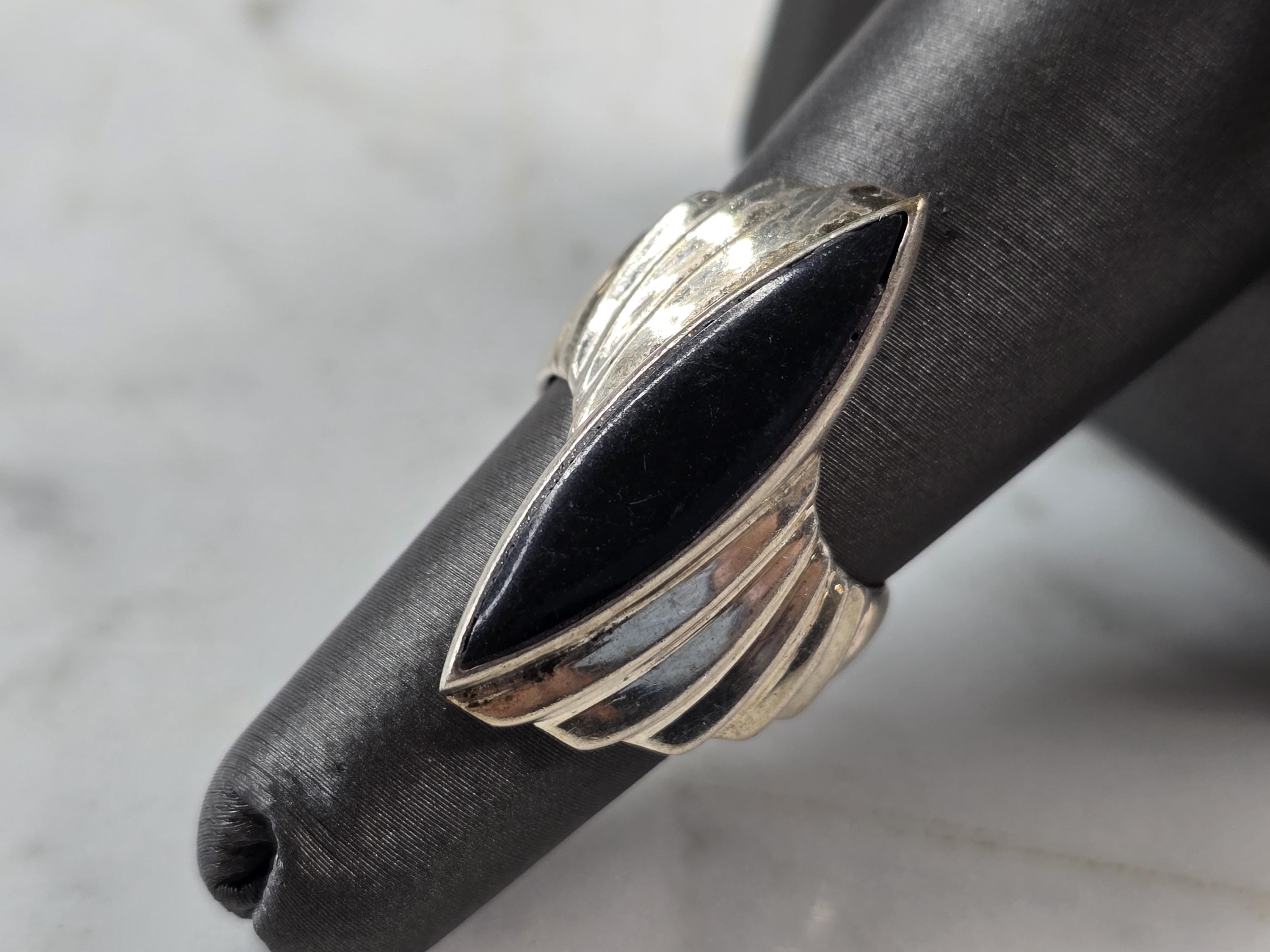 A WOMENS VINTAGE ESTATE STERLING SILVER ART DECO ONYX RING. THE SIZE OF THE RING IS A 5.75 AND WEIGHS 7.1g. THE LENGTH OF THE RING IS 1 1/8". ANY QUESTIONS, PLEASE DO NOT HESITATE TO ASK. THIS MAKES A LOVELY GIFT FOR THAT SOMEONE SPECIAL. BE SURE TO CHECK OUT SOME OF MY OTHER GREAT ITEMS UP FOR SALE. THANK YOU.