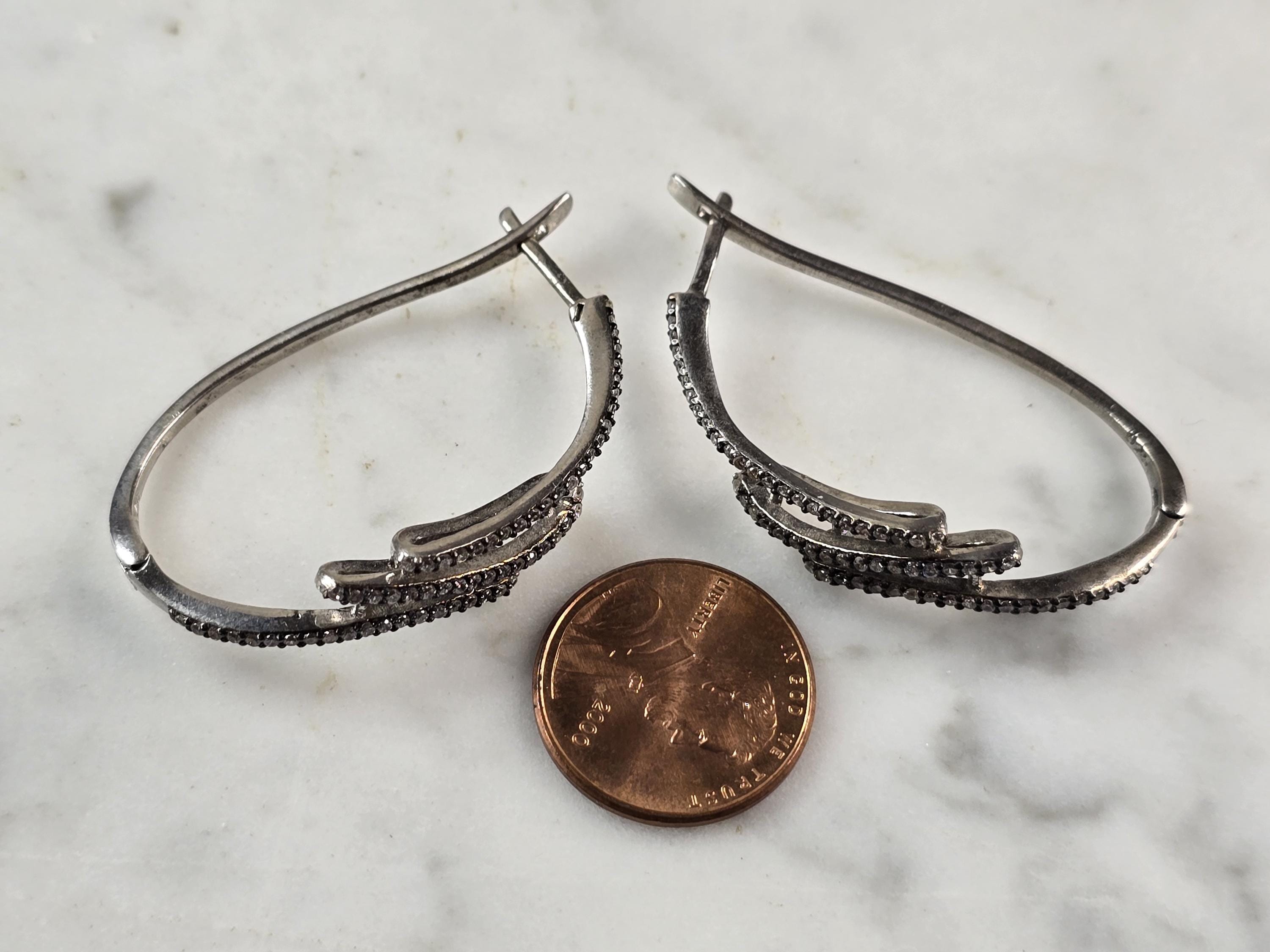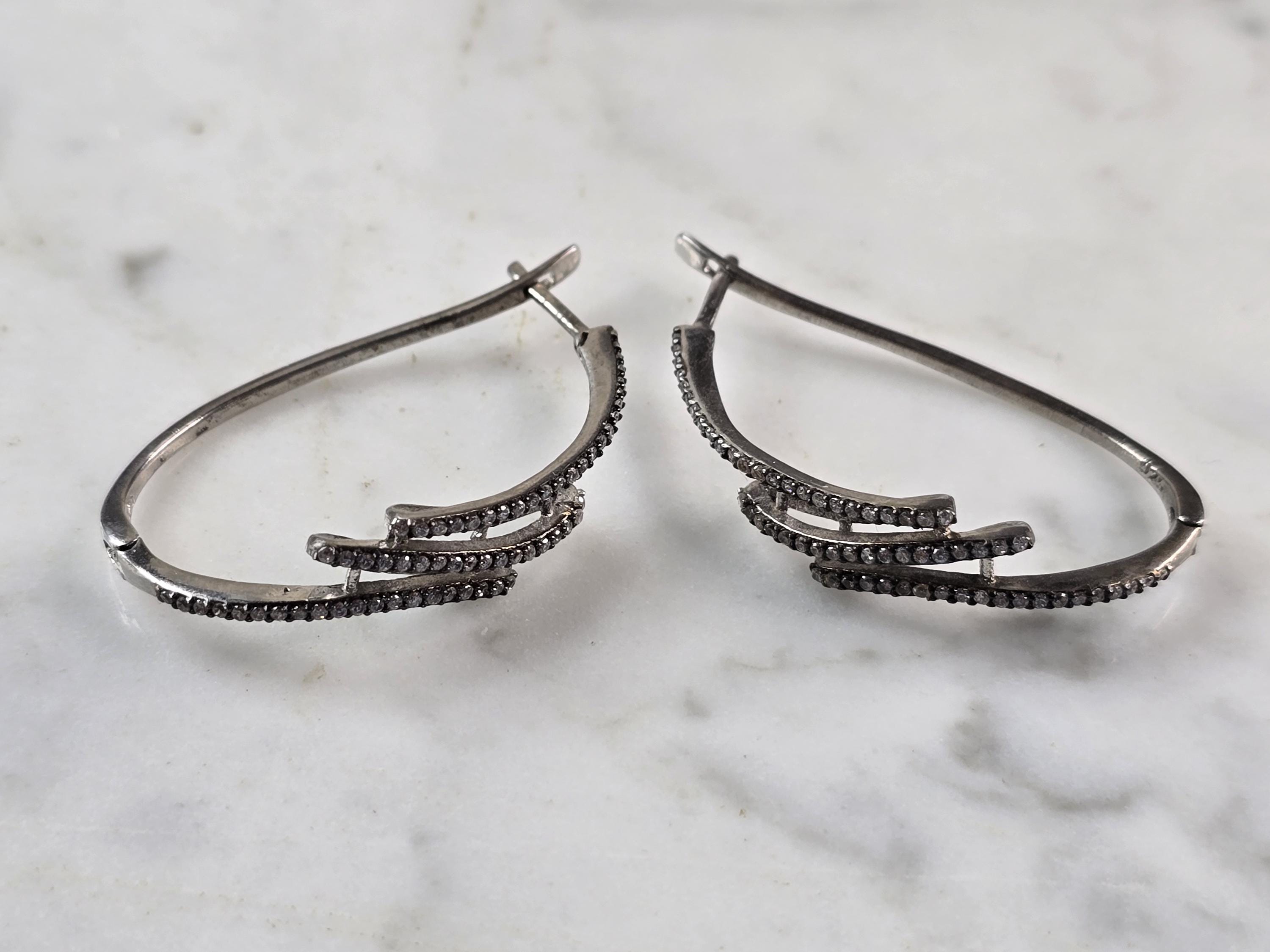 A PAIR OF WOMENS STERLING SILVER MODERNIST EARRINGS. EARRINGS WEIGH 7.1g AND MEASURES 1 1/2" LONG BY 1/4" WIDE. ANY QUESTIONS, PLEASE DO NOT HESITATE TO ASK. BE SURE TO CHECK OUT SOME OF MY OTHER GREAT ITEMS UP FOR SALE. THANK YOU