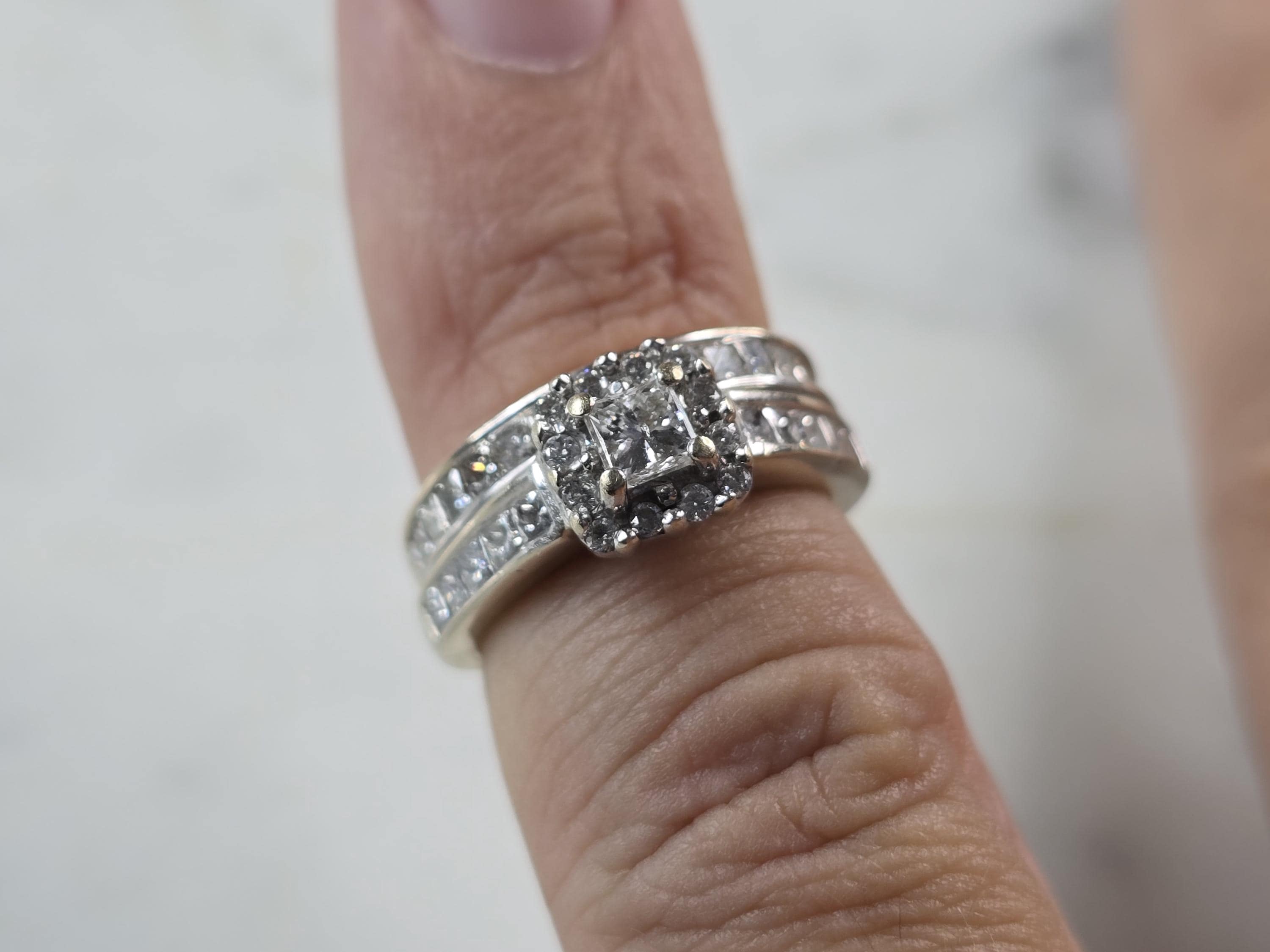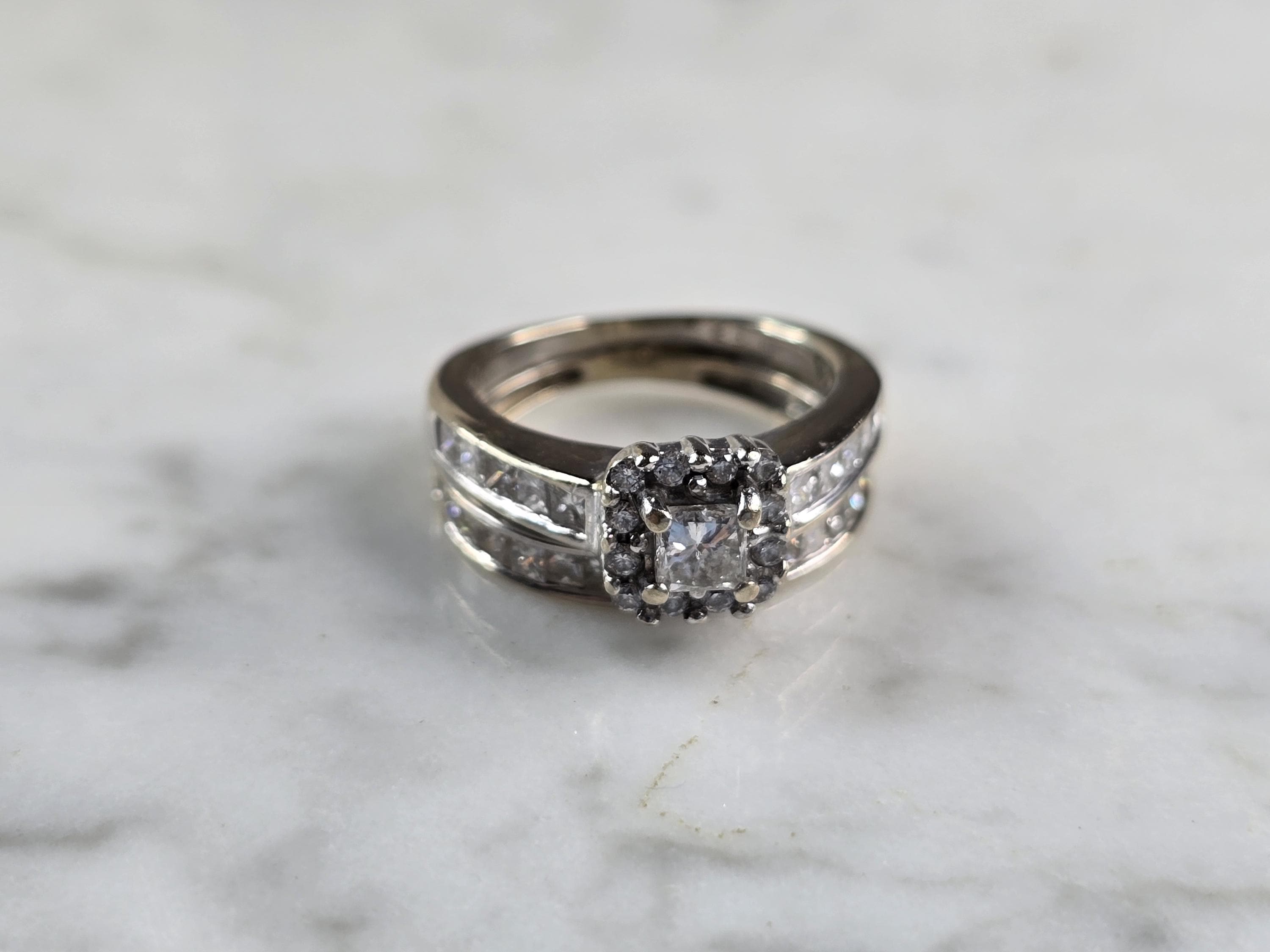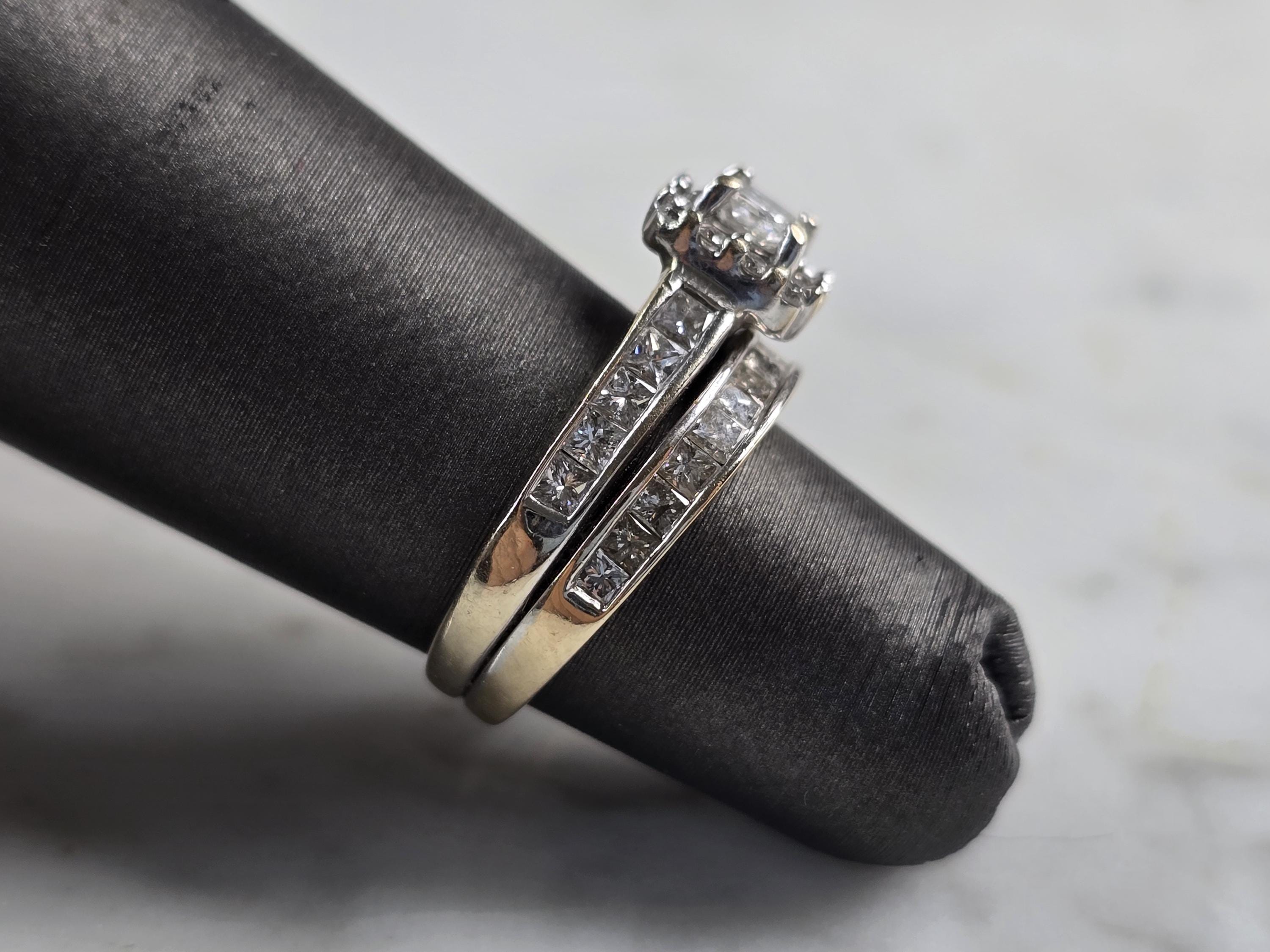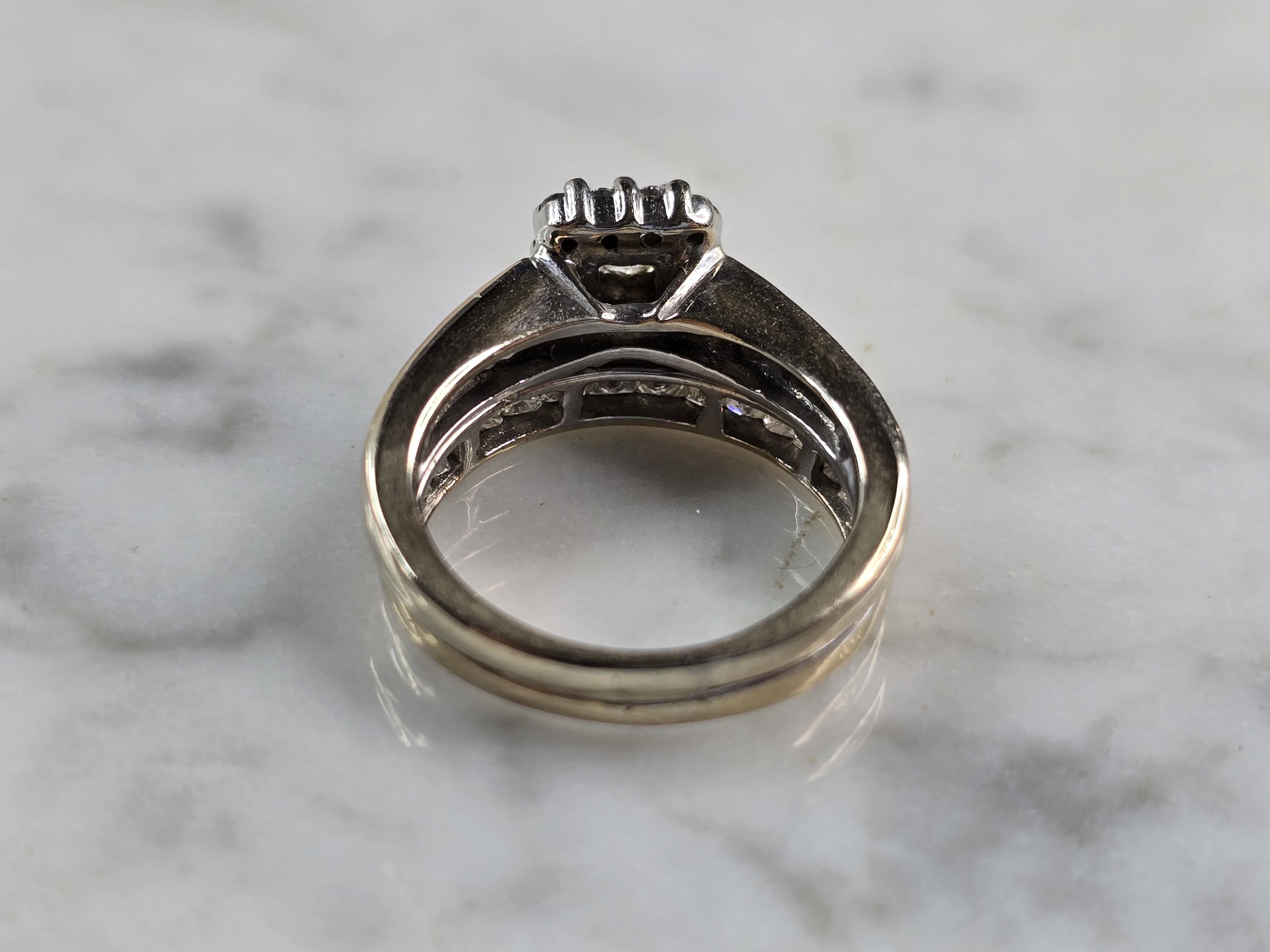 A WOMENS VINTAGE 14K YELLOW GOLD DIAMOND RING. THE TOTAL WEIGHT IS 4.9g, AND IS A SIZE 3.5. RINGS HAVE ABOUT 1.0cts OF DIAMONDS BETWEEN THEM. THE WIDTH OF THE RING SET IS 5/16". RINGS ARE SOLDERED TOGETHER. ANY QUESTIONS PLEASE DONT HESITATE TO ASK. BE SURE TO CHECK OUT SOME OF OUR OTHER GREAT ITEMS UP FOR SALE. THANK YOU.