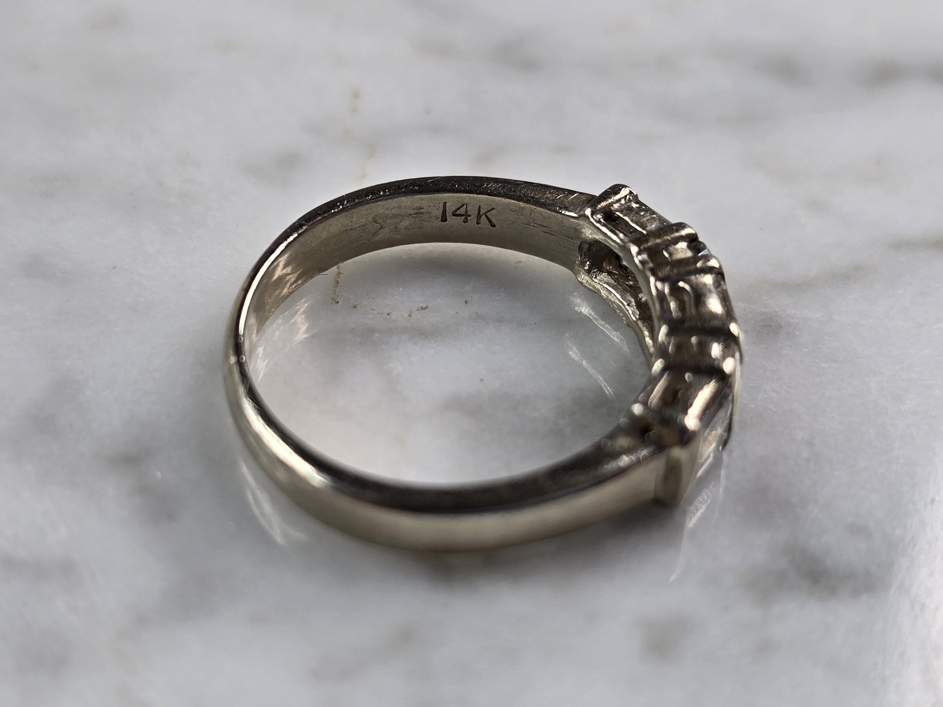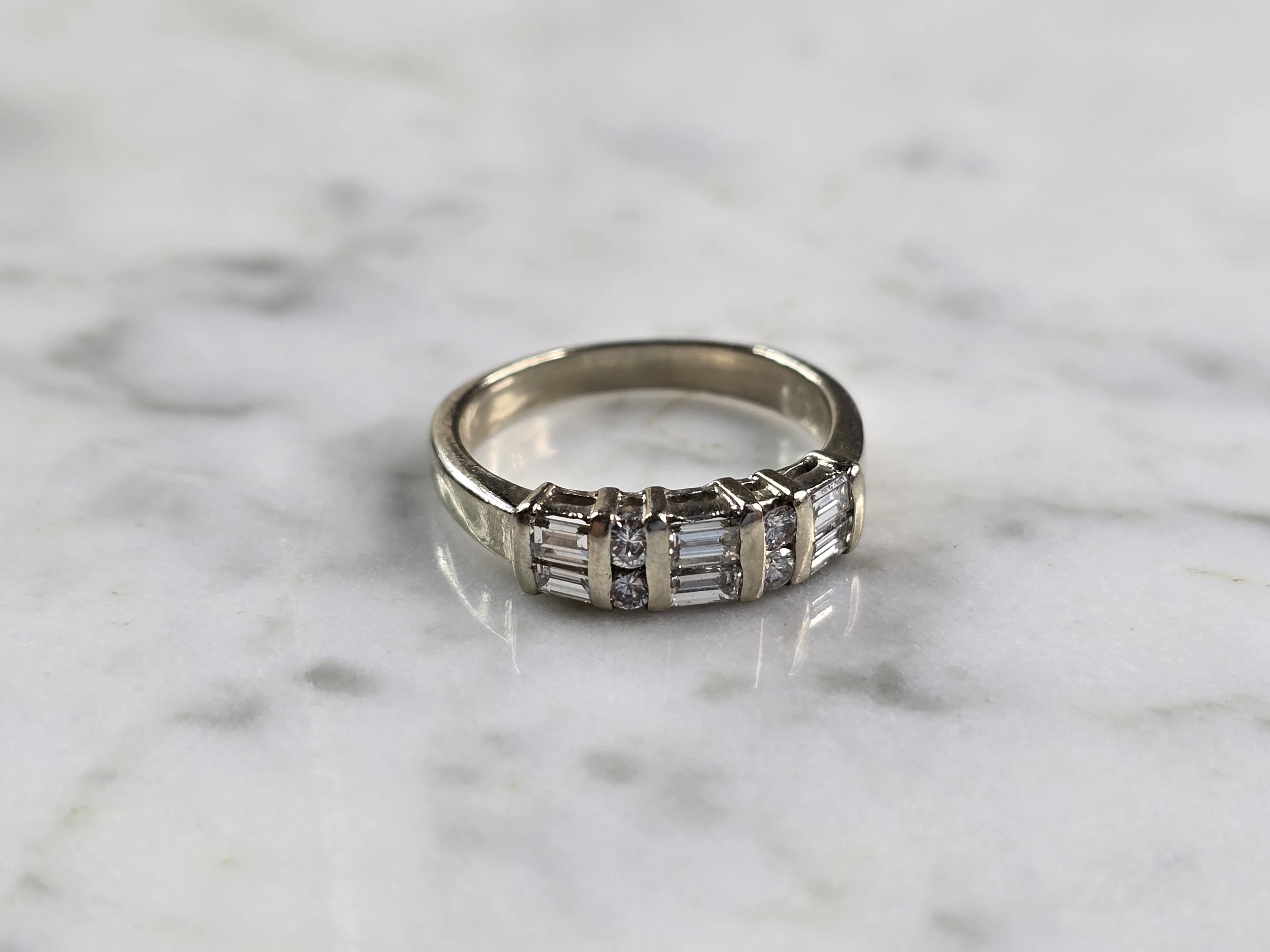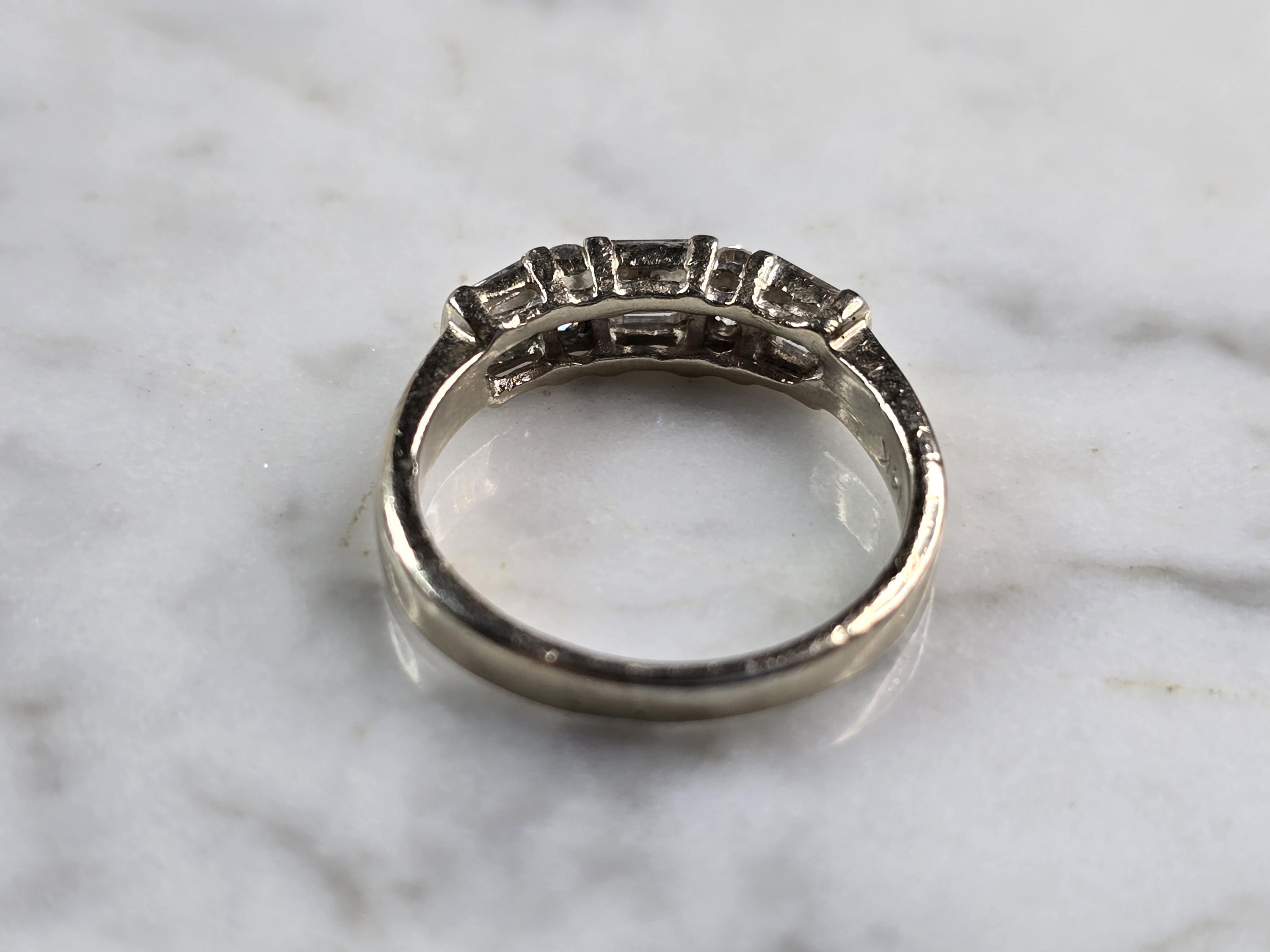 A WOMENS VINTAGE ESTATE 14K WHITE GOLD DIAMOND RING. THE RING WEIGHS 2.8g, AND IS A SIZE 5.0. THERE ARE ABOUT 0.80cts OF DIAMONDS IN THIS RING. THE WIDTH OF THE RING IS 3/16". ANY QUESTIONS PLEASE ASK PRIOR TO PURCHASING. BE SURE TO CHECK OUT SOME OF MY OTHER GREAT ITEMS UP FOR SALE. THANK YOU