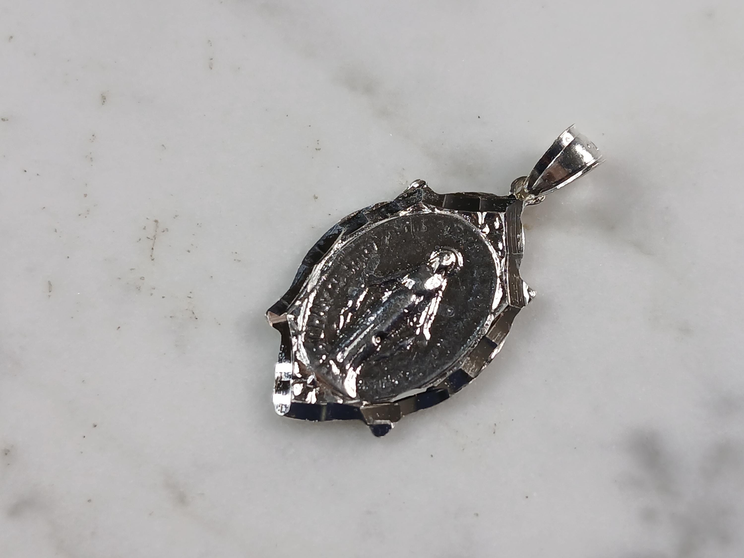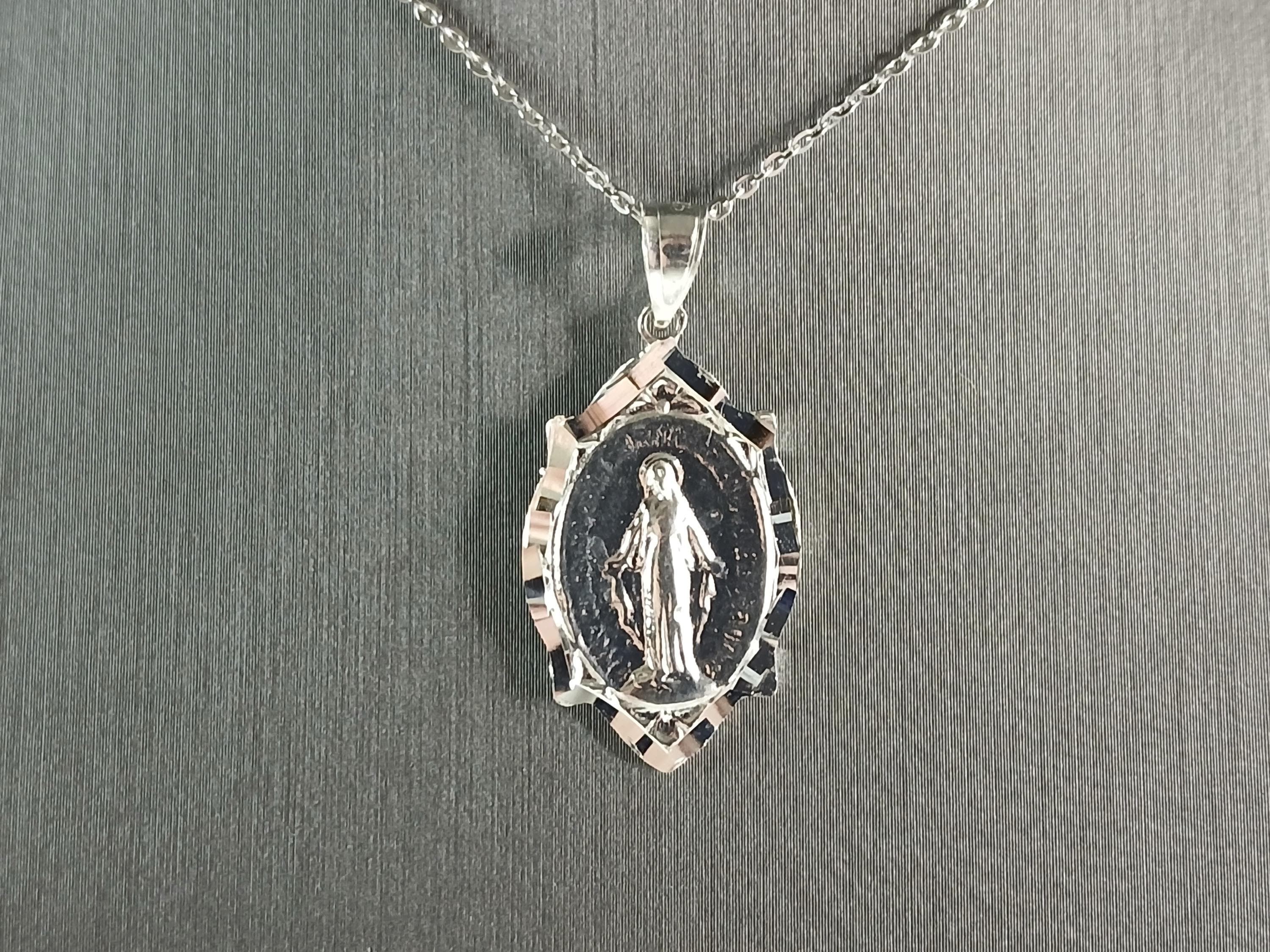 A WOMENS STERLING SILVER RELIGIOUS VIRGIN MARY PENDANT WITH NECKLACE . THE TOTAL WEIGHT IS 4.3g. THE PENDANT MEASURES 1 1/4" LONG BY 5/8" WIDE. THE NECKLACE MEASURES 18" LONG AND IS ADJUSTABLE TO 16" LONG. MAKES A GREAT GIFT FOR THAT SPECIAL SOMEONE. ANY QUESTIONS, PLEASE DO NOT HESITATE TO ASK.