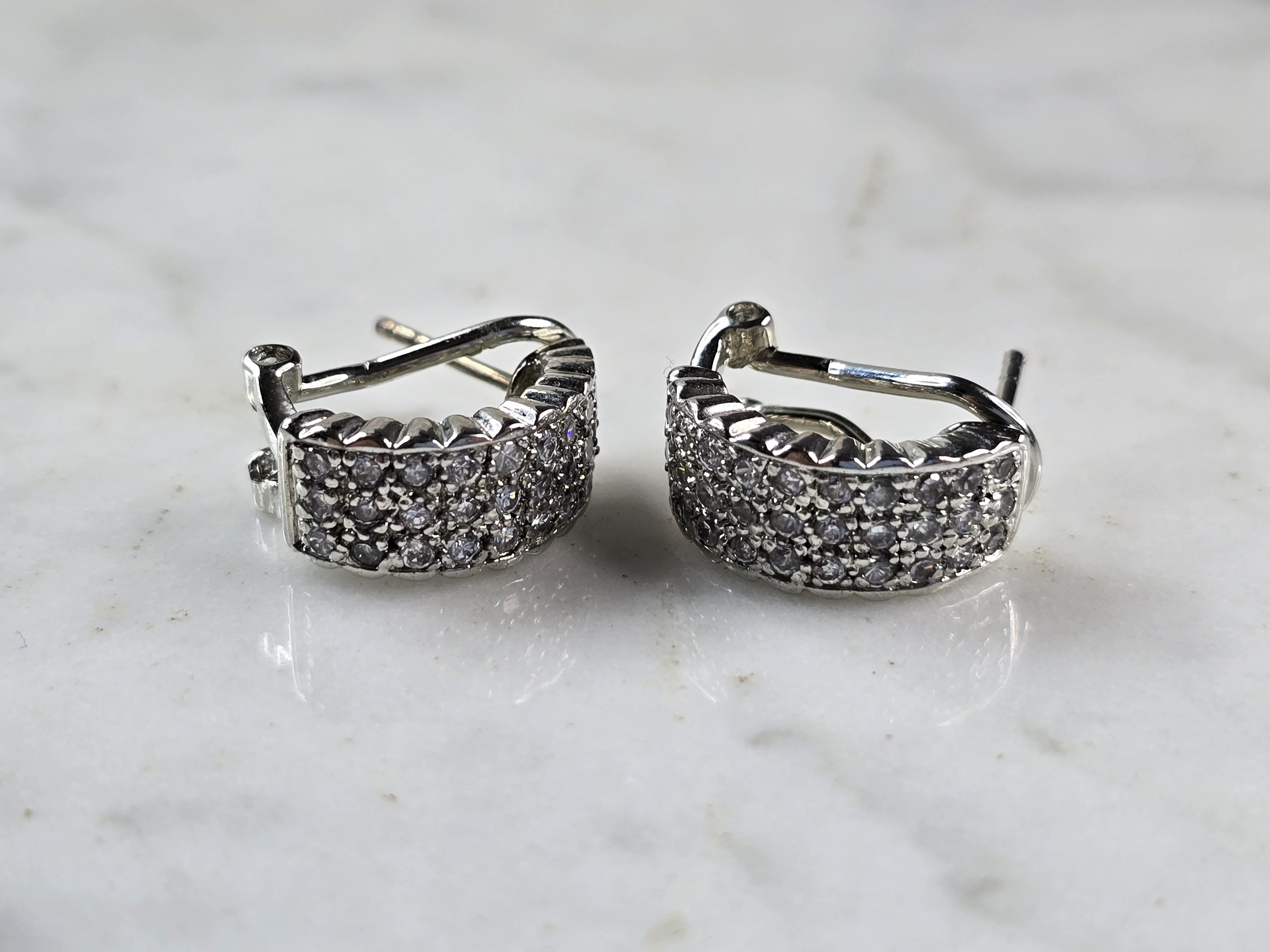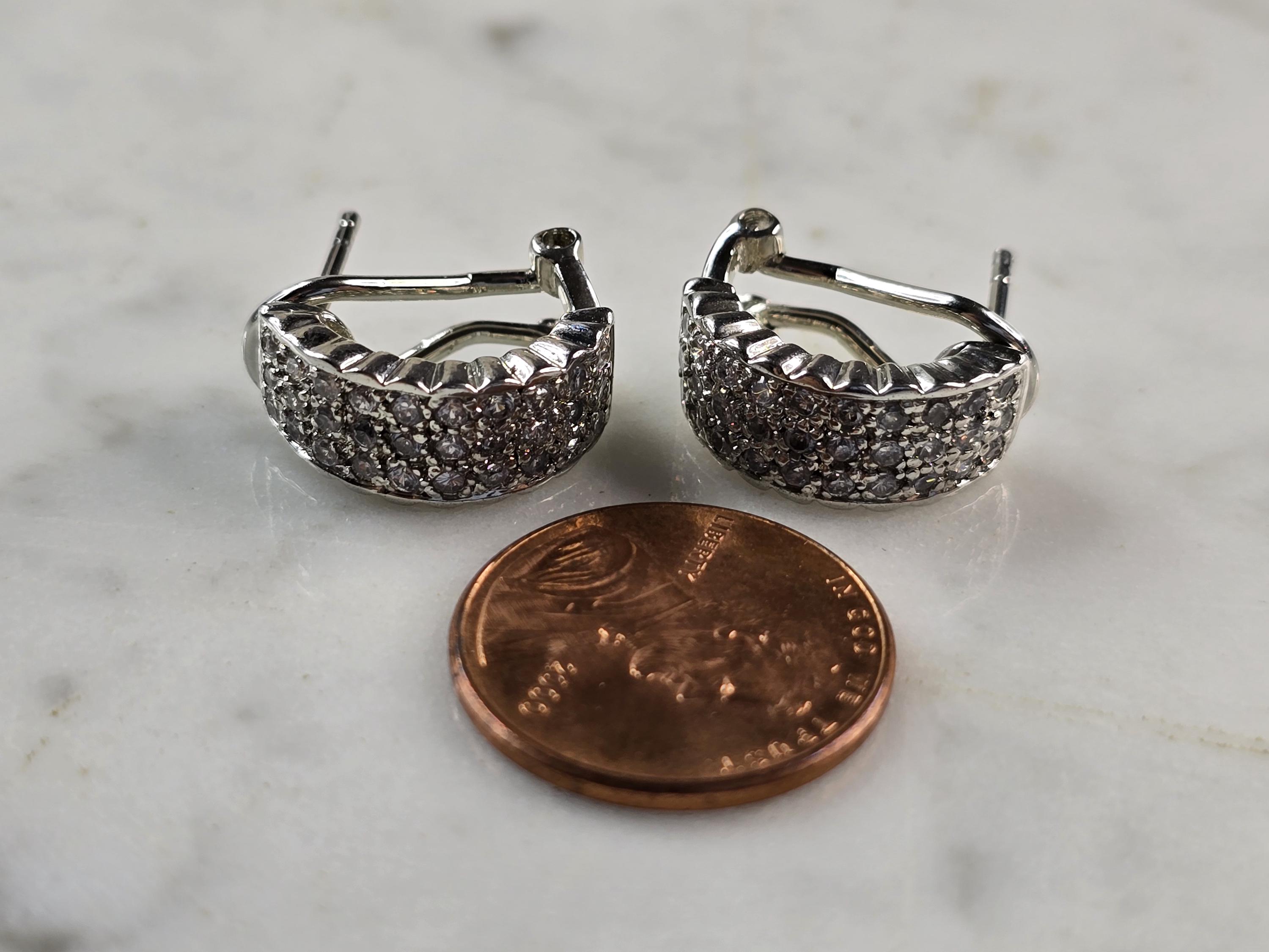 A PAIR OF WOMENS STERLING SILVER MODERNIST CZ EARRINGS. THE EARRINGS WEIGH 6.6g, AND MEASURE 5/8" LONG BY 1/4" WIDE. ANY QUESTIONS, PLEASE DO NOT HESITATE TO ASK. BE SURE TO CHECK OUT SOME OF MY OTHER GREAT ITEMS UP FOR SALE. THANK YOU