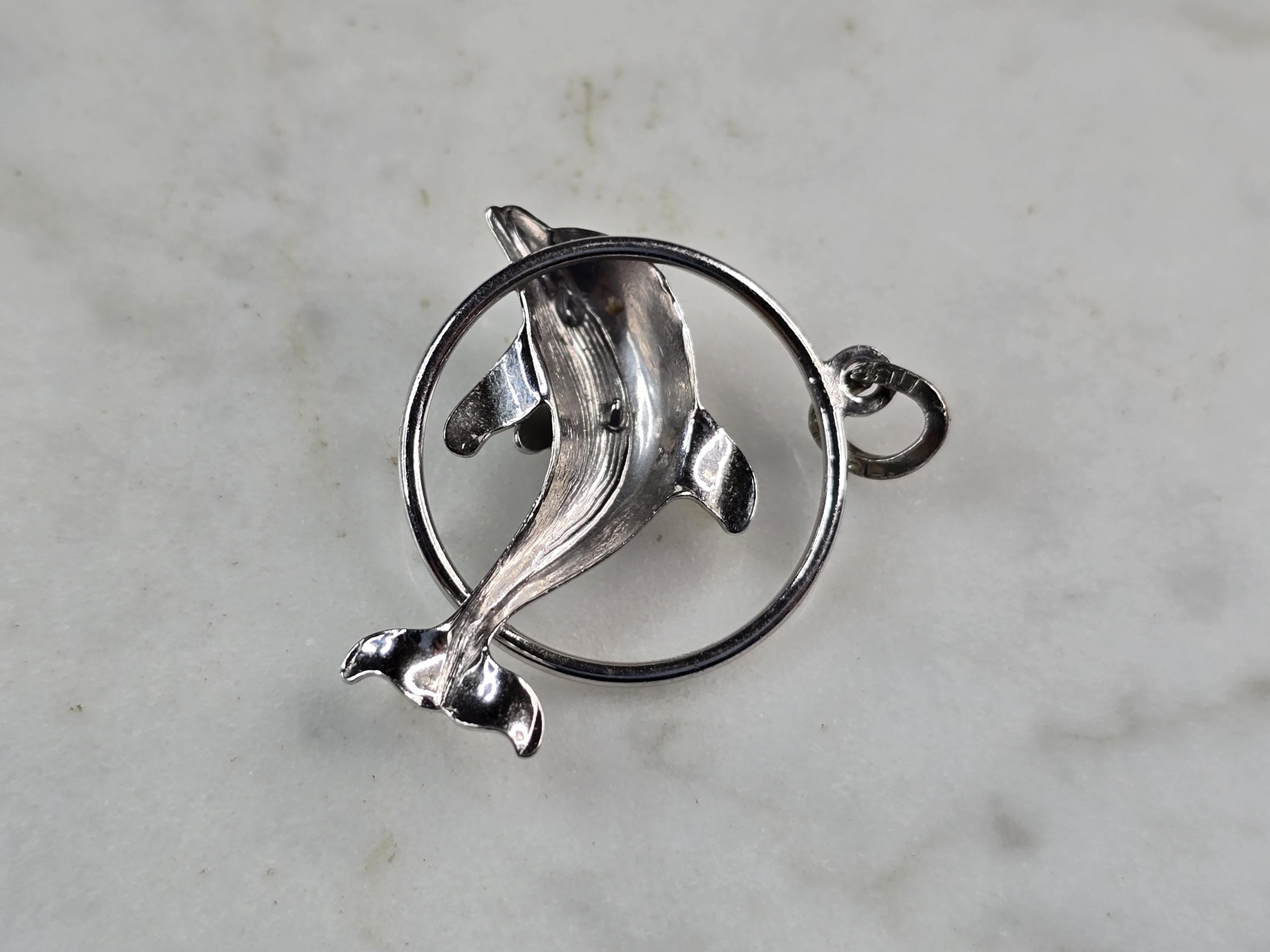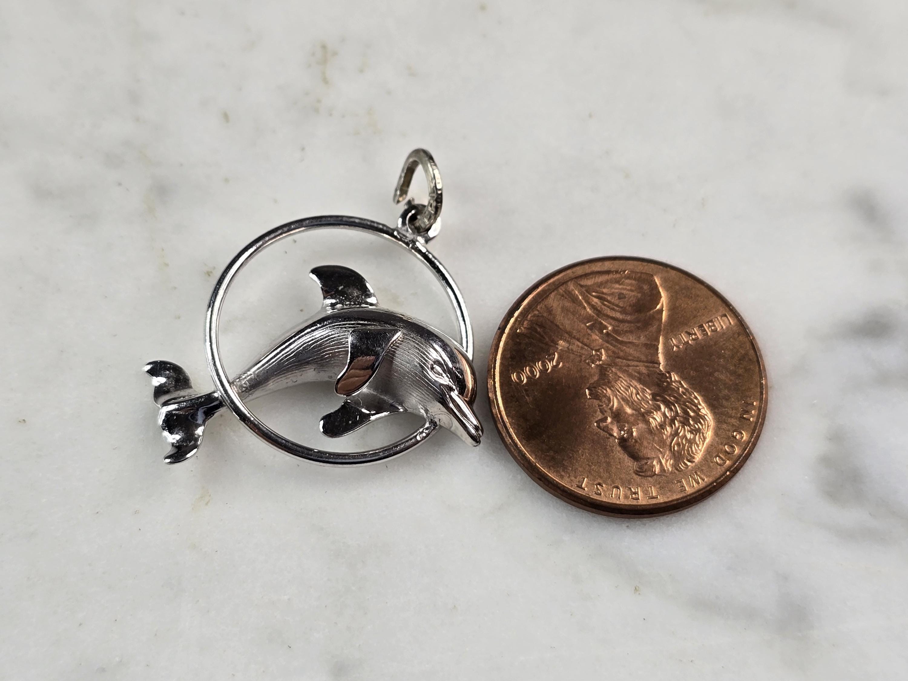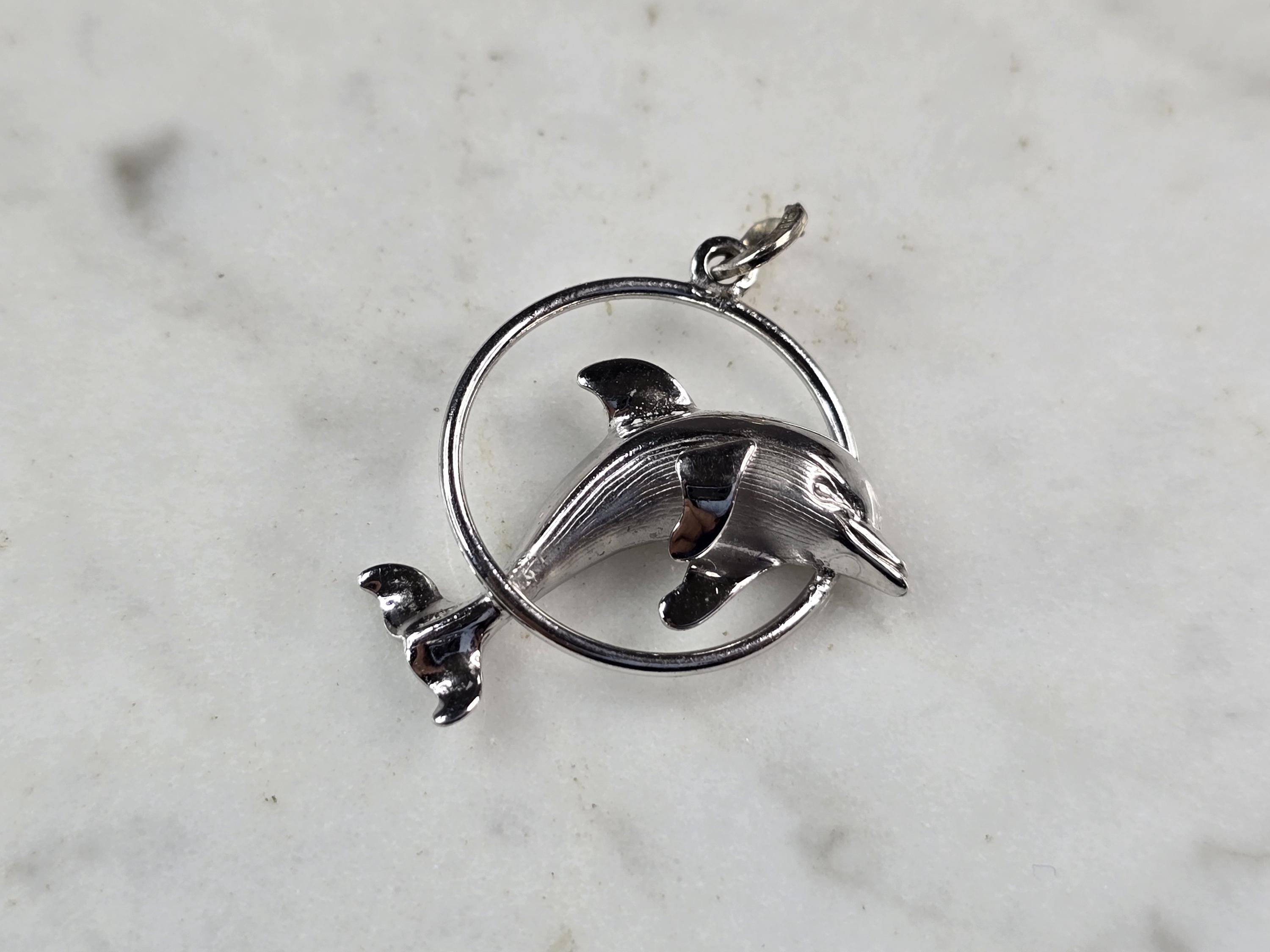 A WOMENS VINTAGE ESTATE STERLING SILVER DOLPHIN PENDANT. PENDANT WEIGHS 1.5g AND MEASURES 1" LONG BY 7/8" WIDE. MAKES A GREAT GIFT FOR THAT SOMEONE SPECIAL. ANY QUESTIONS, PLEASE ASK. BE SURE TO CHECK OUT OUR OTHER ITEMS FOR SALE.
