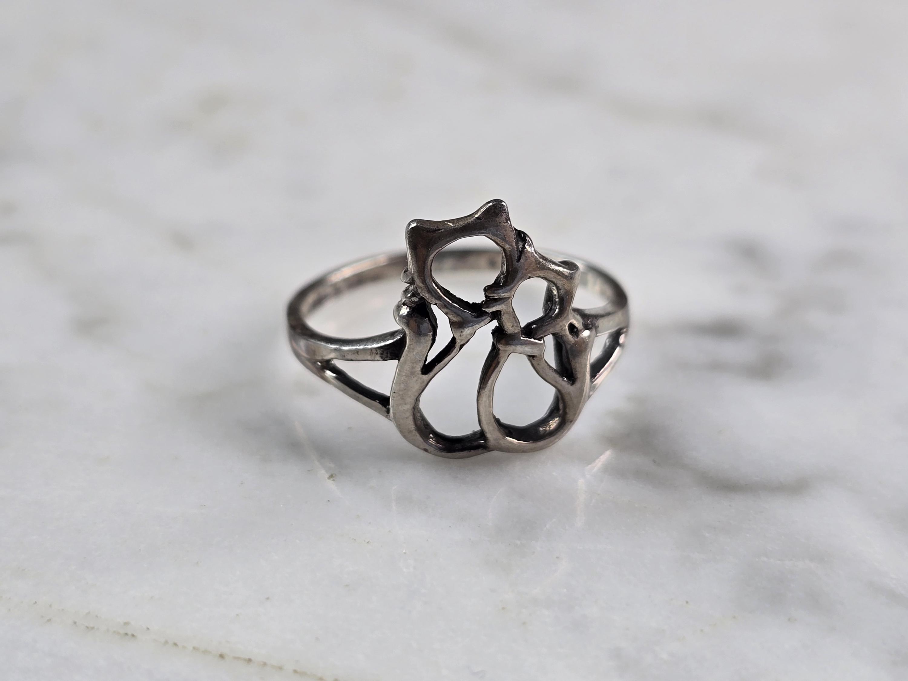 A WONDERFUL WOMENS VINTAGE ESTATE STERLING SILVER CAT RING. THE RING WEIGHS 1.9g, AND IS A SIZE 6.75. THE LENGTH OF THE RING IS 1/2". ANY QUESTIONS PLEASE DO NOT HESITATE TO ASK. BE SURE TO CHECK OUT MY OTHER GREAT ITEMS UP FOR SALE. THANK YOU.