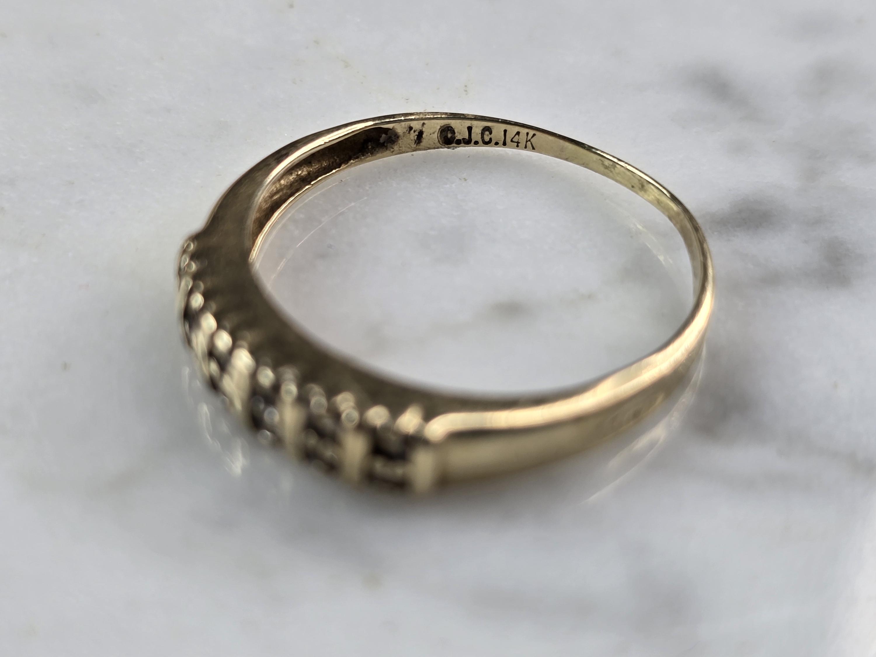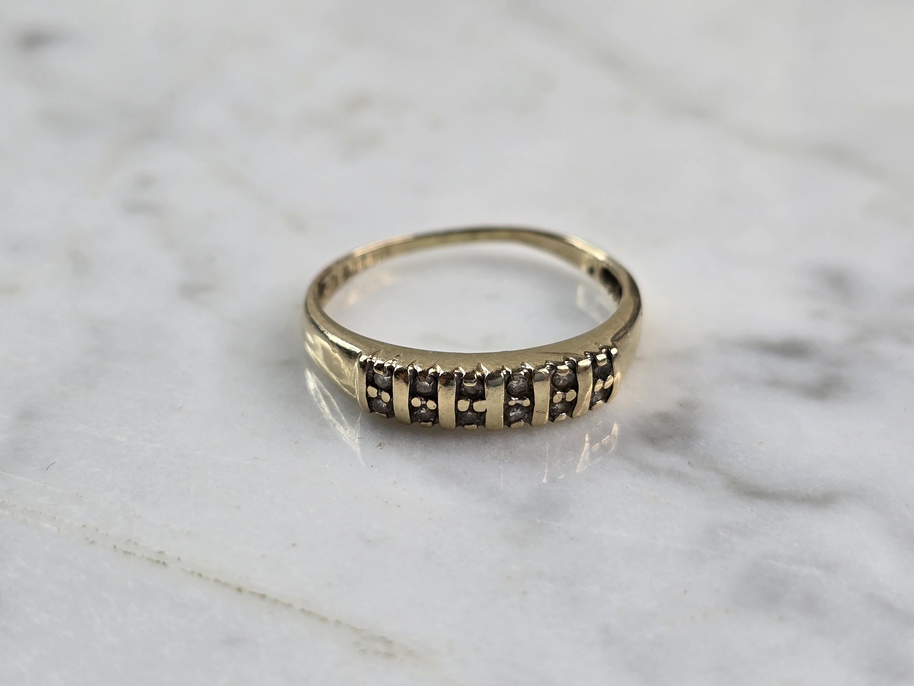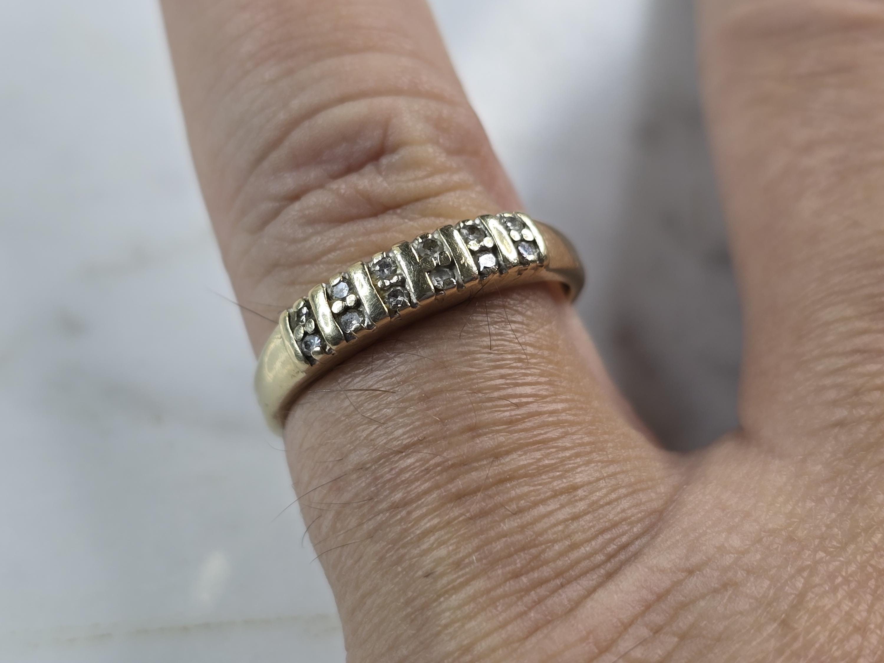 A WOMENS VINTAGE ESTATE 14K GOLD DIAMOND RING. THE RING IS A SIZE 7.75 AND WEIGHS 1.8g. THERE ARE 12 TINY DIAMONDS IN THIS RING. THE WIDTH OF THE RING IS 3/16". RING MAKES A BEAUTIFUL GIFT FOR THAT SOMEONE SPECIAL. ANY QUESTIONS, PLEASE ASK. BE SURE TO CHECK OUT SOME OF MY OTHER GREAT ITEMS UP FOR SALE. THANK YOU