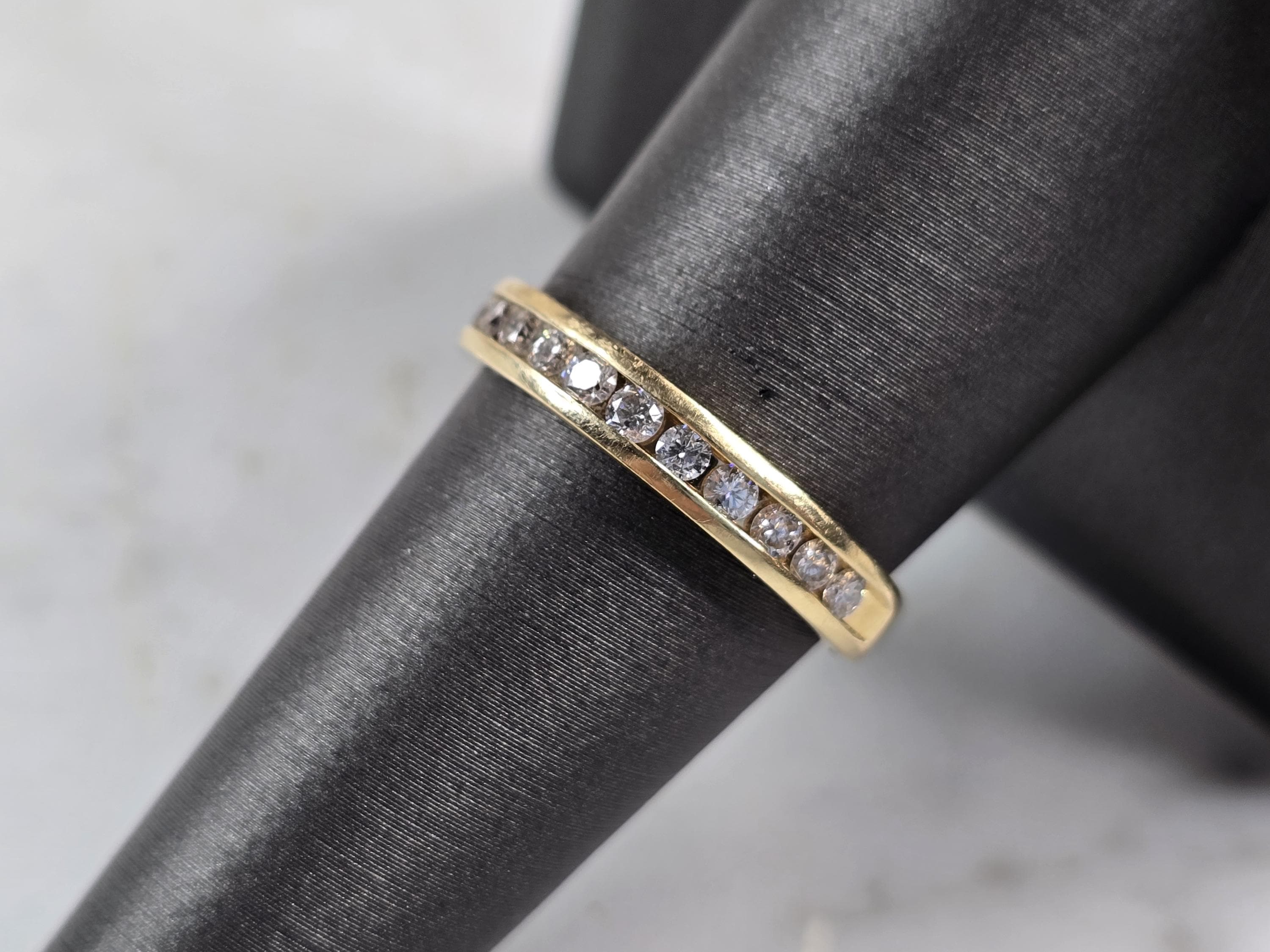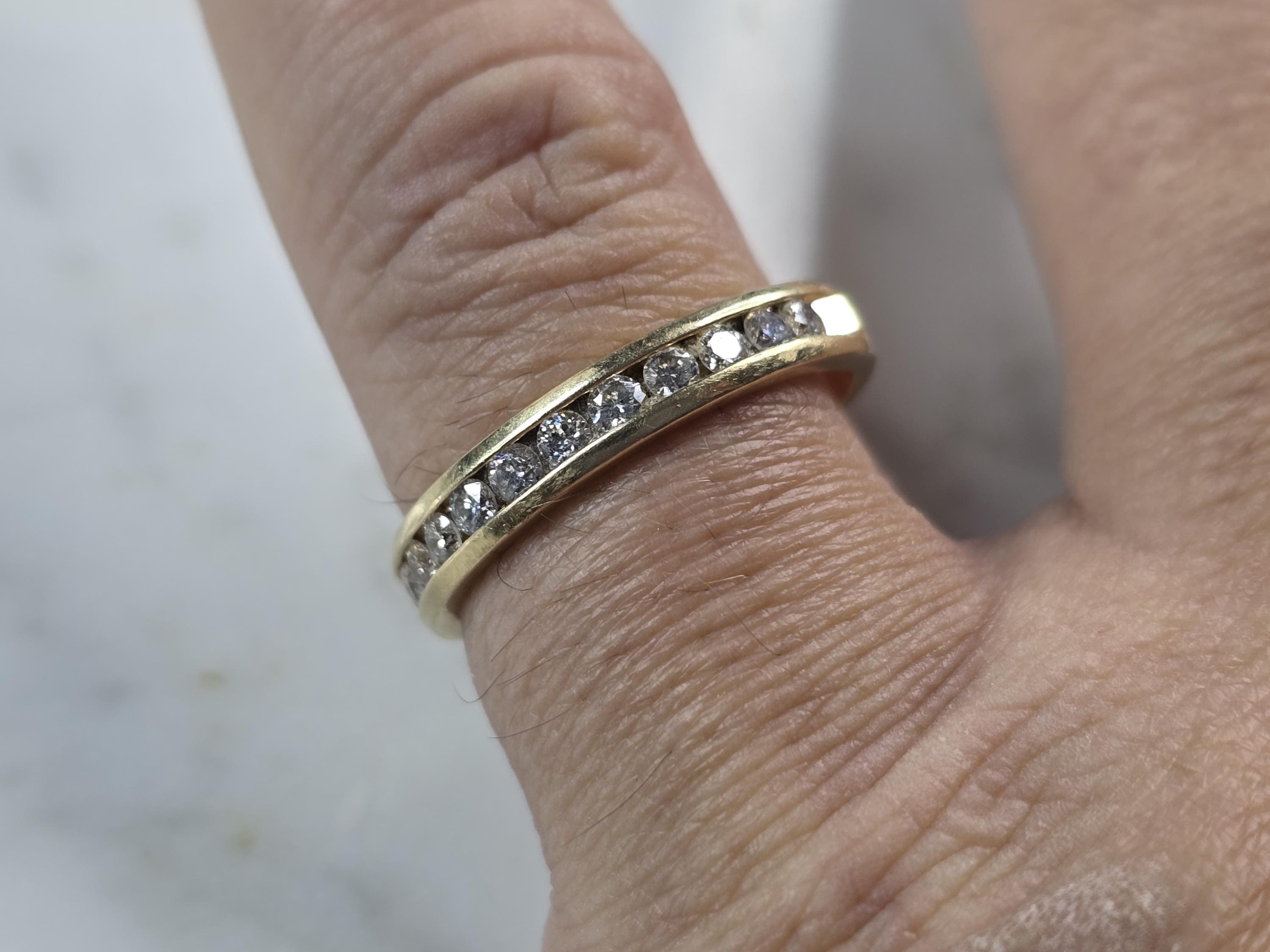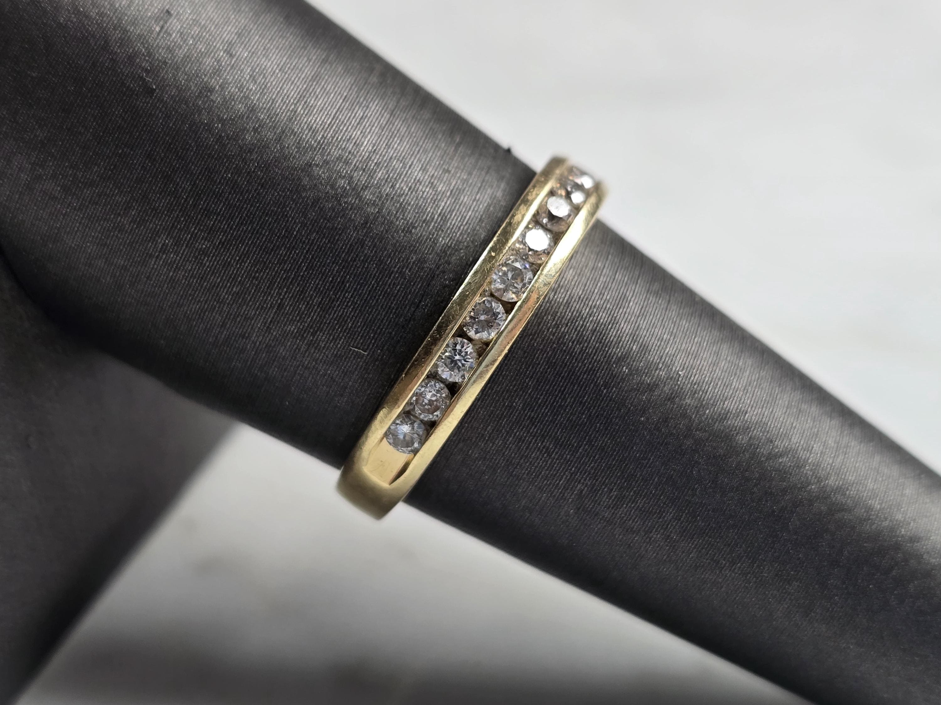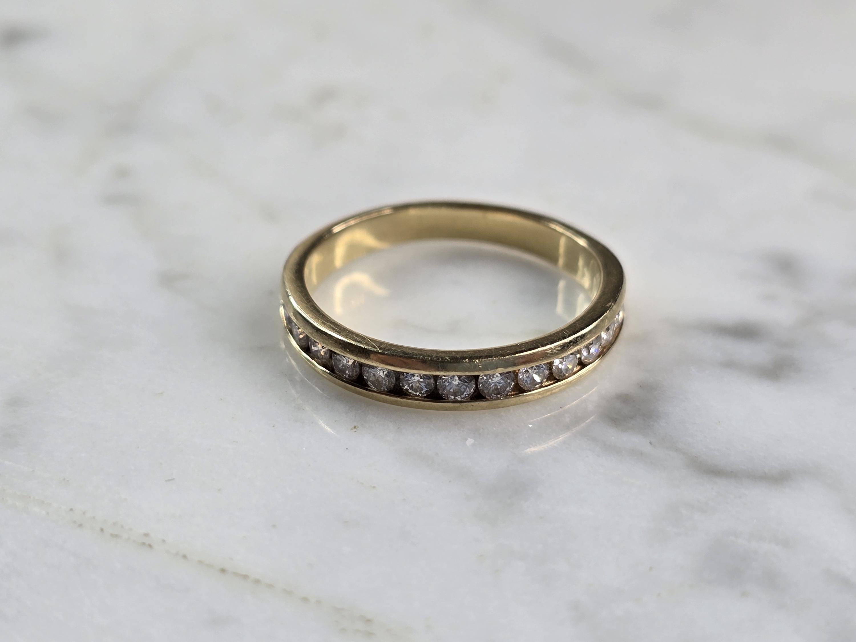 A WOMENS VINTAGE ESTATE 14K YELLOW GOLD DIAMOND RING. THE RING WEIGHS 3.0g AND IS A SIZE 8.0 THERE ARE 13 SMALL DIAMONDS IN THIS RING. THE WIDTH OF THE RING IS 1/8". ANY QUESTIONS PLEASE DO NOT HESITATE TO ASK. BE SURE TO CHECK OUT MY OTHER GREAT ITEMS UP FOR SALE. THANK YOU