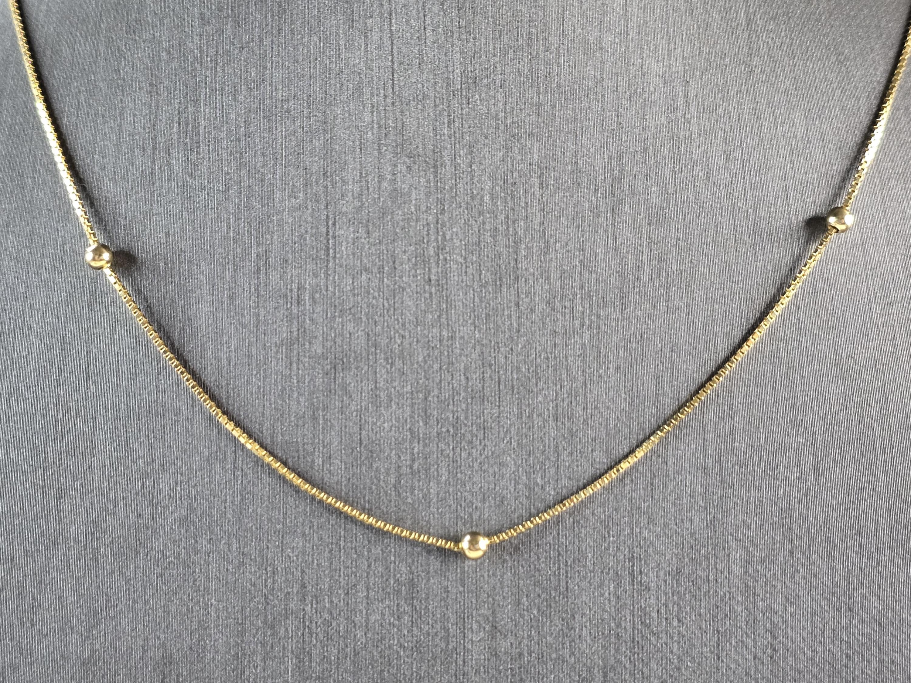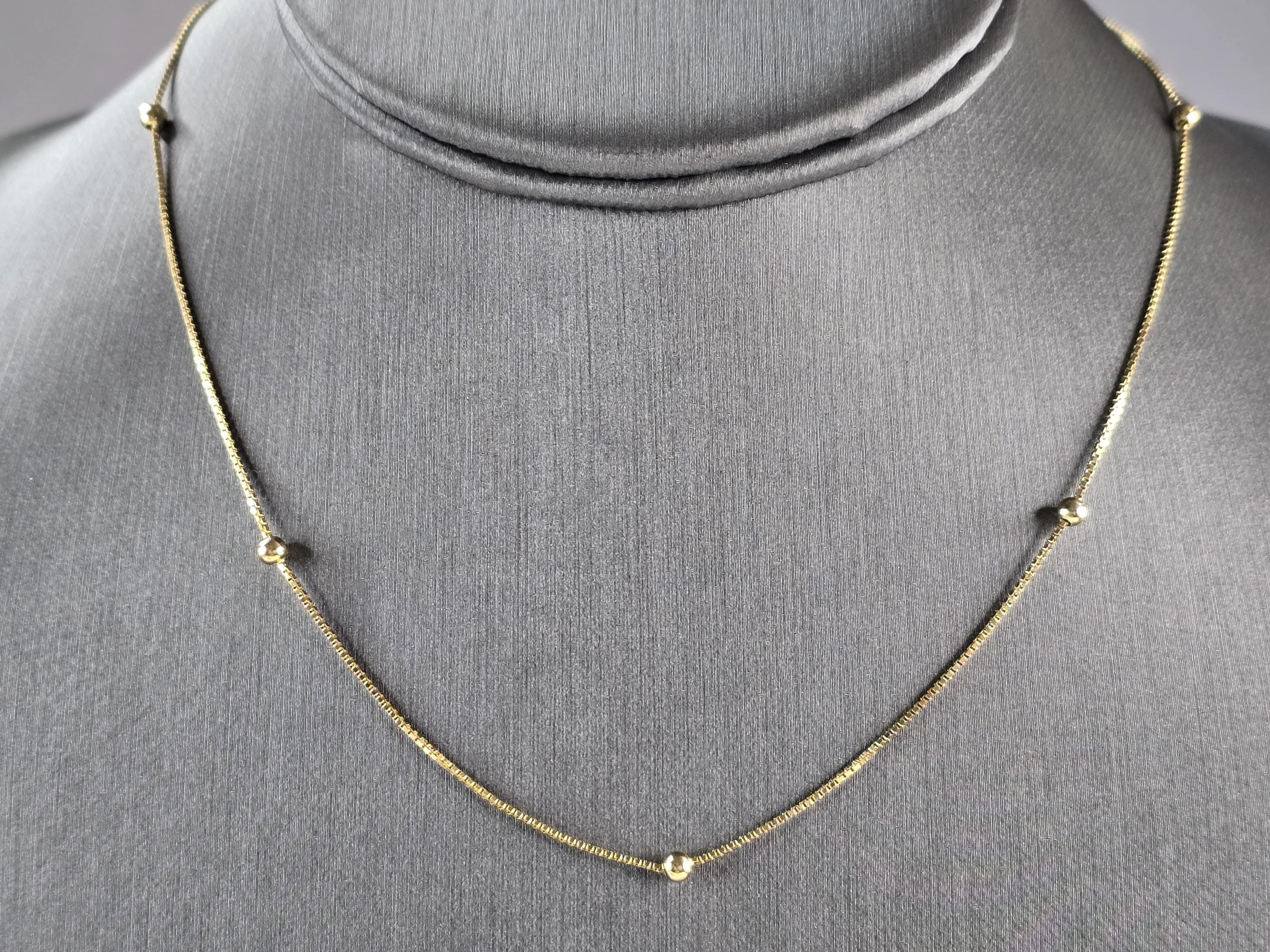 A WOMENS VINTAGE ESTATE 14K GOLD BEADED CHAIN NECKLACE. NECKLACE MEASURES ABOUT 16" LONG FROM THE CLASP BY ABOUT 1/8" WIDE. THE NECKLACE WEIGHS 2.3g. MAKES A BEAUTIFUL GIFT FOR THAT SOMEONE SPECIAL. ANY QUESTIONS, PLEASE ASK. BE SURE TO CHECK OUT SOME OF OUR OTHER GREAT ITEMS.