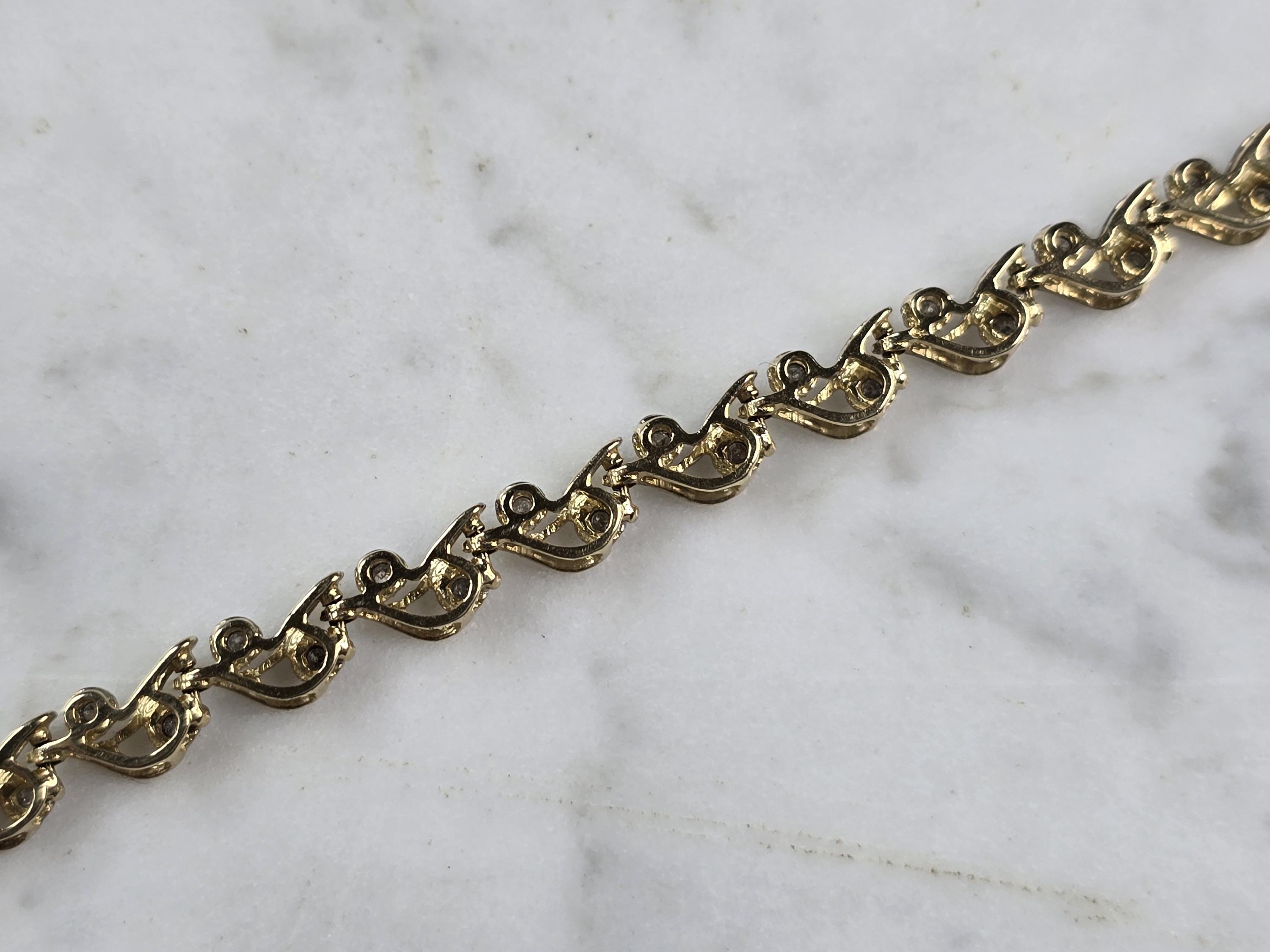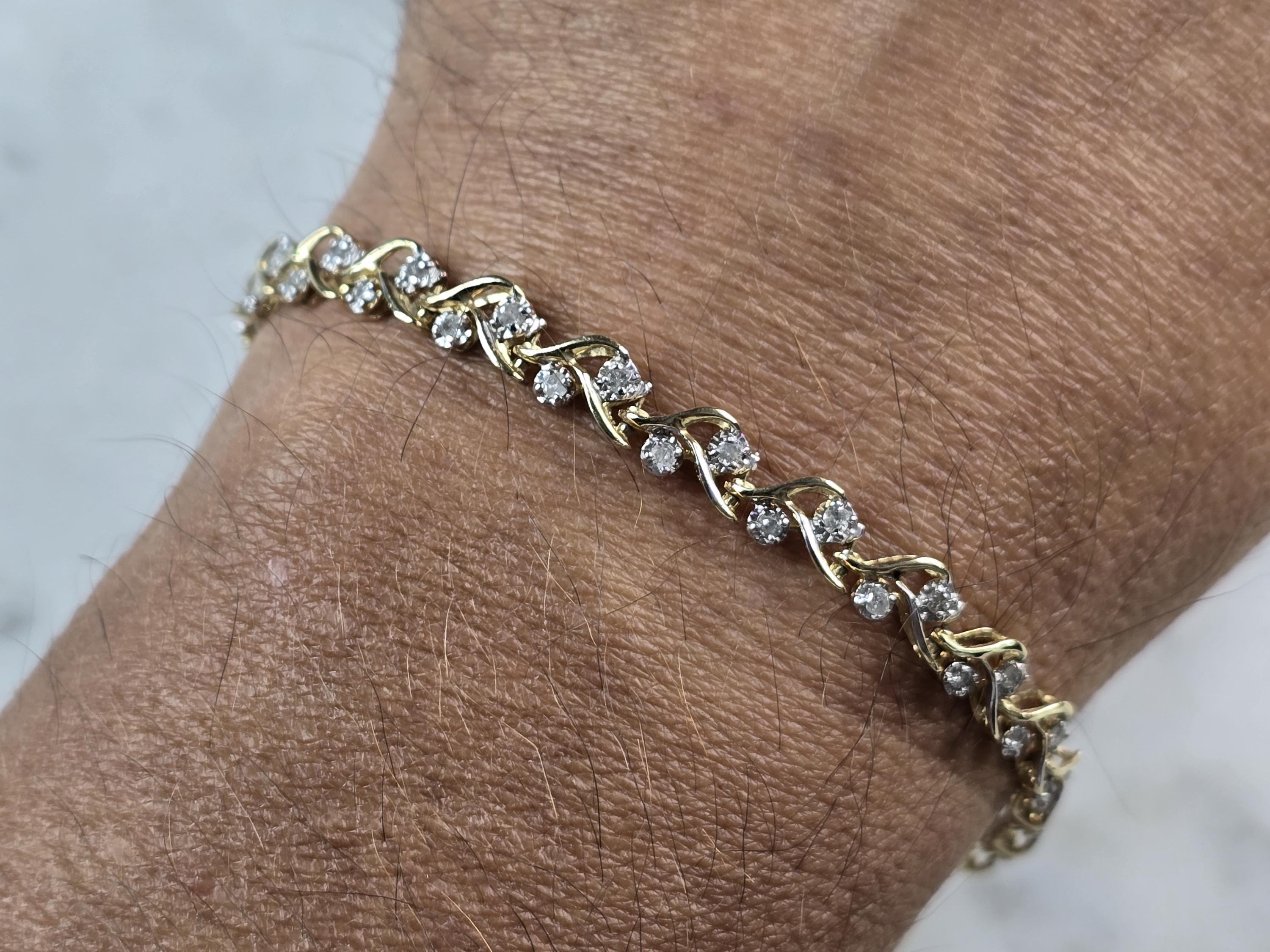 A WOMENS VINTAGE ESTATE 10K WOMENS TENNIS BRACELET. THE BRACELET MEASURES 7 1/8" LONG BY 1/4" WIDE, AND WEIGHS 7.3g. THERE ARE 44 TINY DIAMONDS IN THIS BRACELET. WOULD MAKE A GREAT GIFT FOR THAT SPECIAL SOMEONE. ANY QUESTIONS PLEASE DO NOT HESITATE TO ASK. BE SURE TO CHECK OUT SOME OF MY OTHER GREAT ITEMS UP FOR SALE. THANK YOU.