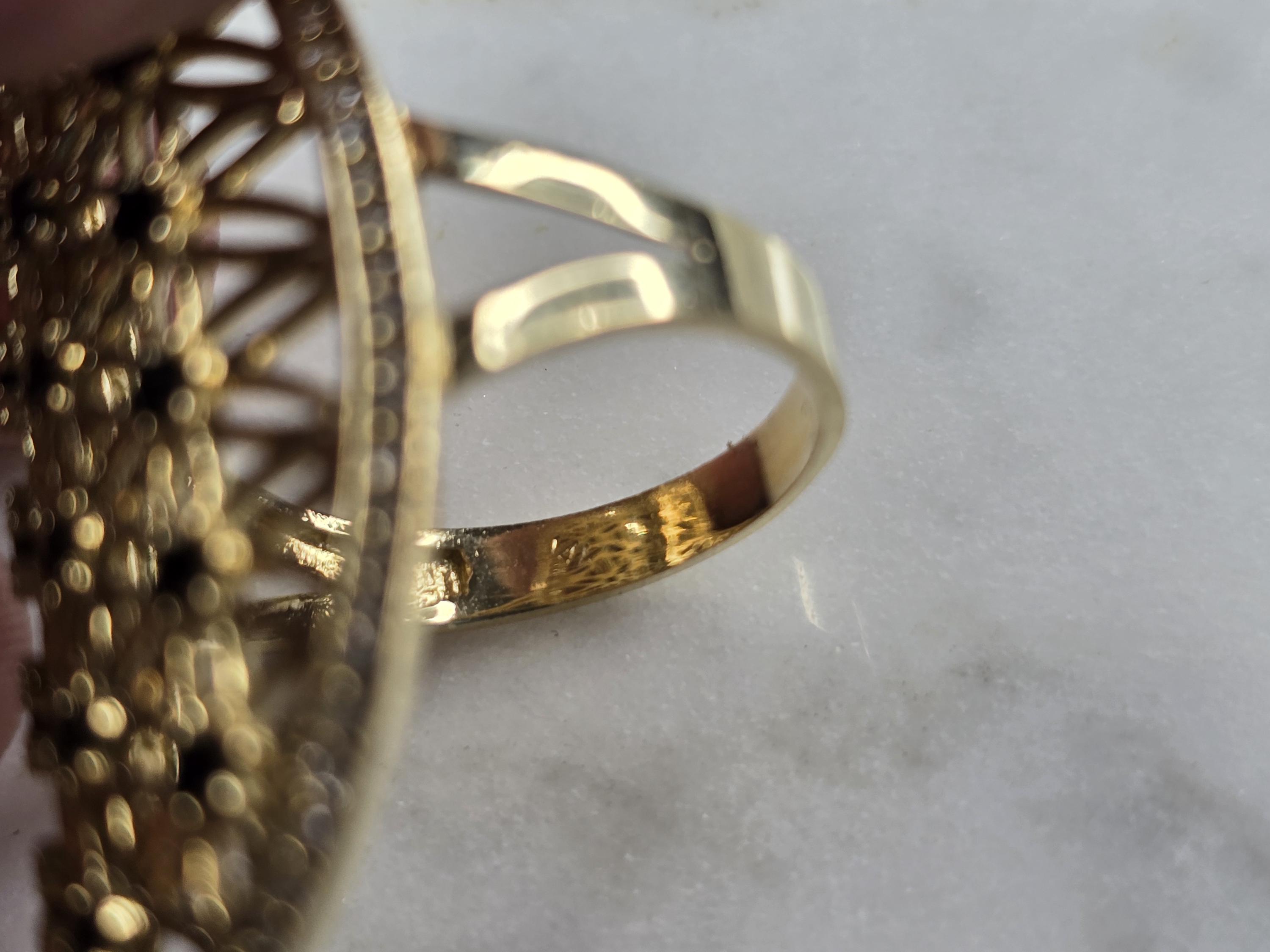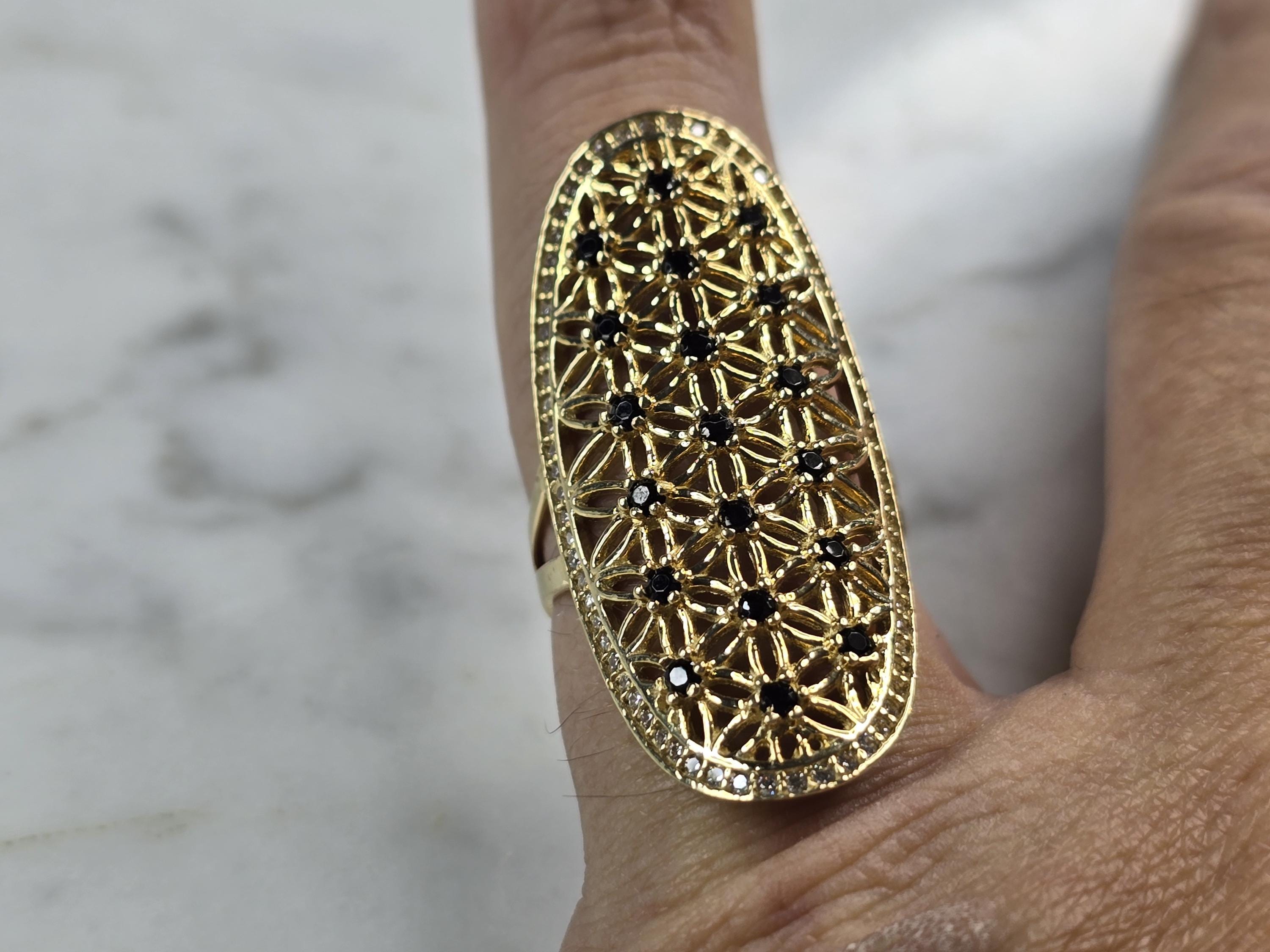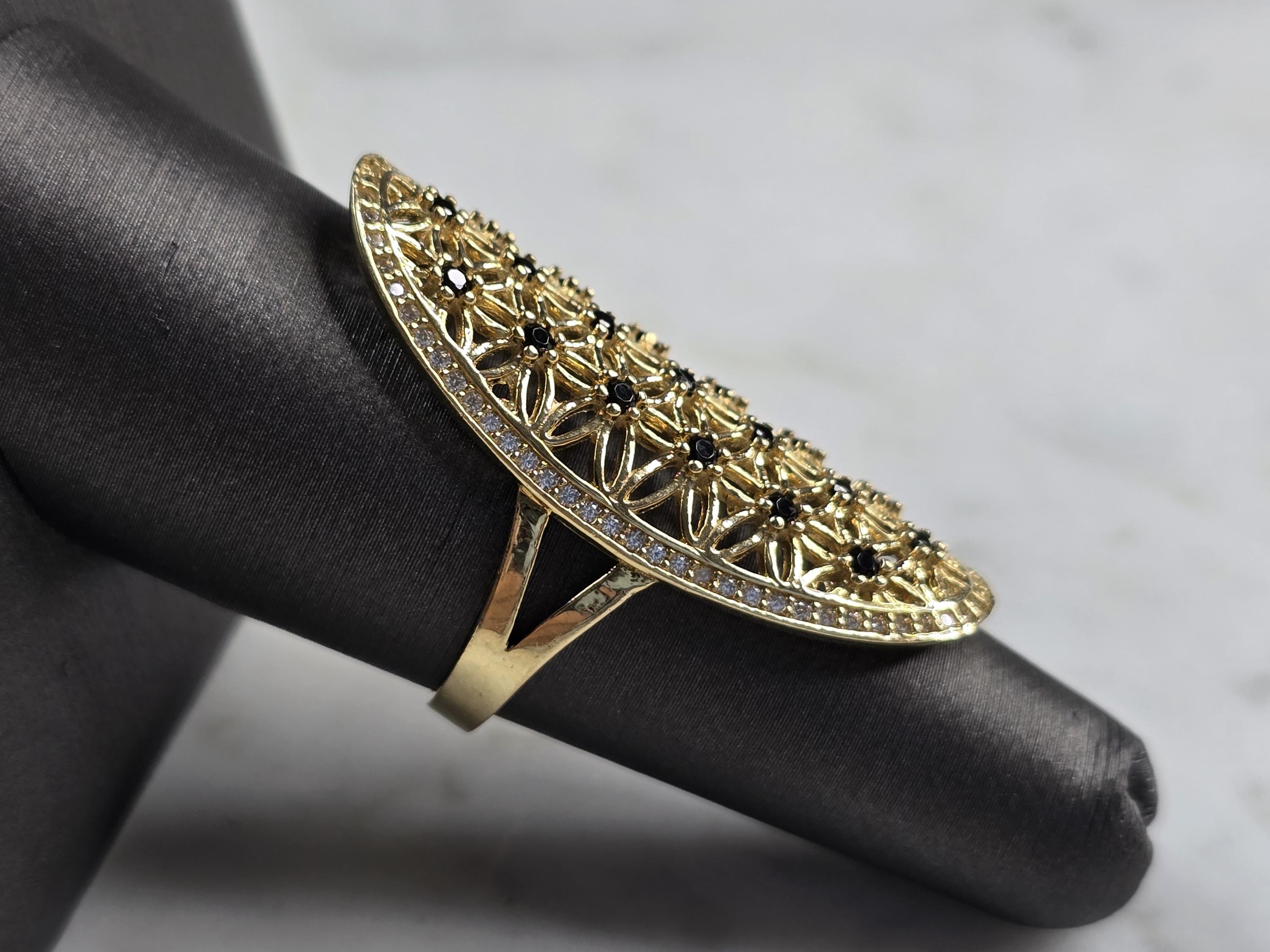 A UNIQUE WOMENS 14K YELLOW GOLD MODERNIST RING WITH MULTI COLORED STONES. THE RING SIZE IS A 7.0, AND WEIGHS 6.0g. THE LENGTH OF THE RING IS 1 1/2". RING HAS A FAINT MARK ON THE INSIDE. STONES ARE MAN MADE. THIS WOULD MAKE A NICE GIFT FOR THAT SOMEONE SPECIAL. ANY QUESTIONS, PLEASE DO NOT HESITATE TO ASK. BE SURE TO CHECK OUT MY OTHER GREAT ITEMS UP FOR SALE. THANK YOU.