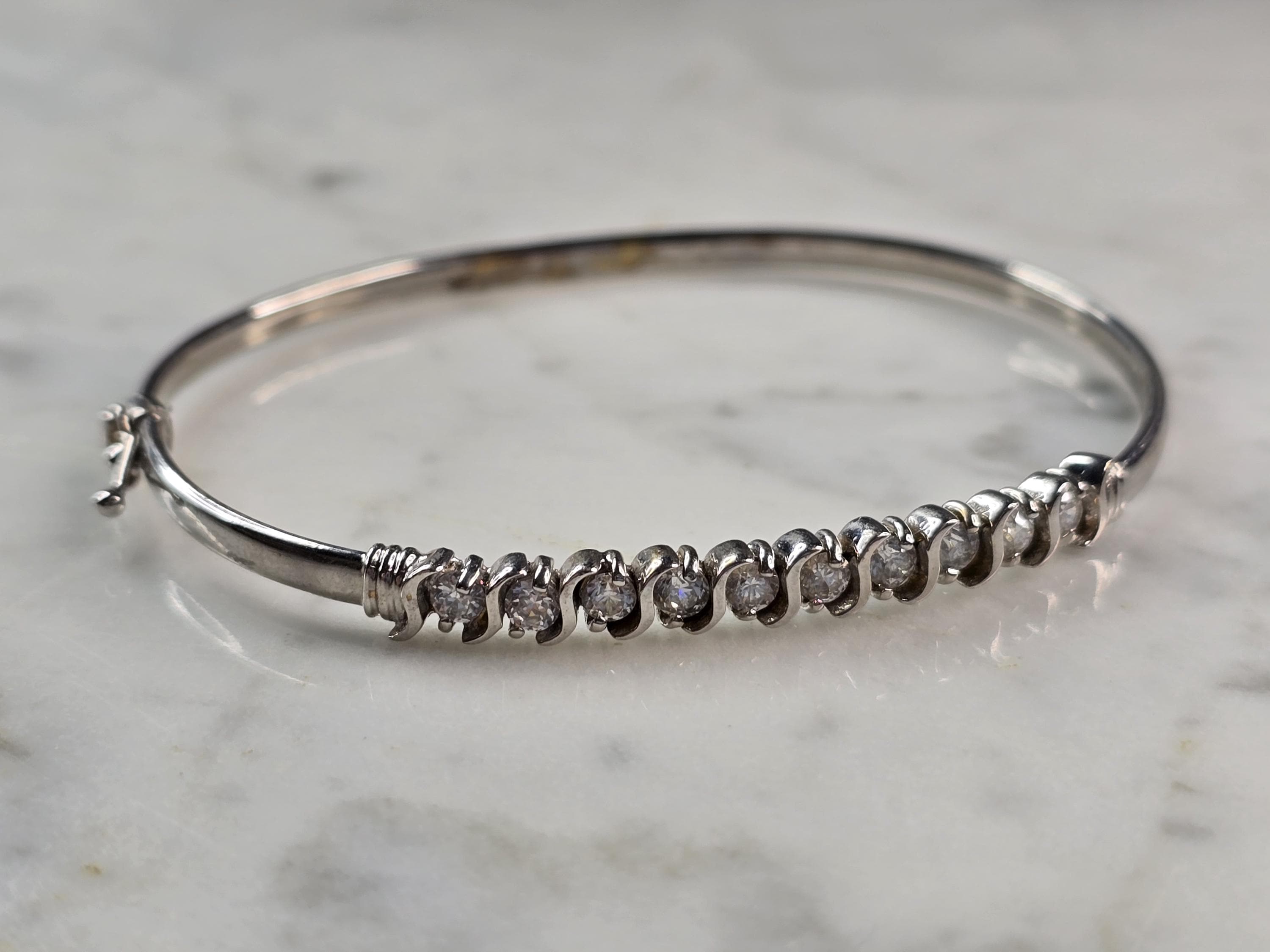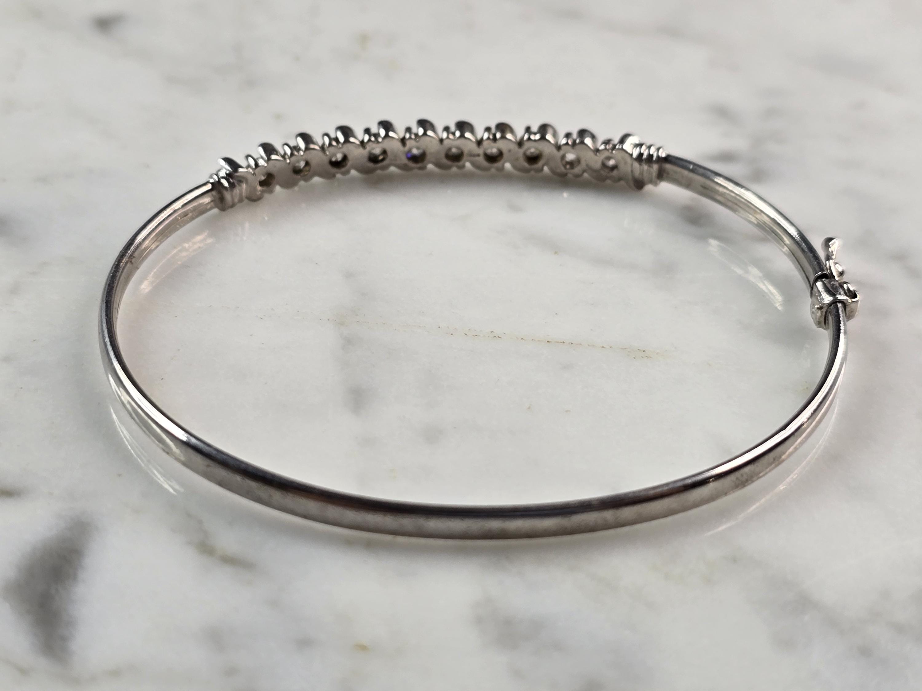 A WOMENS 14k WHITE GOLD CZ BRACELET THAT WEIGHS 7.5g AND MEASURES 7" FOR THE INNER CIRCUMFERENCE BY 3/16". BRACELET IS MARKED "14K". ANY QUESTIONS PLEASE ASK. BE SURE TO CHECK OUT SOME OF MY OTHER GREAT ITEMS UP FOR SALE. THANK YOU.
