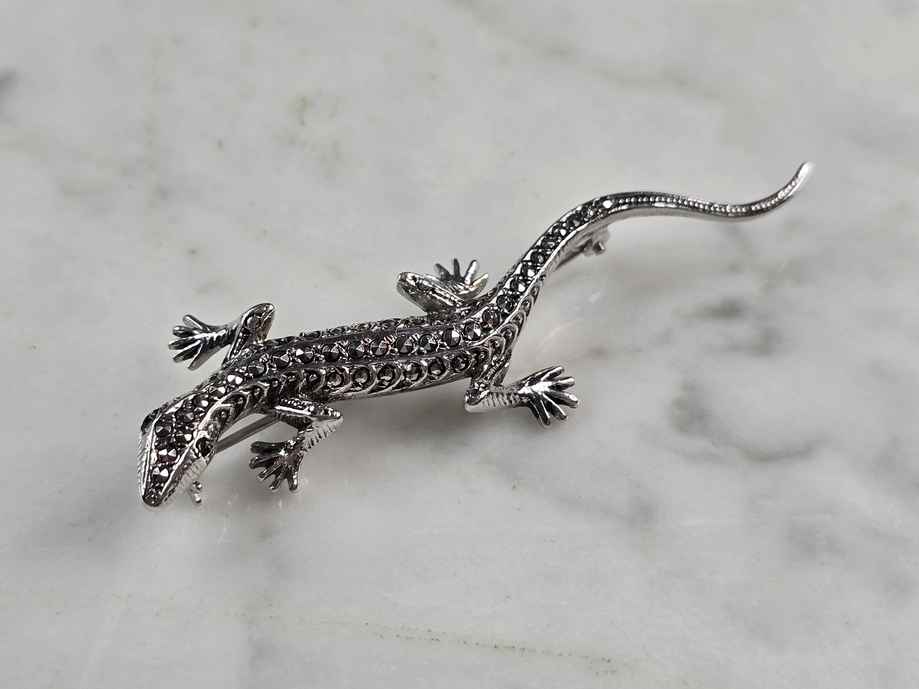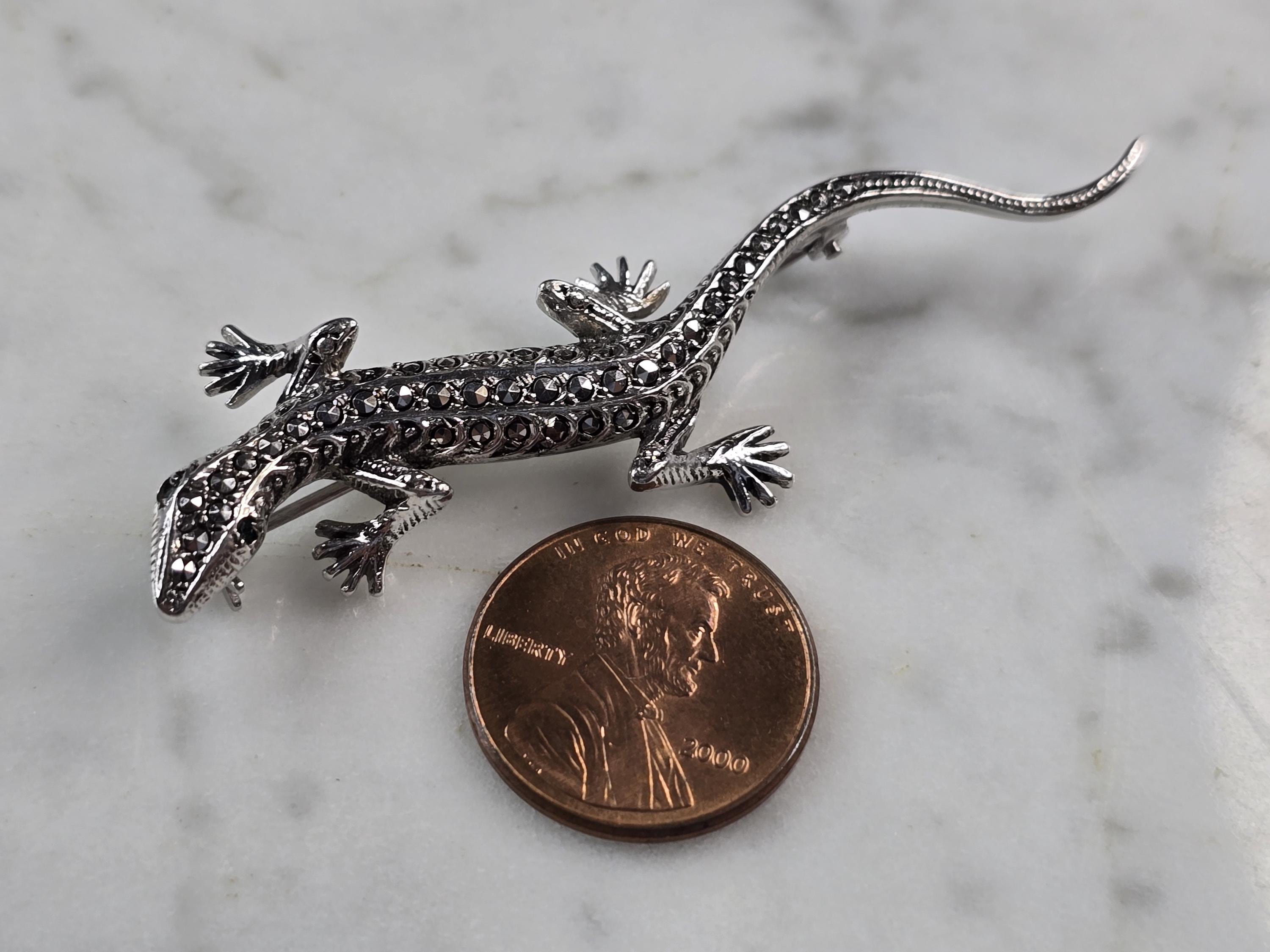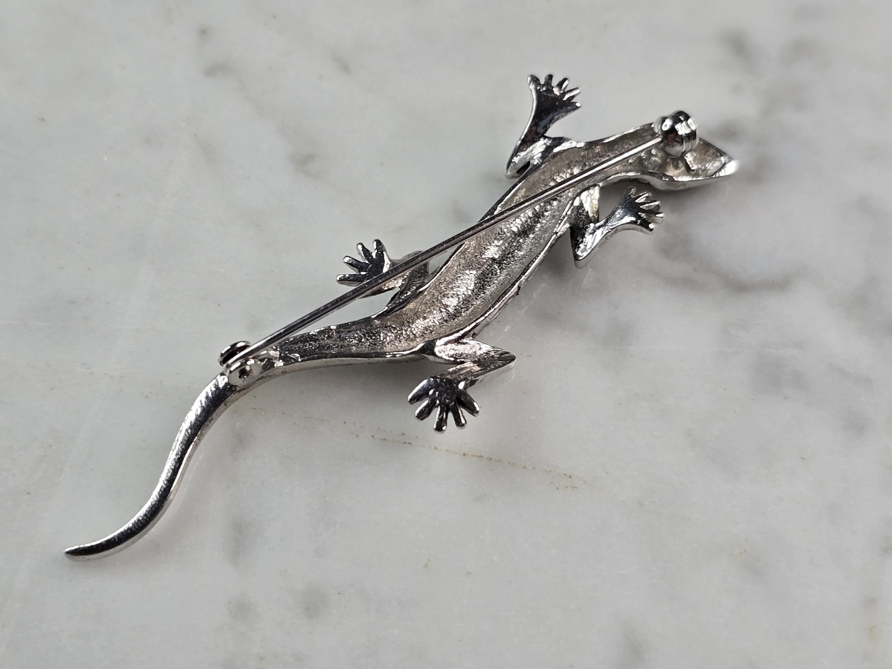 A VINTAGE ESTATE STERLING SILVER LIZARD BROOCH. THE TOTAL WEIGHT OF THE BROOCH IS 6.3g. THE BROOCH MEASURES 2 1/2" LONG BY 5/8" WIDE. MAKES A GREAT GIFT FOR THAT SPECIAL SOMEONE. ANY QUESTIONS, PLEASE ASK. BE SURE TO CHECK OUT SOME OF OUR OTHER GREAT ITEMS FOR SALE.