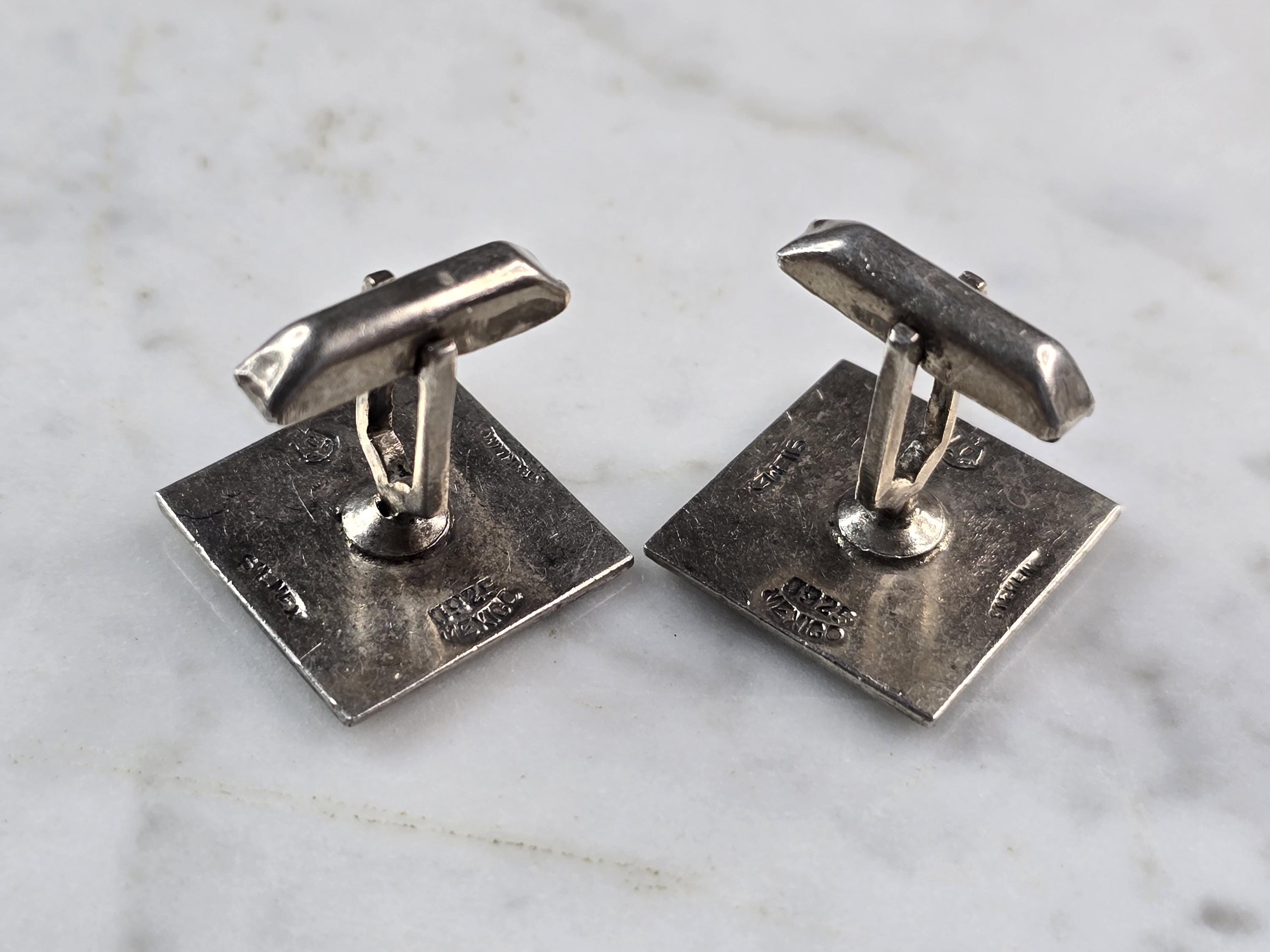 A PAIR OF MEN'S VINTAGE ESTATE STERLING SILVER MAYAN CALENDAR CUFF LINKS. THE CUFF LINKS WEIGH 15.3g. THE FACE OF THE CUFF LINKS MEASURES 3/4" LONG BY 3/4" WIDE. ANY QUESTIONS PLEASE DO NOT HESITATE TO ASK. BE SURE TO CHECK OUT SOME OF MY OTHER GREAT ITEMS UP FOR SALE. THANK YOU.