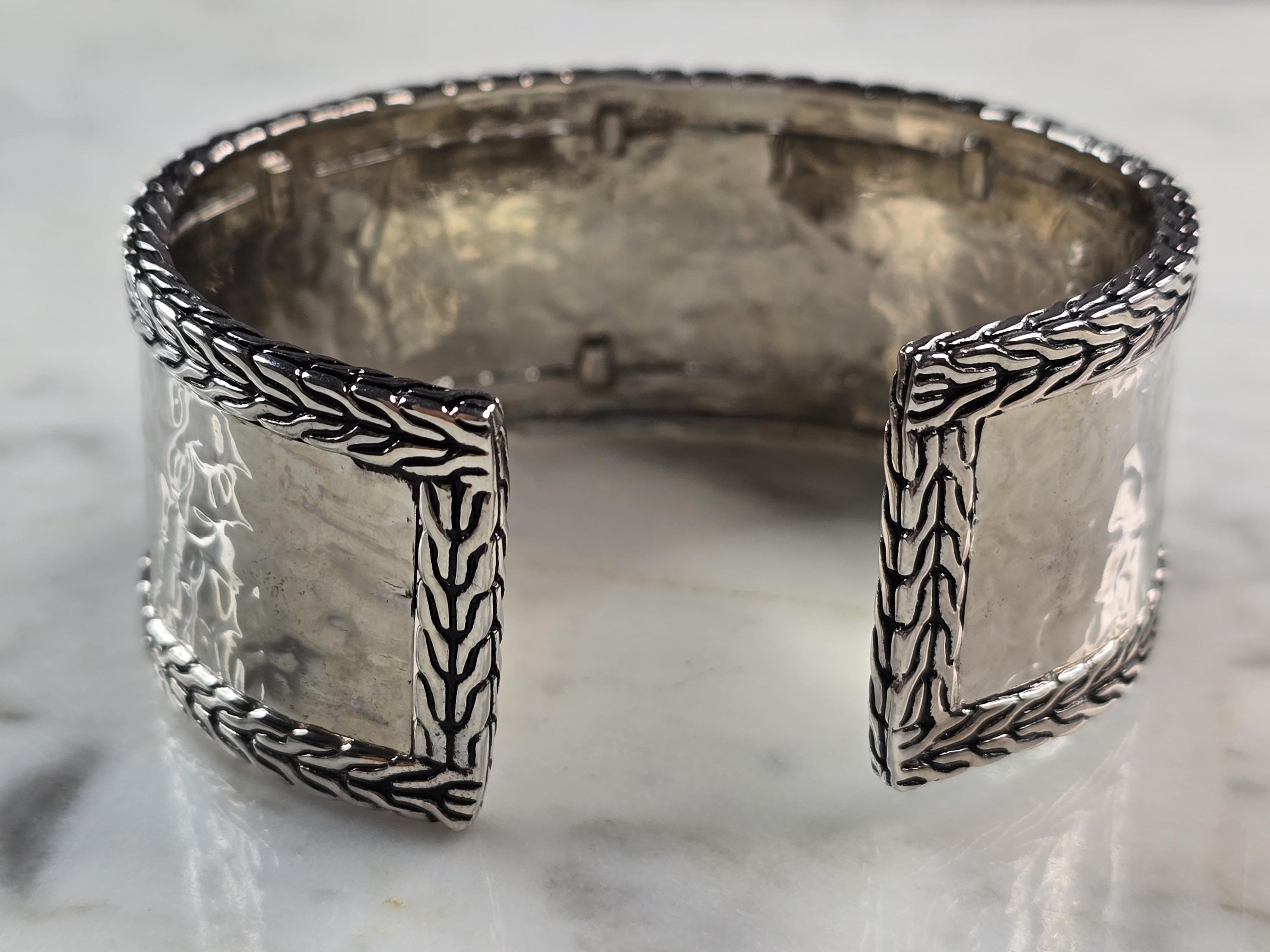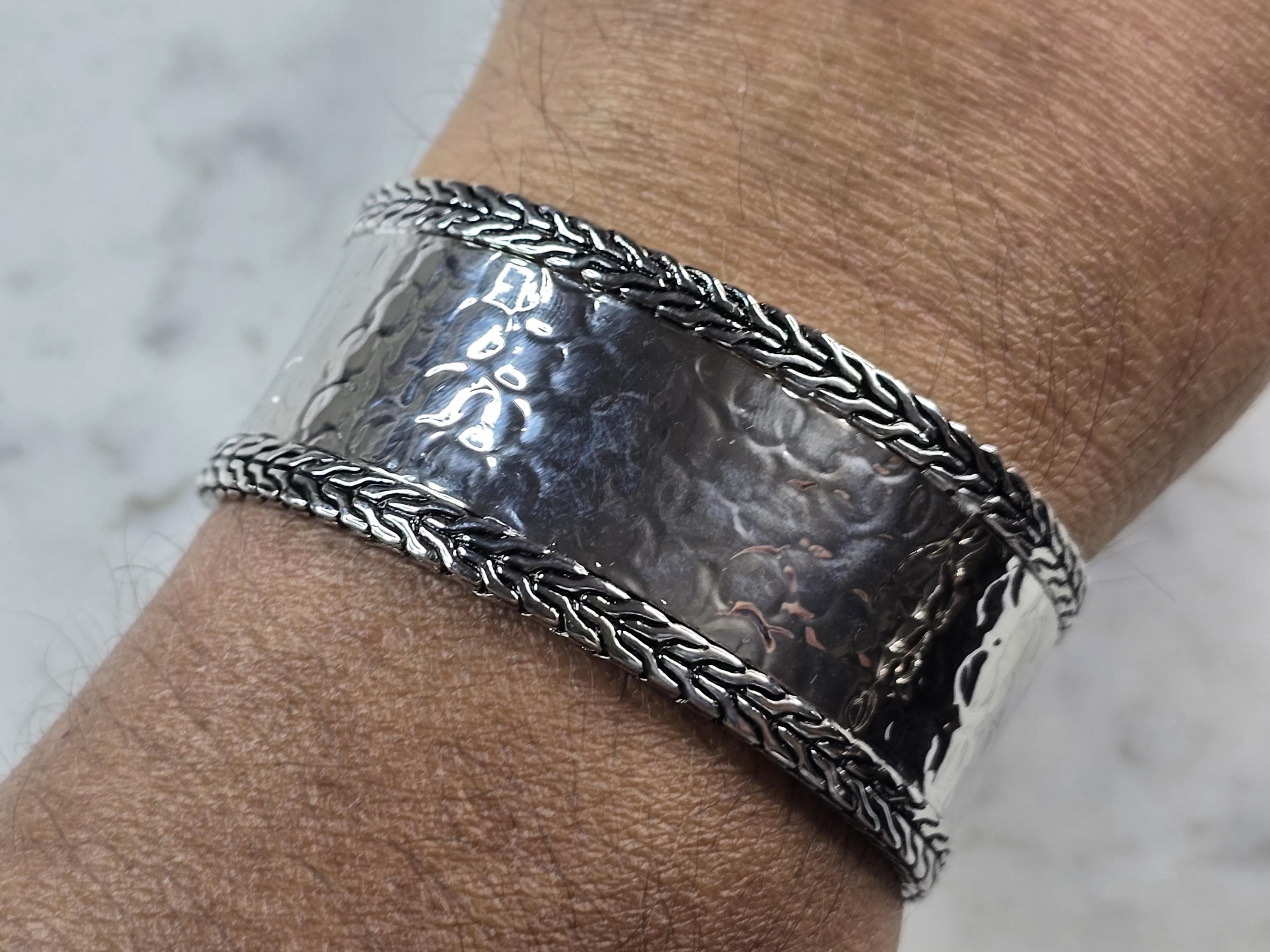 A LOVELY VINTAGE ESTATE STERLING SILVER MODERNIST CUFF BRACELET. BRACELET MEASURES 7" IN CIRCUMFERENCE BY 1 1/8" WIDE AND WEIGHS 38.8g. THIS WOULD MAKE A LOVELY GIFT FOR THAT SOMEONE SPECIAL. ANY QUESTIONS, PLEASE DON'T HESITATE TO ASK. BE SURE TO CHECK OUT SOME OF MY OTHER GREAT ITEMS UP FOR SALE. THANK YOU.