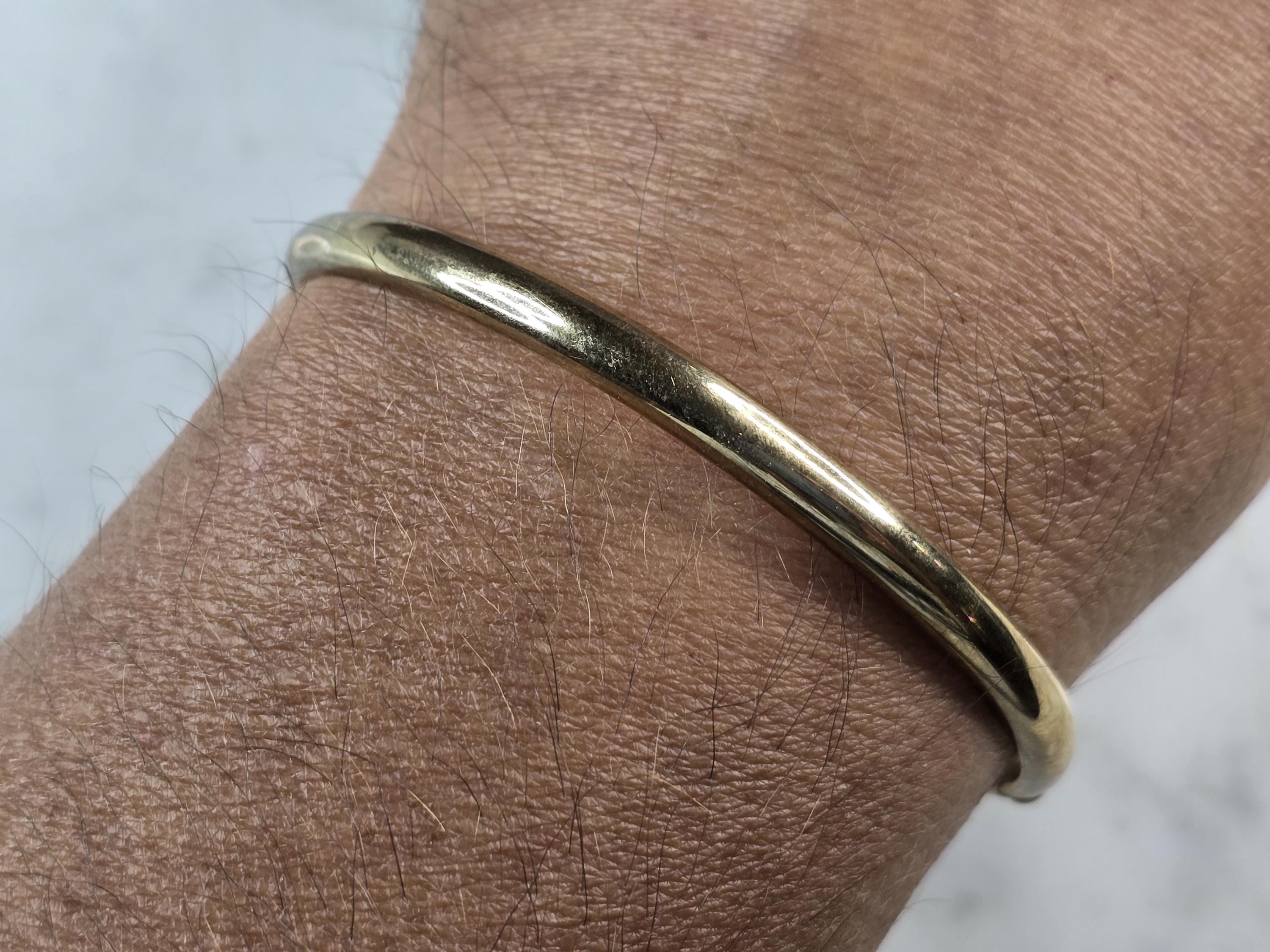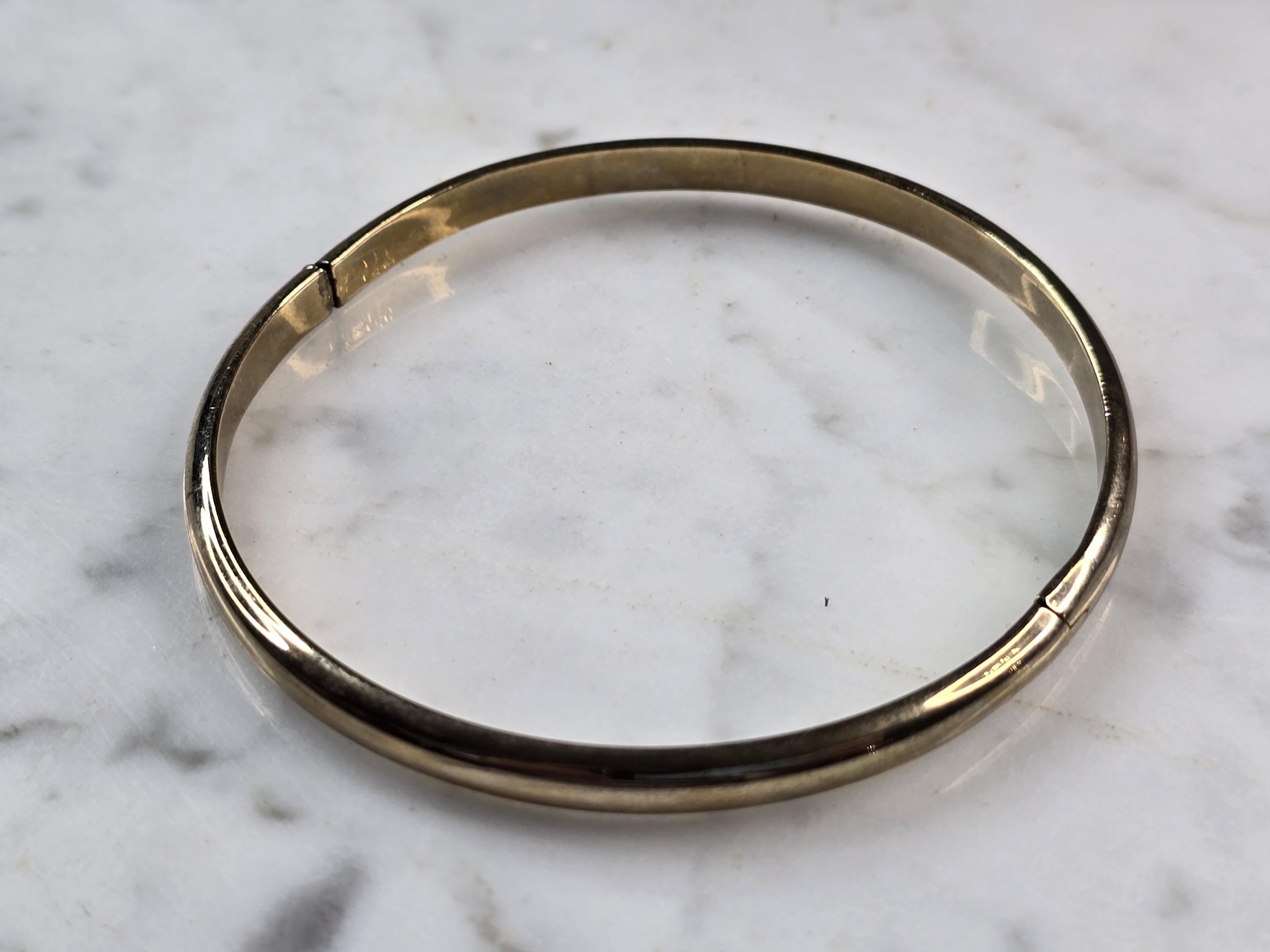 A WOMENS VINTAGE ESTATE STERLING SILVER, GOLD TONE MODERNIST BANGLE BRACELET. BRACELET MEASURES 8" IN CIRCUMFERENCE, BY 3/16" WIDE, AND WEIGHS 9.8g. THIS WOULD MAKE A LOVELY GIFT FOR THAT SOMEONE SPECIAL. ANY QUESTIONS, PLEASE DON'T HESITATE TO ASK. BE SURE TO CHECK OUT SOME OF MY OTHER GREAT ITEMS UP FOR SALE. THANK YOU.