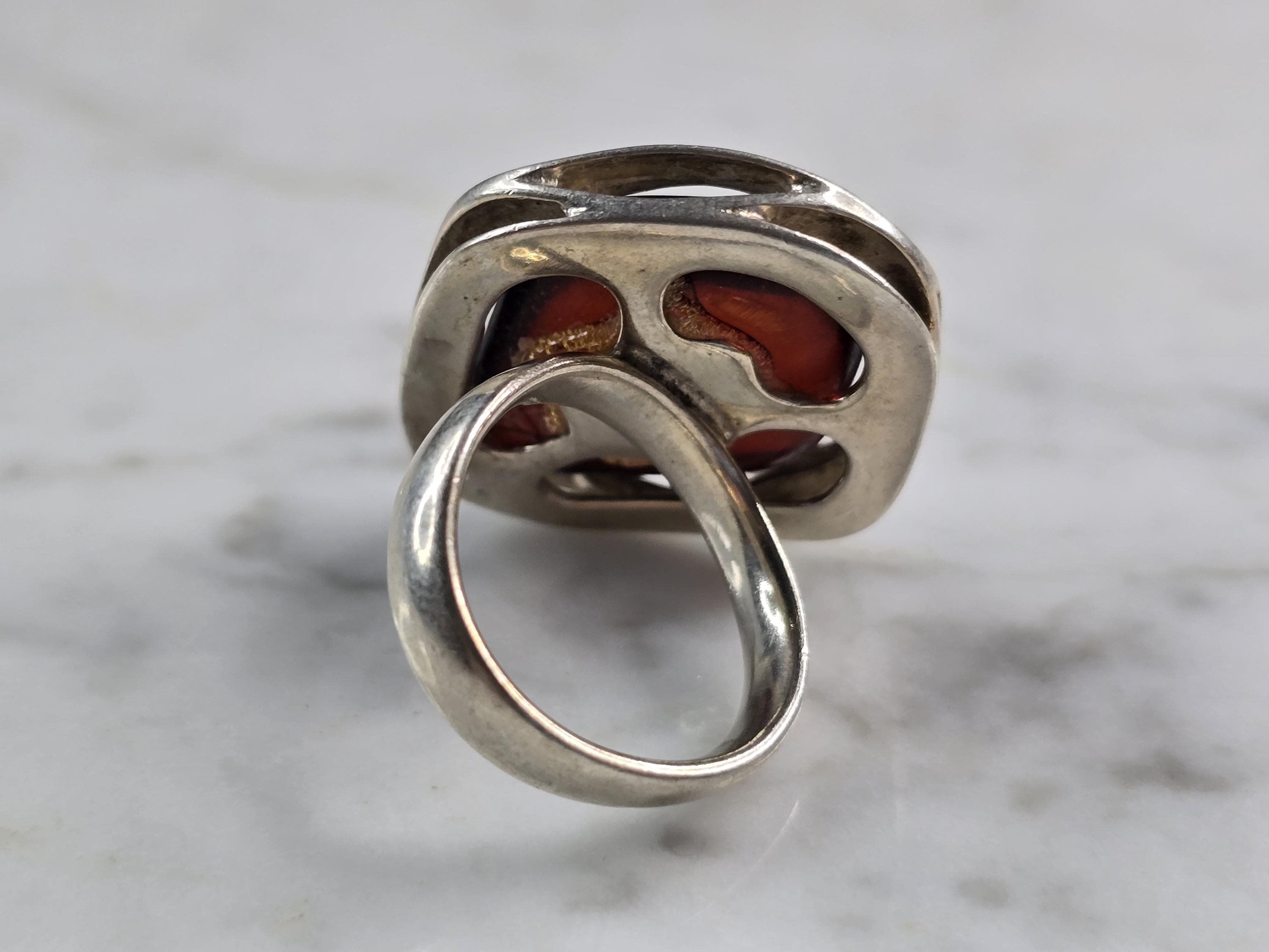 A WOMENS VINTAGE ESTATE STERLING SILVER MODERNIST RING. RING SIZE IS 6.0, AND WEIGHS 10.1g. THE LENGTH OF THE RING IS 1 1/8". THIS WOULD MAKE A NICE GIFT FOR THAT SOMEONE SPECIAL. ANY QUESTIONS PLEASE DO NOT HESITATE TO ASK. BE SURE TO CHECK OUT SOME OF MY OTHER GREAT ITEMS UP FOR SALE. THANK YOU