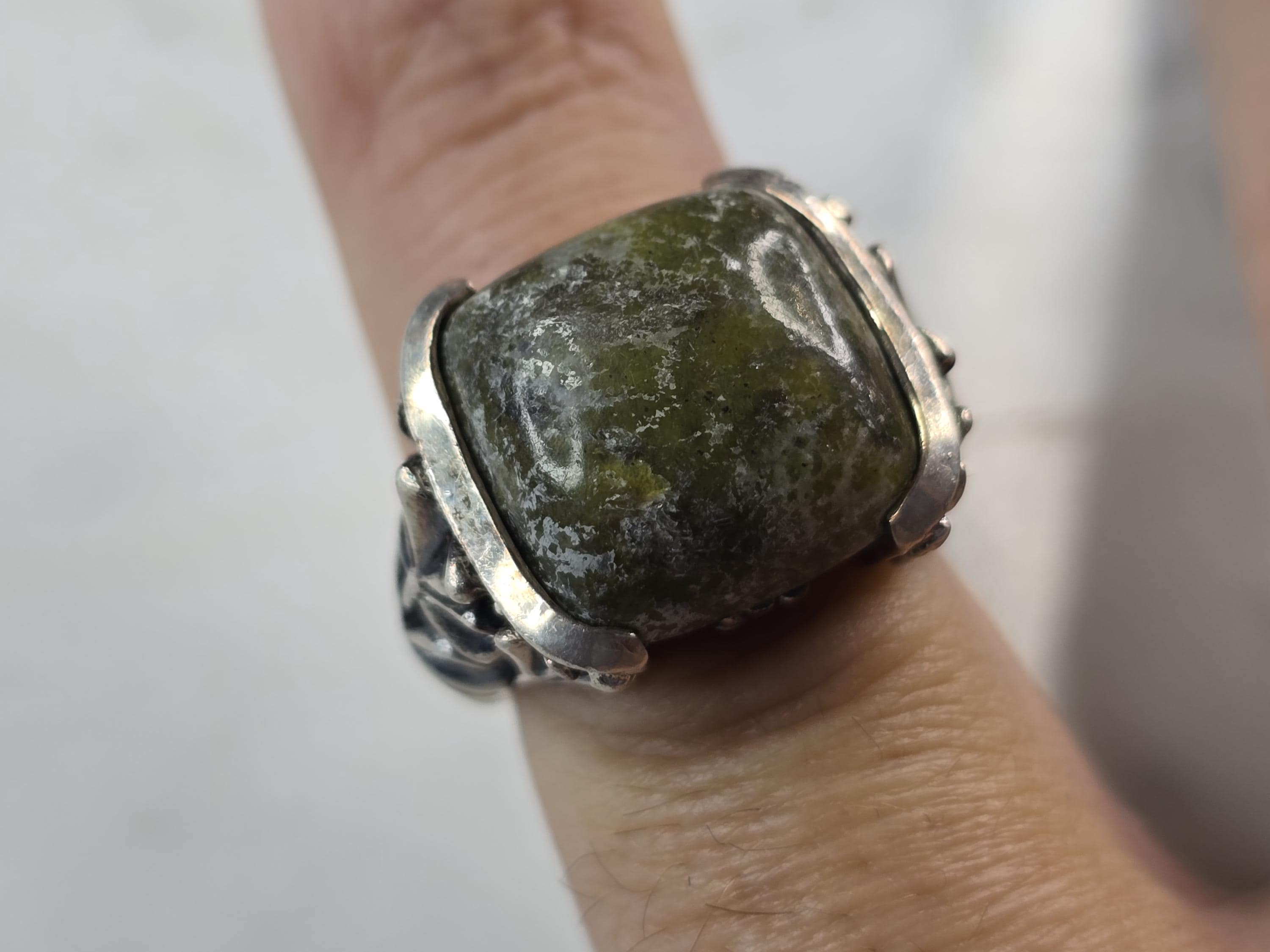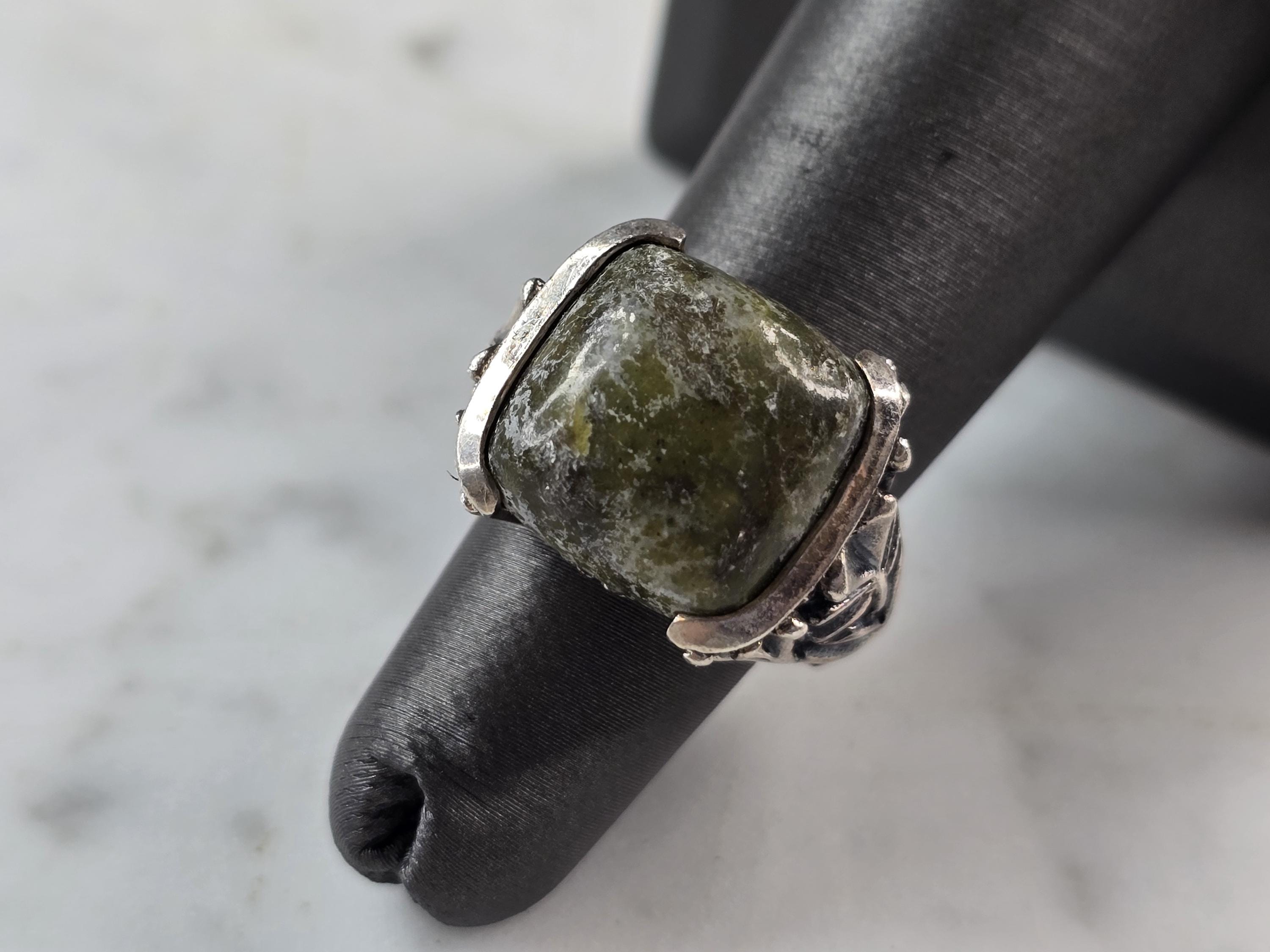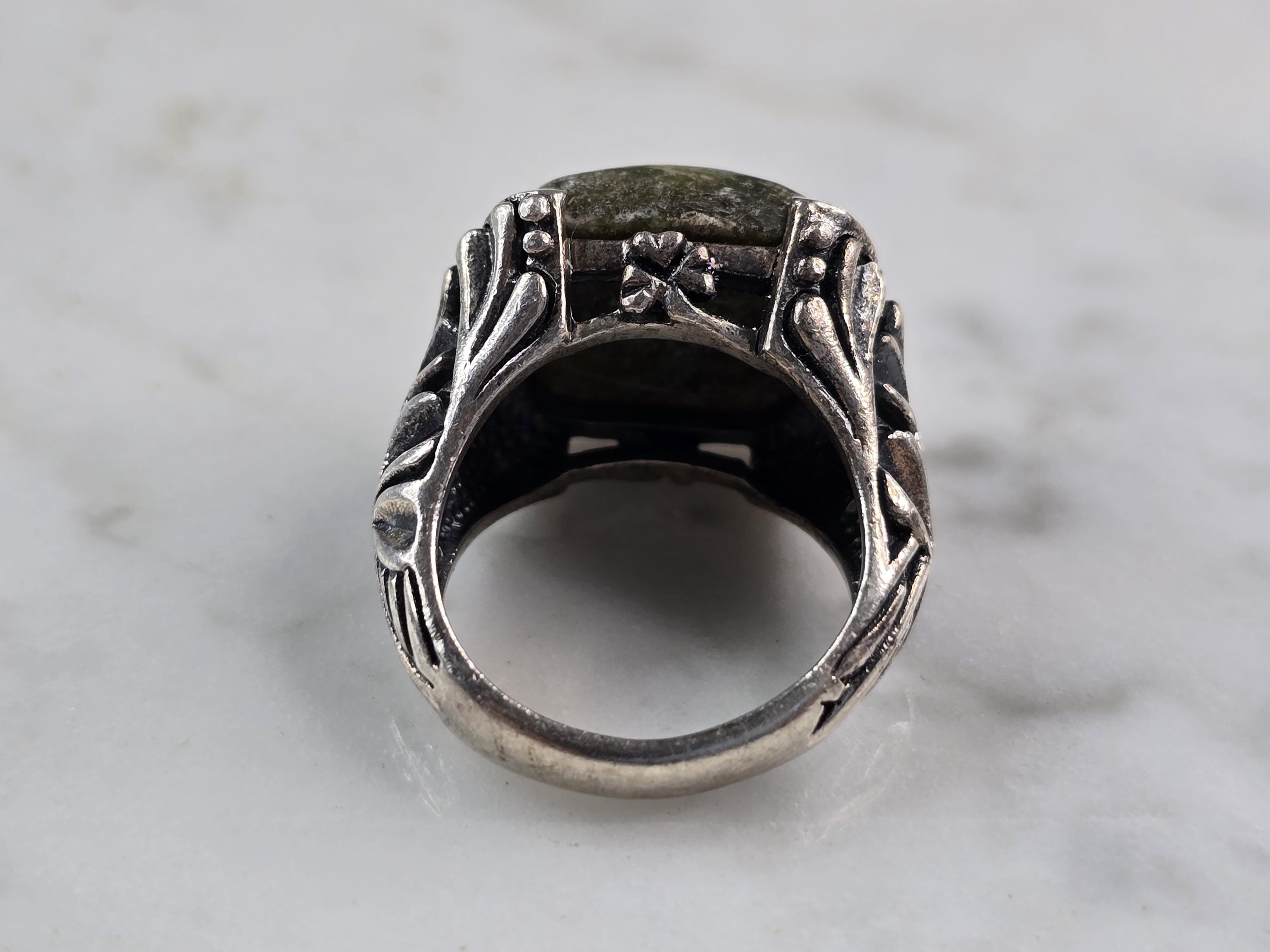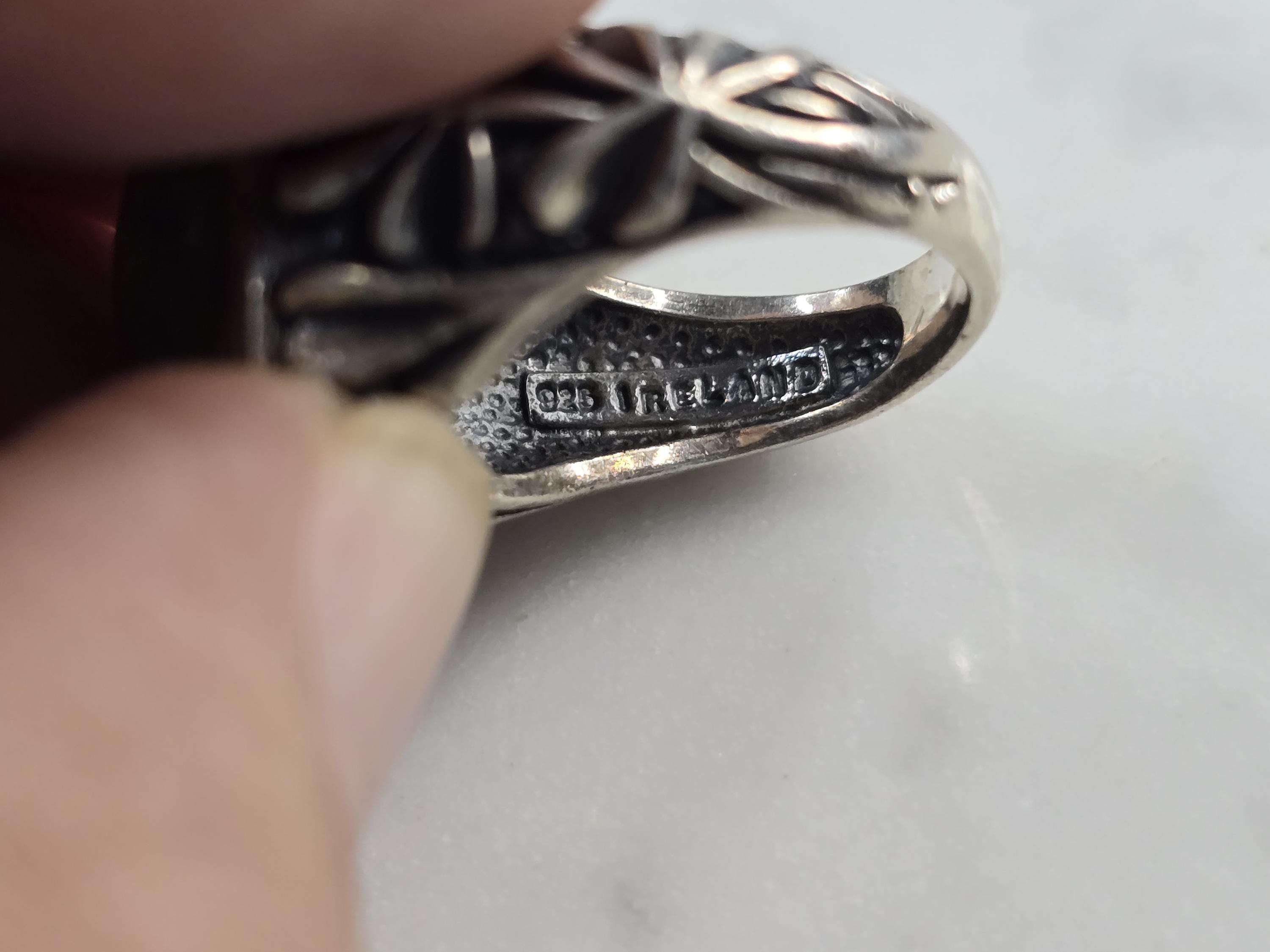 A BEAUTIFUL WOMEN'S STERLING SILVER CONNEMARA MARBLE IRISH RING. THIS STONE IS ONLY FOUND IN IRELAND. STAMPED INSIDE THIS RING IS .925 IRELAND. THE RING WEIGHS 9.6g. THE SIZE OF THE RING IS A 4.5. THE WIDTH OF THE RING IS 1/2". ANY QUESTIONS PLEASE DO NOT HESITATE TO ASK. BE SURE TO CHECK OUT SOME OF MY OTHER GREAT ITEMS UP FOR SALE. THANK YOU.