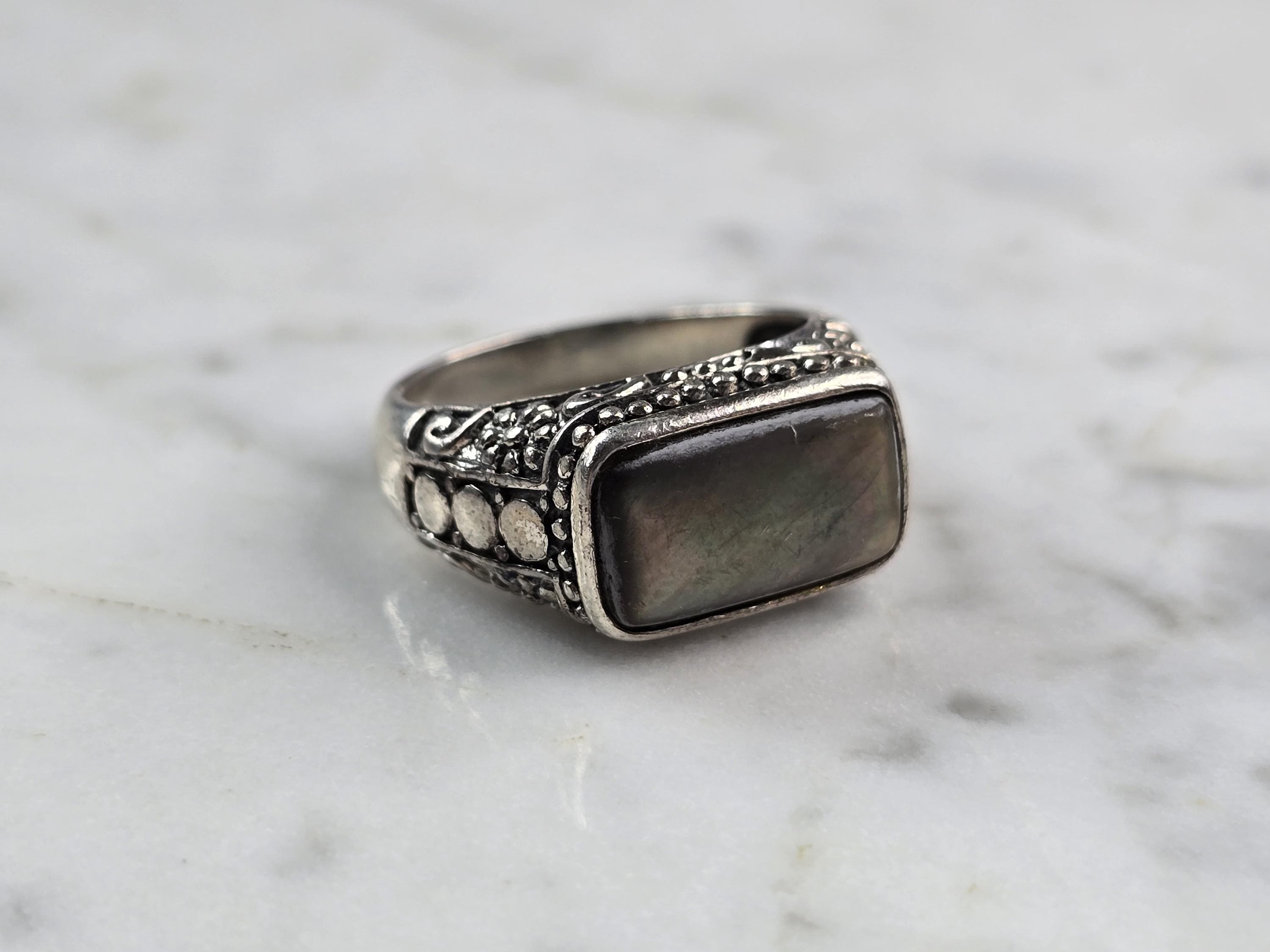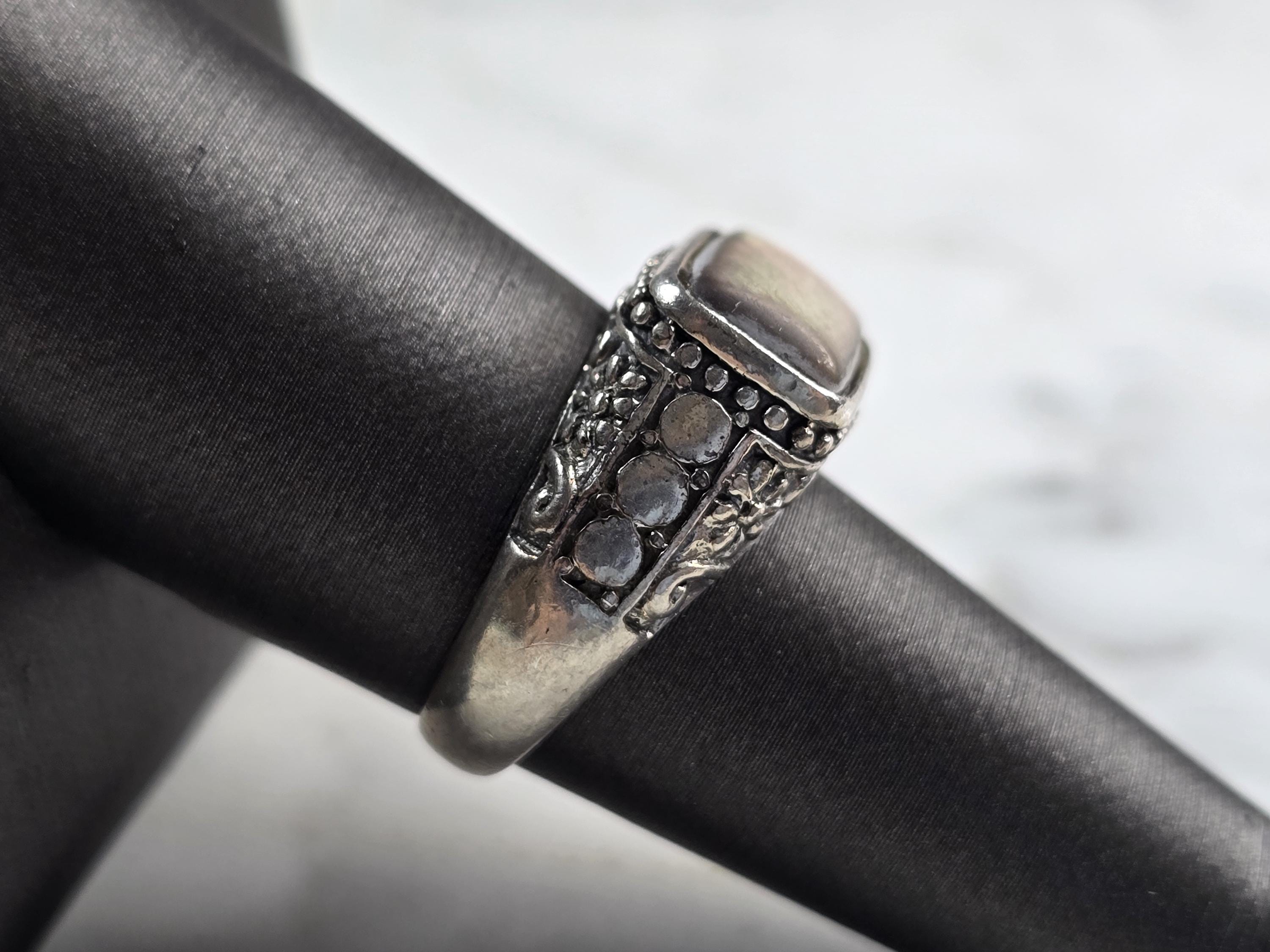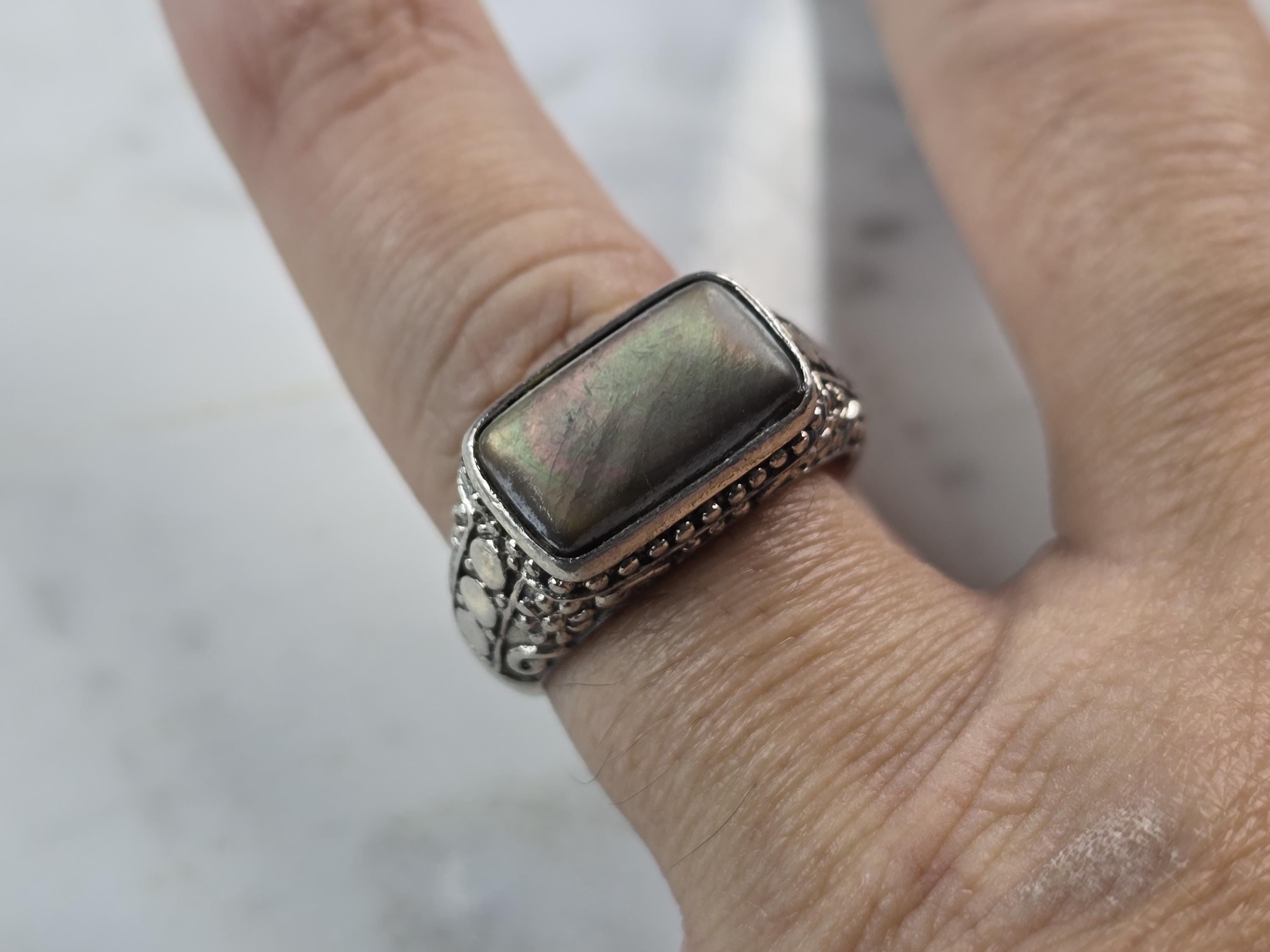 A WOMEN'S VINTAGE ESTATE STERLING SILVER ABALONE RING. THE RING SIZE IS A 7.75 AND WEIGHS 5.0g. THE WIDTH OF THE RING IS 1/4". ANY QUESTIONS PLEASE DO NOT HESITATE TO ASK. BE SURE TO CHECK OUT SOME OF OUR OTHER GREAT ITEMS UP FOR SALE. THANK YOU.