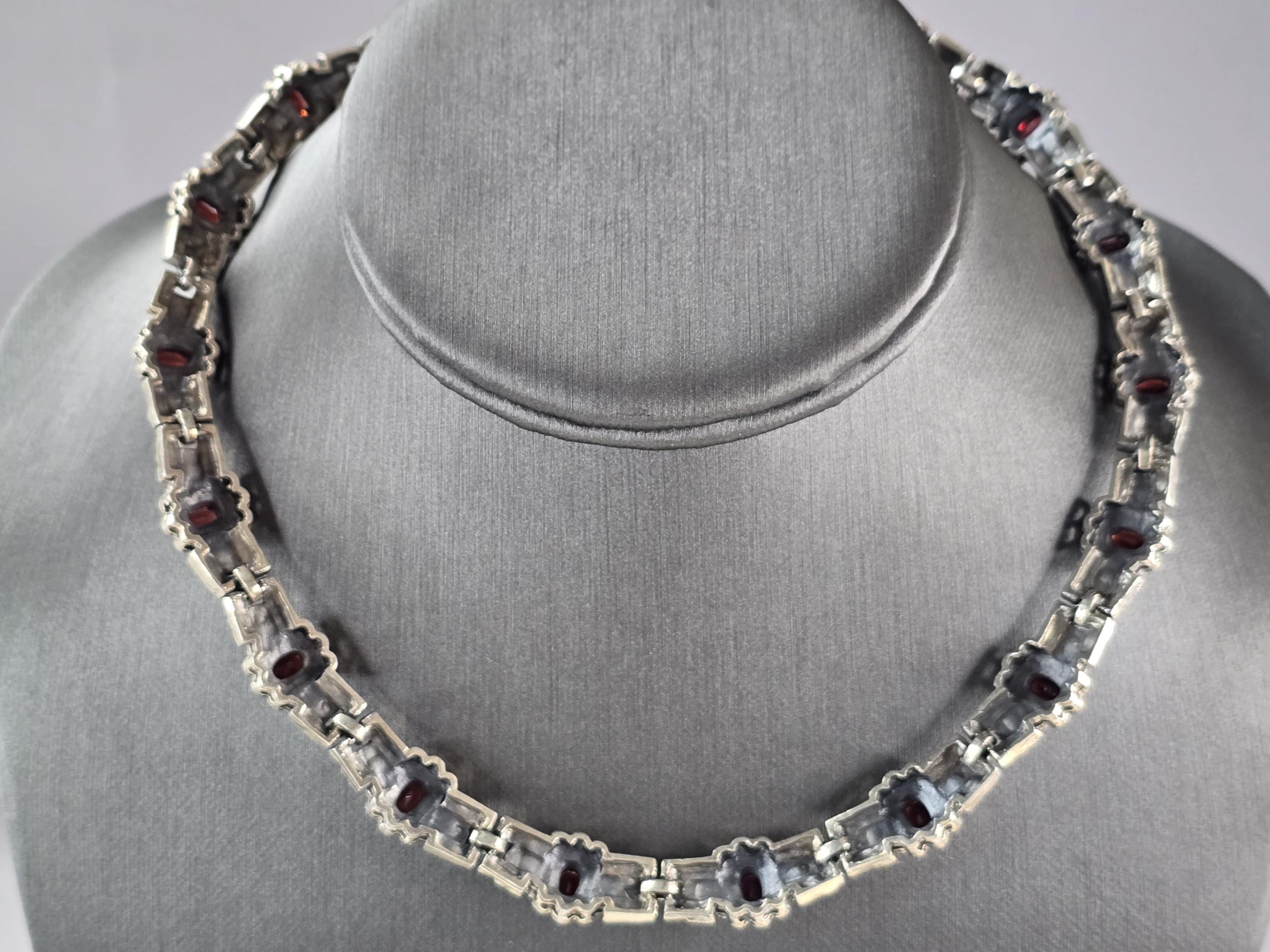 A WOMENS VINTAGE ESTATE STERLING SILVER MODERNIST NECKLACE. THE TOTAL WEIGHT IS 52.6g. NECKLACE MEASURES 16 1/2" LONG BY 1/2" WIDE. MAKES A GREAT GIFT FOR THAT SPECIAL SOMEONE. ANY QUESTIONS PLEASE DONT HESITATE TO ASK. BE SURE TO CHECK OUT SOME OF MY OTHER GREAT ITEMS UP FOR SALE. THANK YOU.