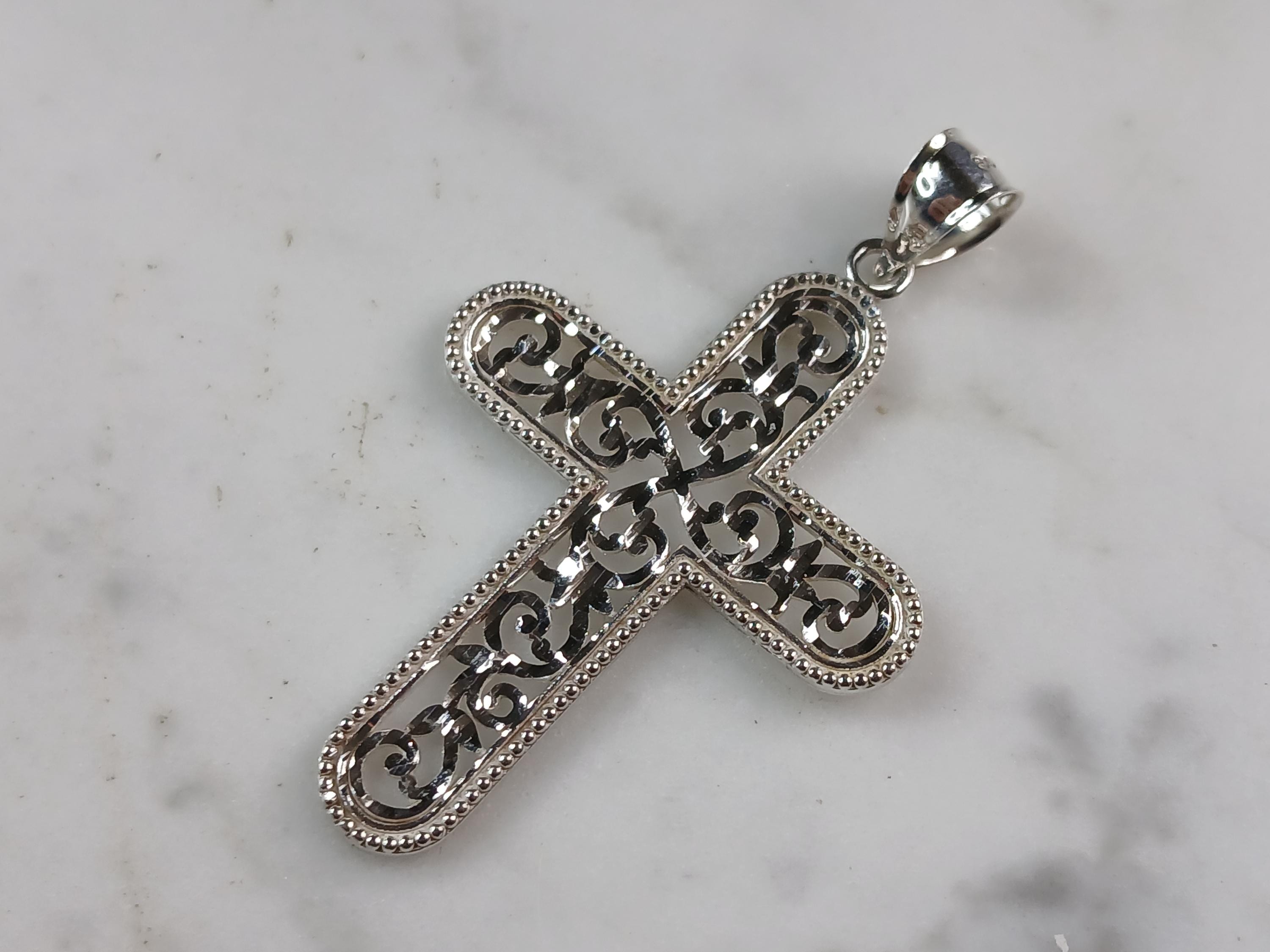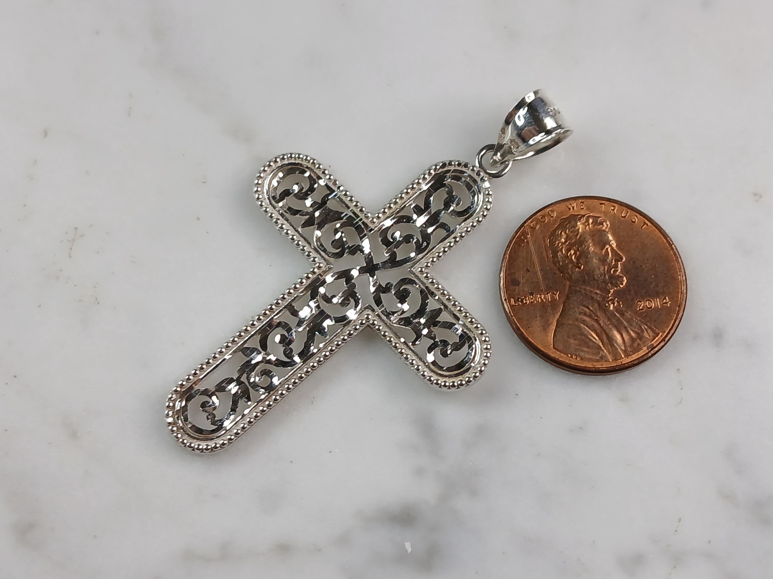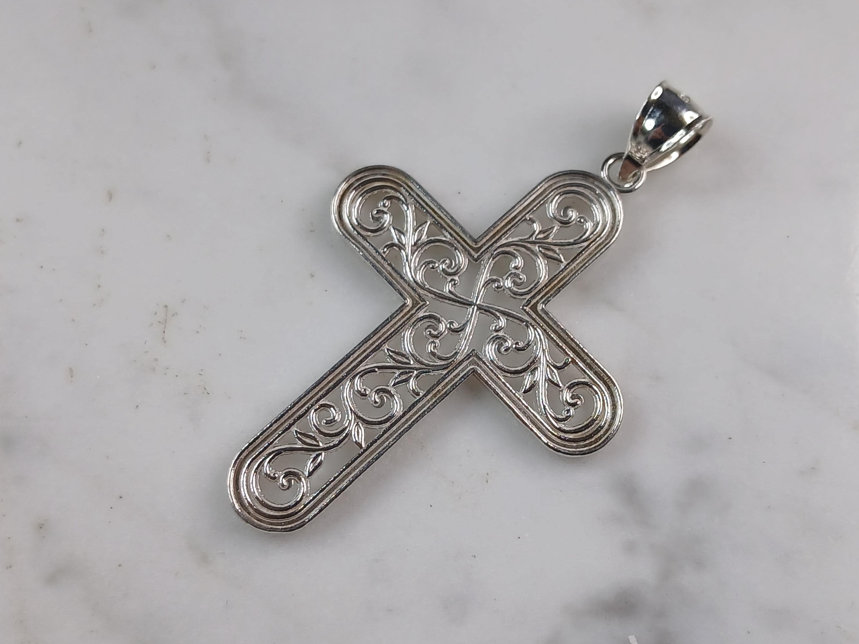 A VERY NICE STERLING SILVER RELIGIOUS CROSS NECKLACE THAT WEIGHS 5.1g. THE PENDANT MEASURES 2" LONG BY 1 1/4" WIDE. THE NECKLACE MEASURES 18" LONG AND IS ADJUSTABLE TO 16" LONG. ANY QUESTIONS PLEASE DONT HESITATE TO ASK. BE SURE TO CHECK OUT SOME OF MY OTHER GREAT ITEMS UP FOR SALE. THANK YOU