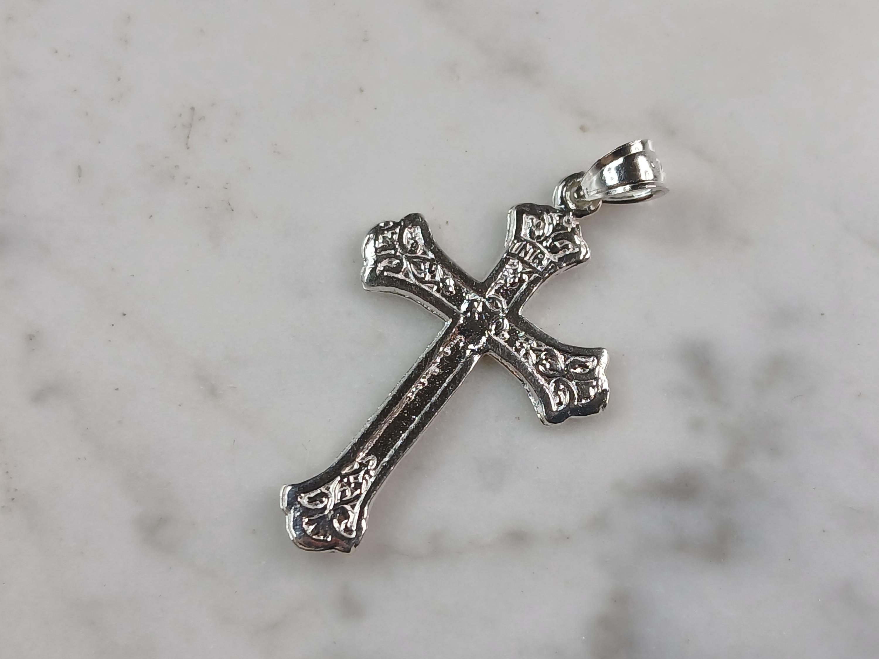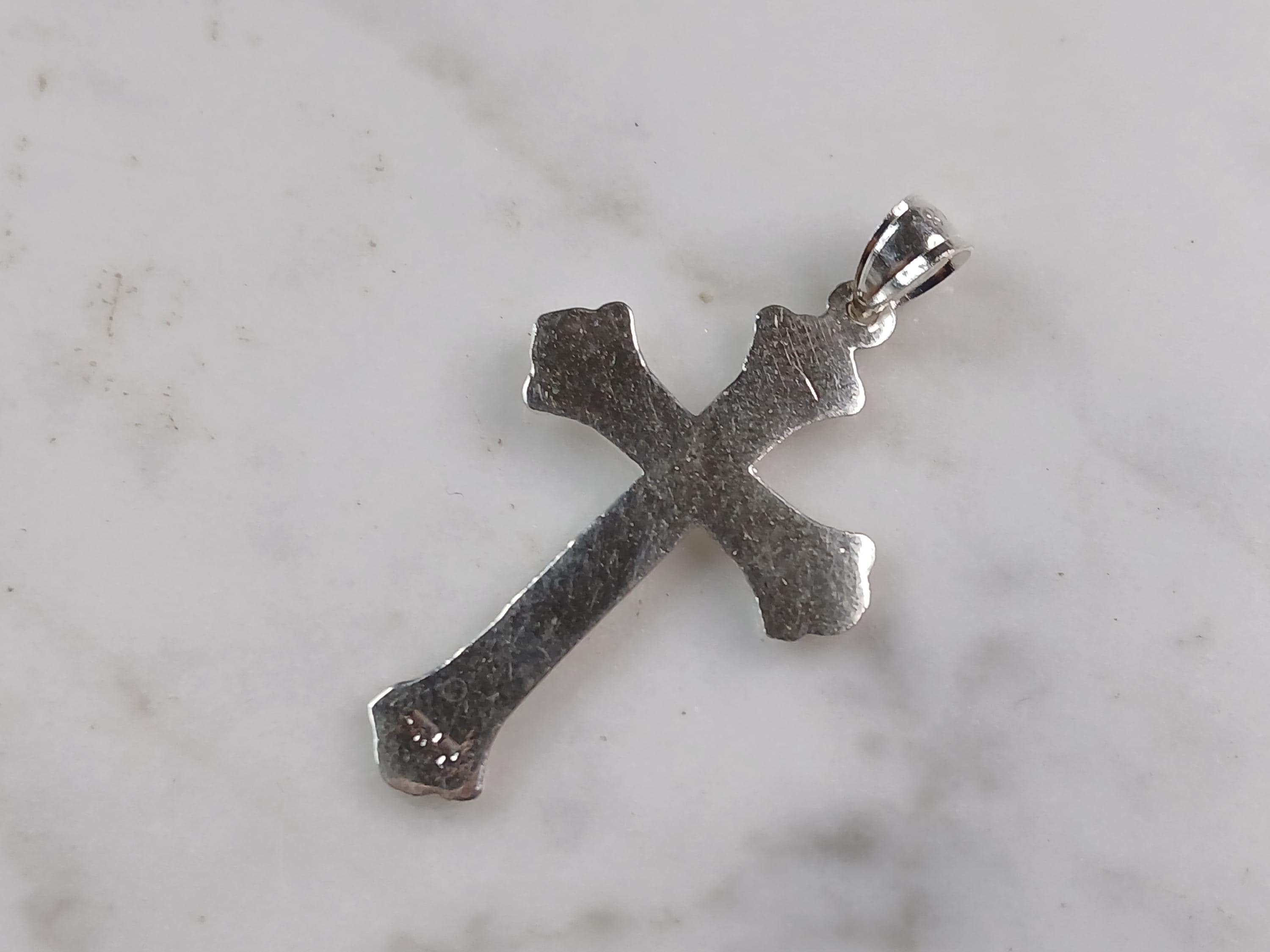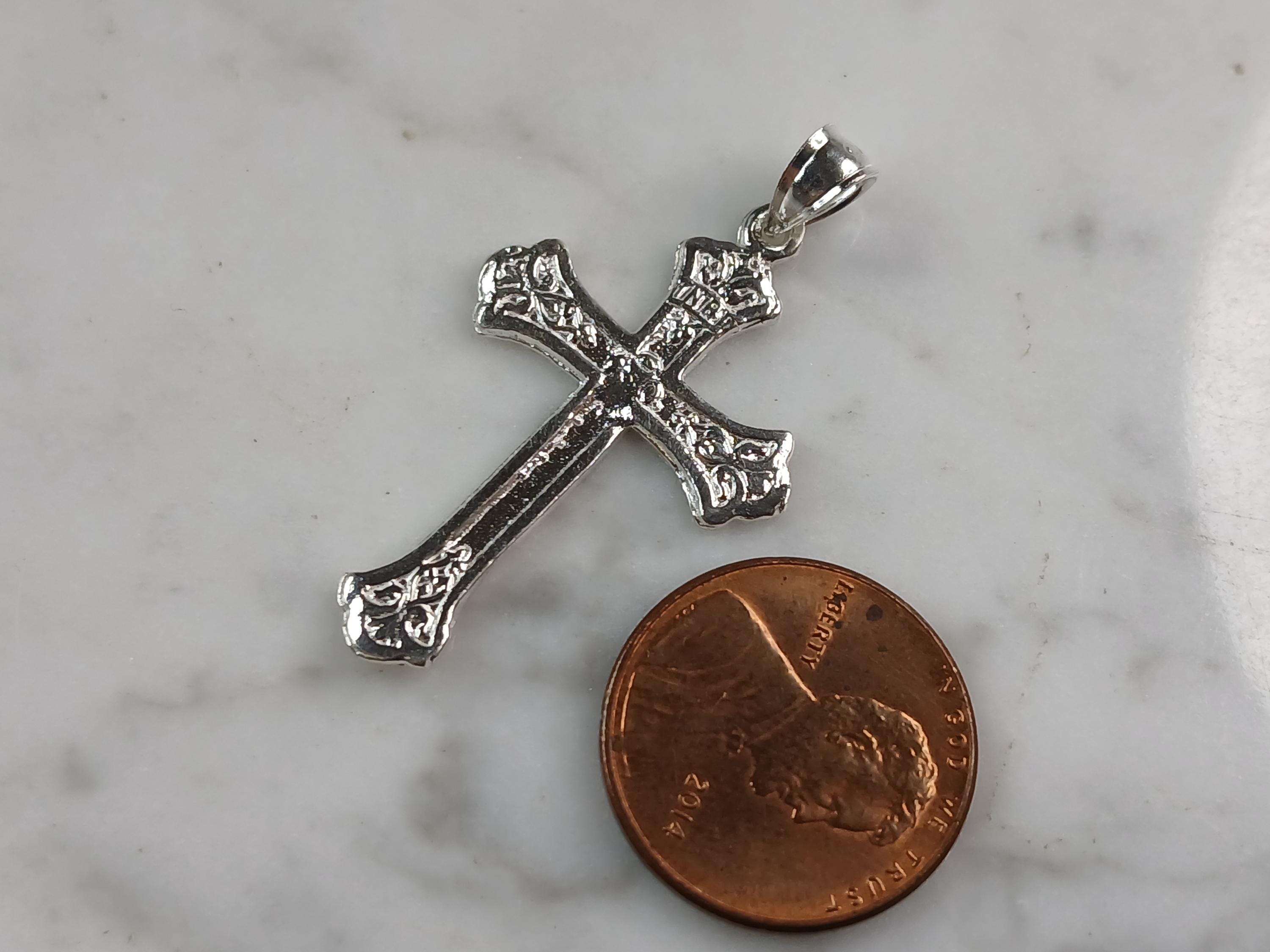 A VERY NICE STERLING SILVER RELIGIOUS CROSS NECKLACE THAT WEIGHS 3.7g. THE PENDANT MEASURES 1 1/2" LONG BY 7/8" WIDE. THE NECKLACE MEASURES 18" LONG AND IS ADJUSTABLE TO 16" LONG. ANY QUESTIONS PLEASE DONT HESITATE TO ASK. BE SURE TO CHECK OUT SOME OF MY OTHER GREAT ITEMS UP FOR SALE. THANK YOU