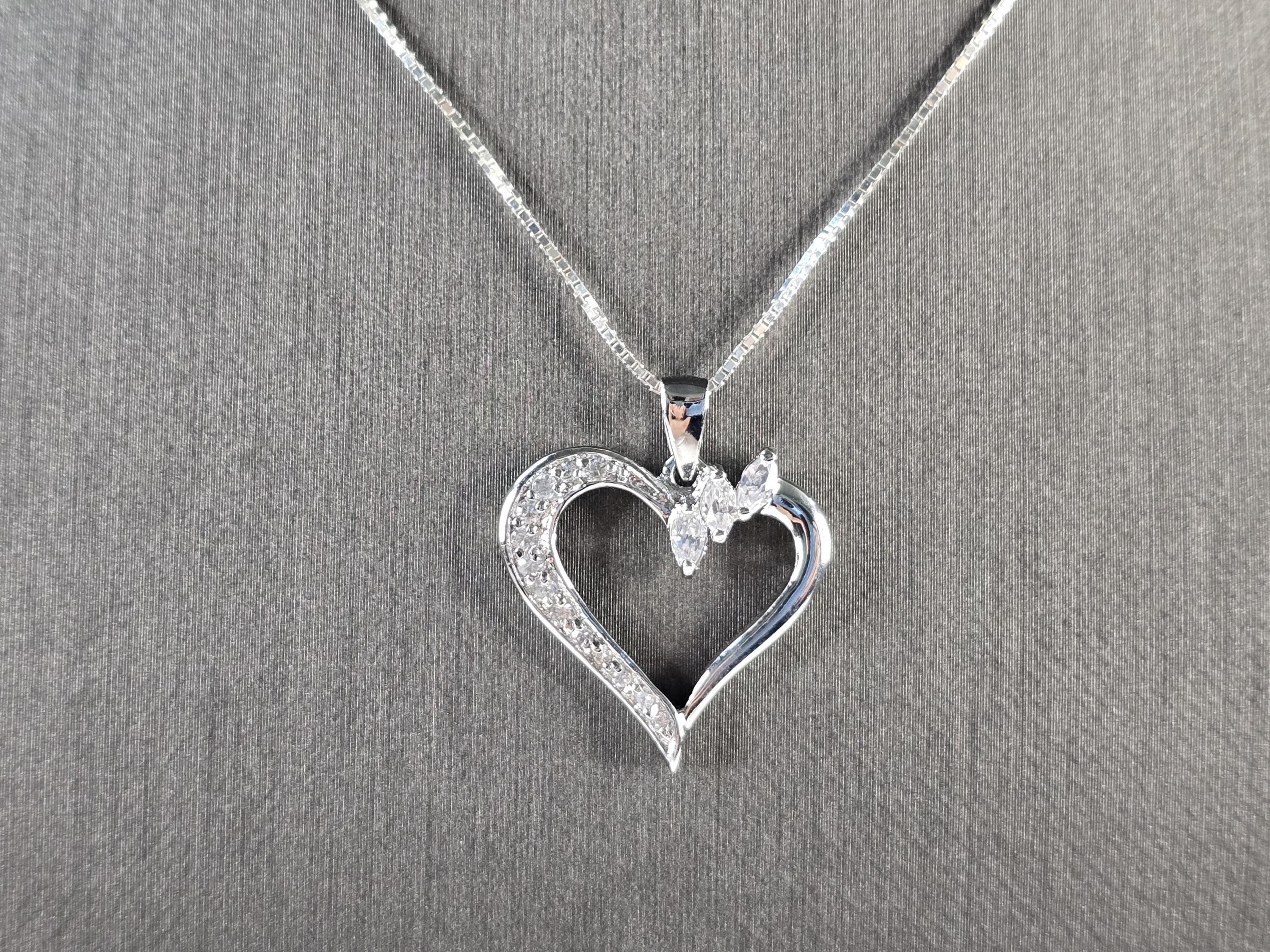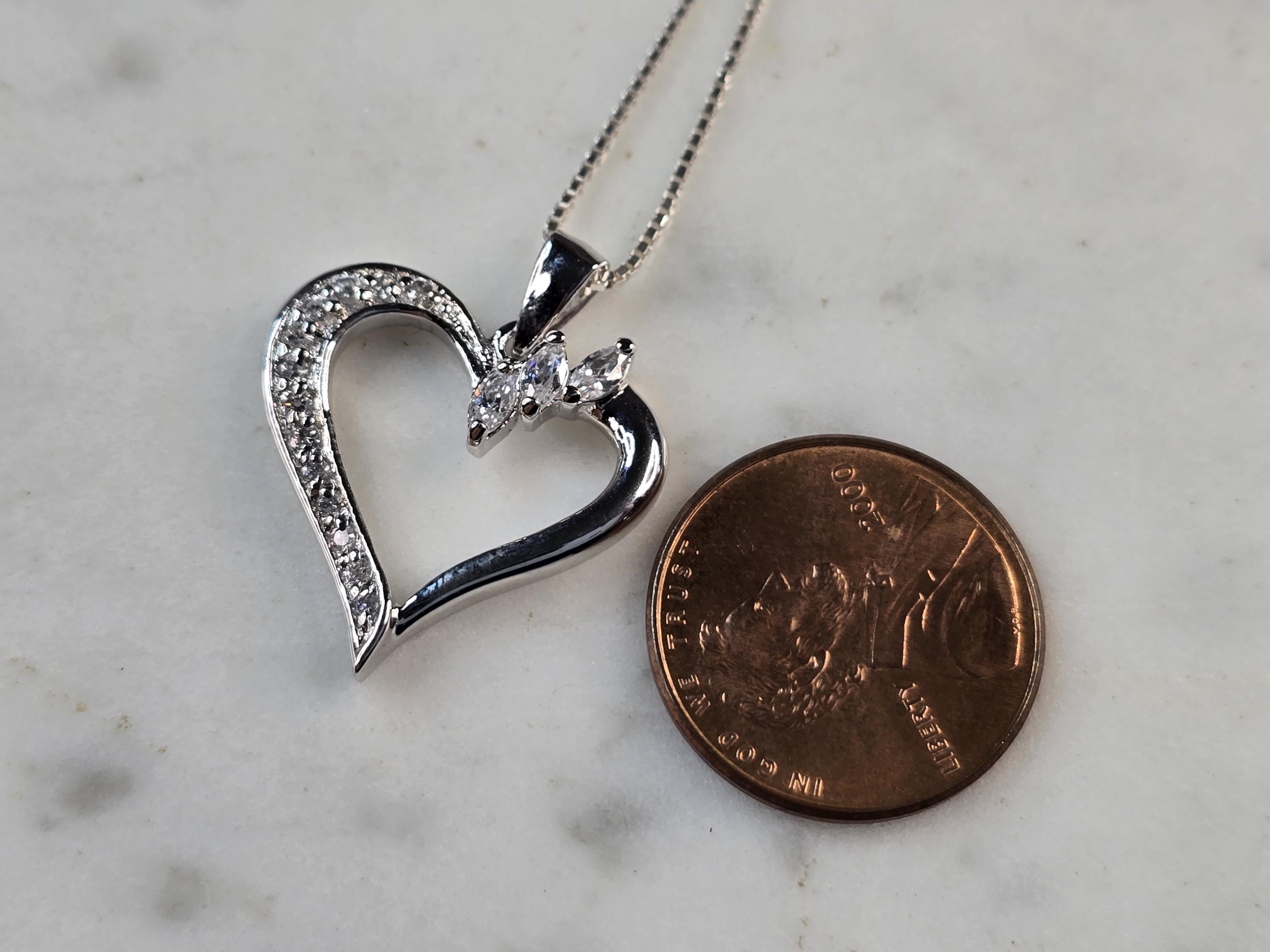 A WOMEN'S VINTAGE ESTATE STERLING SILVER CZ HEART PENDANT WITH NECKLACE. THE TOTAL WEIGHT IS 4.4g. THE NECKLACE MEASURES 18" LONG. THE PENDANT MEASURES 7/8" BY 7/8". MAKES A GREAT GIFT FOR THAT SPECIAL SOMEONE.