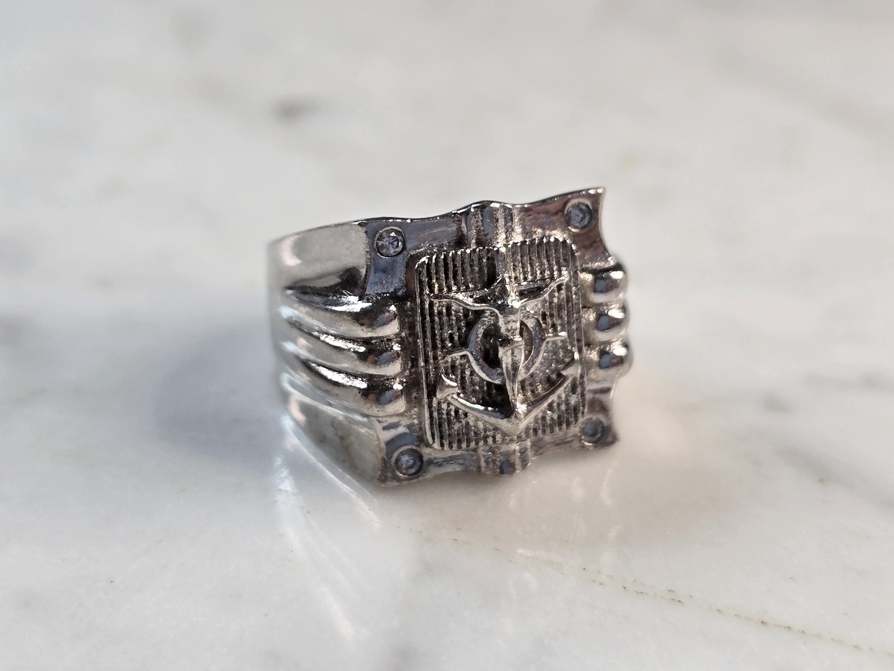 A MENS VINTAGE ESTATE STERLING SILVER JESUS ANCHOR MARITIME RING. THE RING WEIGHS 15.5g, AND IS A SIZE 6.0. WIDTH OF THE RING IS 5/8". THIS RING WOULD MAKE A GREAT GIFT FOR SOMEONE SPECIAL. ANY QUESTIONS PLEASE DONT HESITATE TO ASK. BE SURE TO CHECK OUT SOME OF OUR OTHER GREAT ITEMS UP FOR SALE. THANK YOU.
