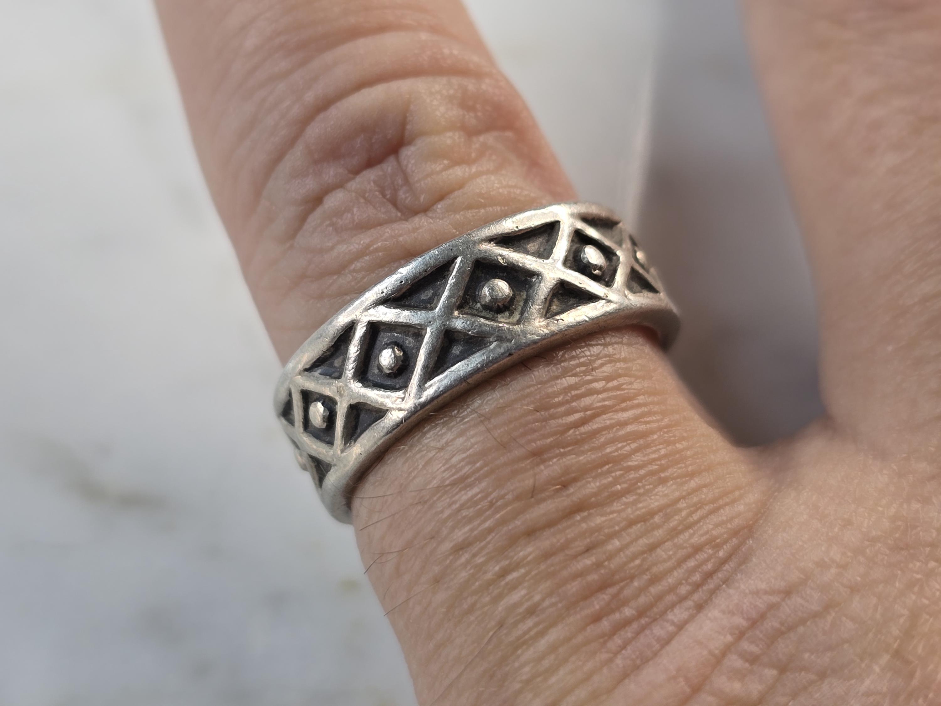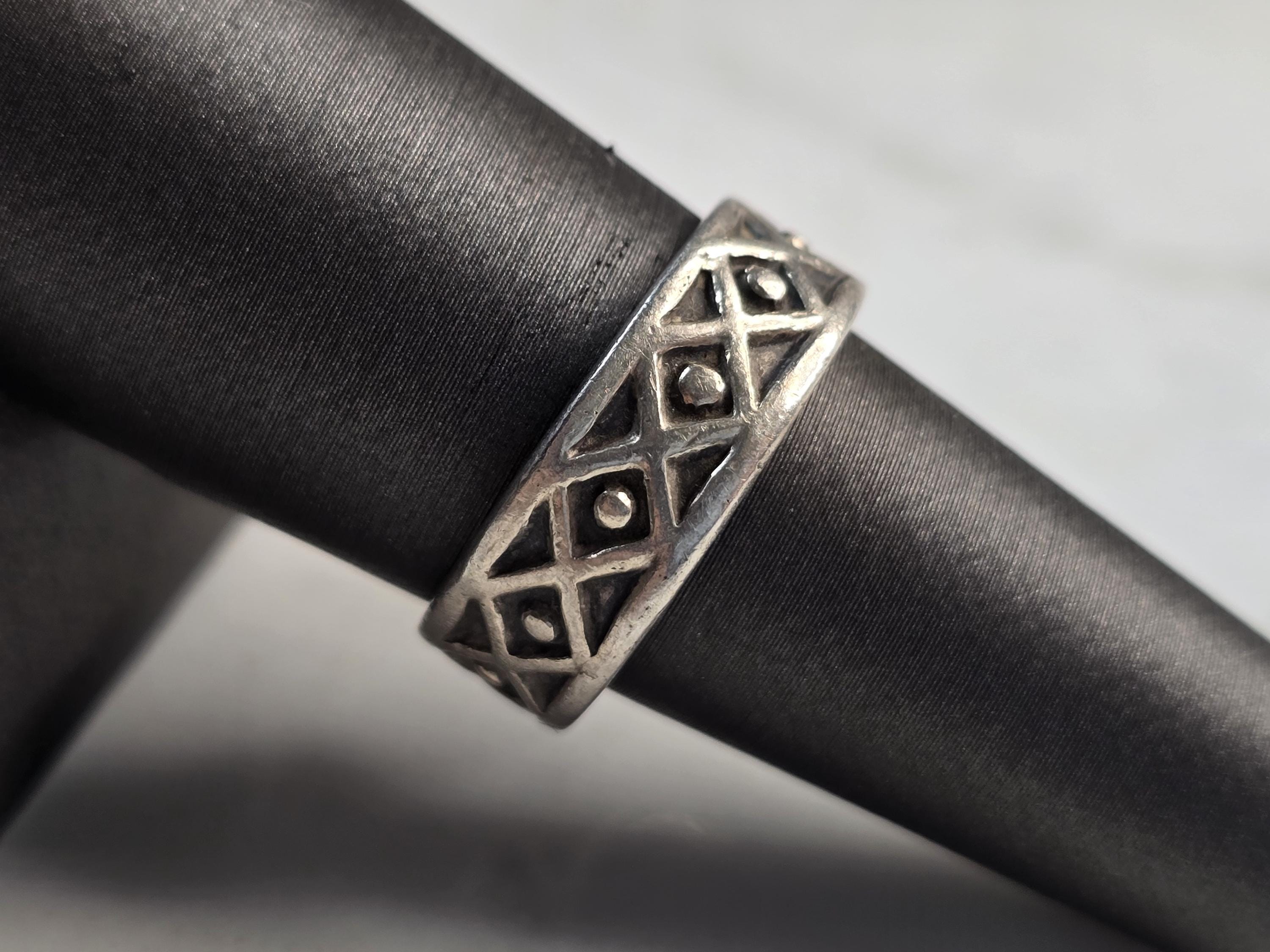 A WOMENS VINTAGE ESTATE STERLING SILVER CELTIC ETERNITY BAND RING. RING WEIGHS 5.4g, AND IS A SIZE 7.75. THE WIDTH OF THE RING IS 1/4". THIS WOULD MAKE A NICE GIFT FOR THAT SOMEONE SPECIAL. ANY QUESTIONS PLEASE DO NOT HESITATE TO ASK. BE SURE TO CHECK OUT SOME OF MY OTHER GREAT ITEMS UP FOR SALE. THANK YOU