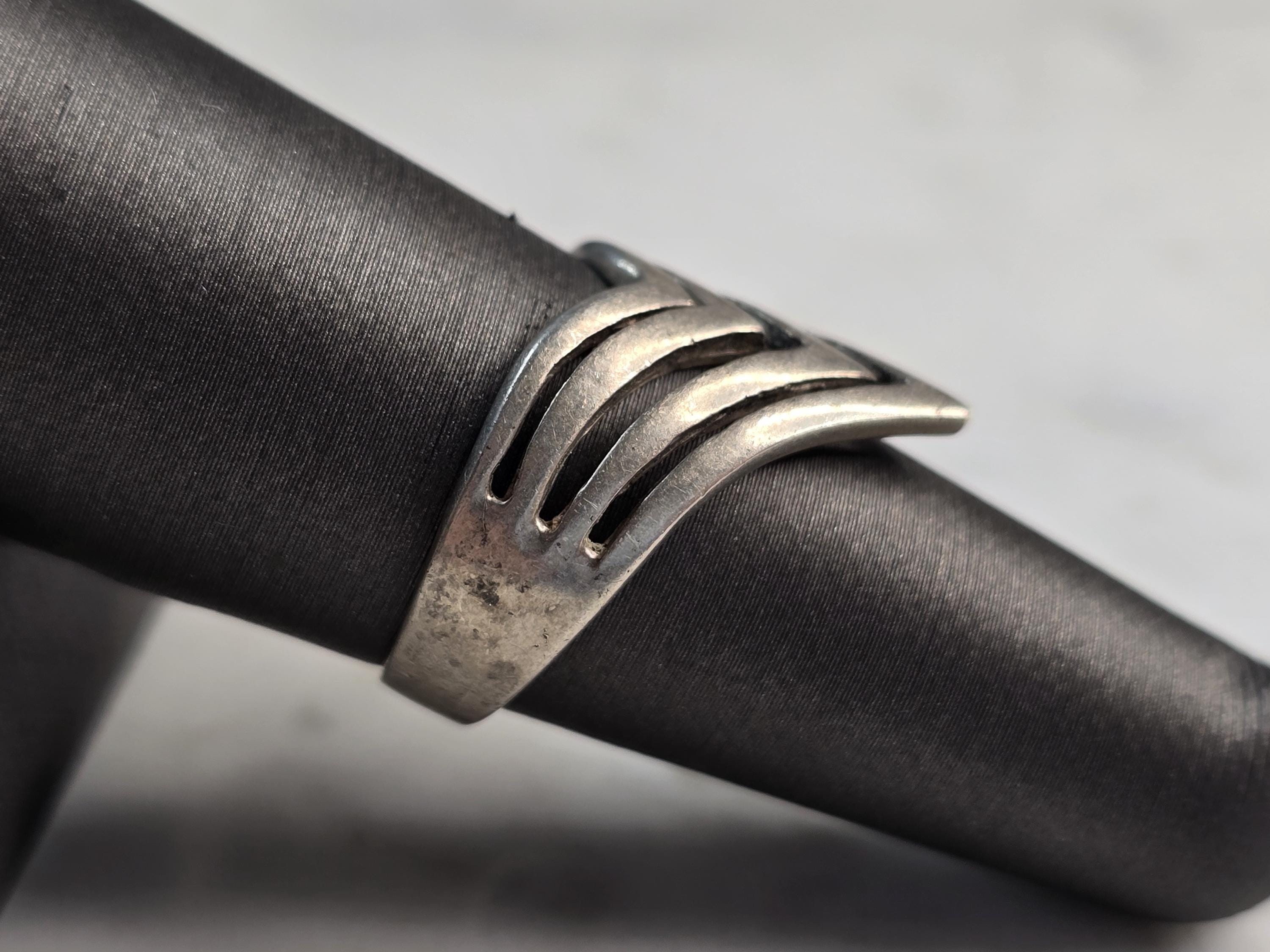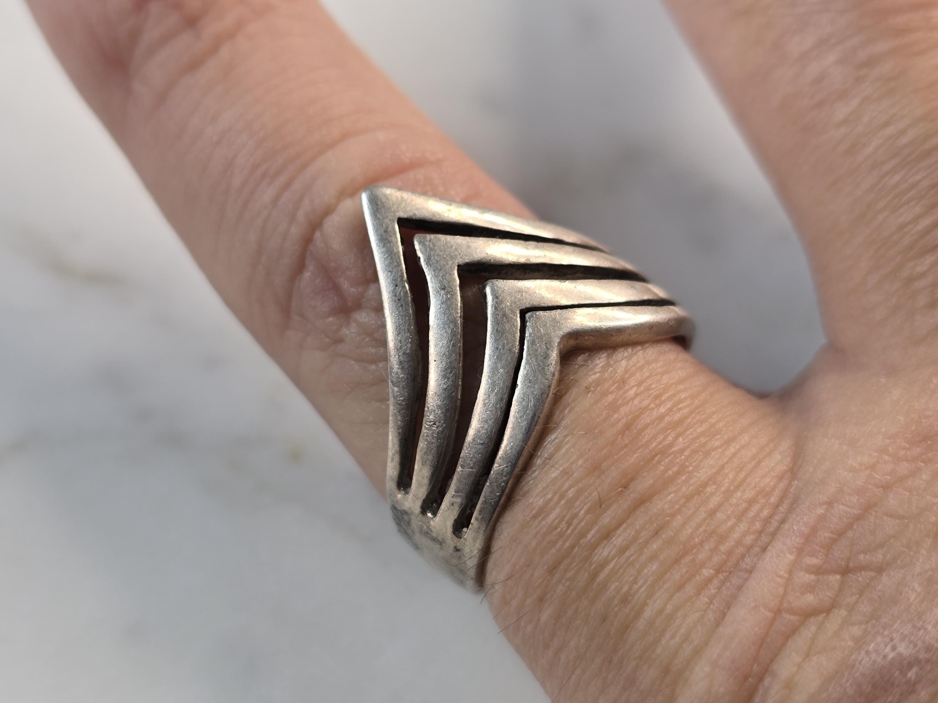 A WONDERFUL WOMENS VINTAGE ESTATE STERLING SILVER MODERNIST RING. THE RING WEIGHS 3.9g, AND IS A SIZE 8.0. THE WIDTH OF THE RING IS 5/8". ANY QUESTIONS PLEASE DO NOT HESITATE TO ASK. BE SURE TO CHECK OUT SOME OF MY OTHER GREAT ITEMS UP FOR SALE. THANK YOU.