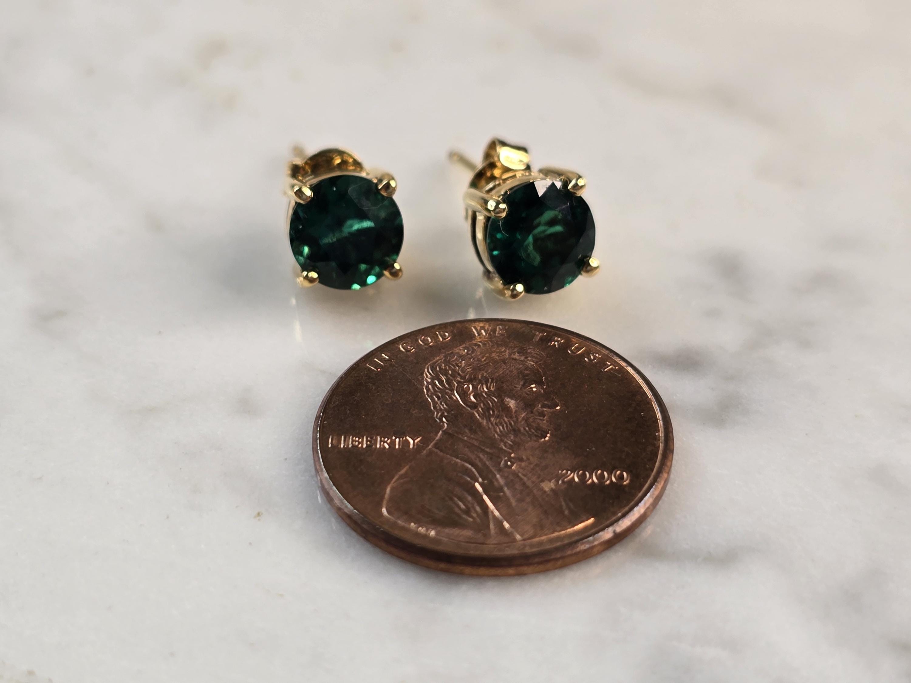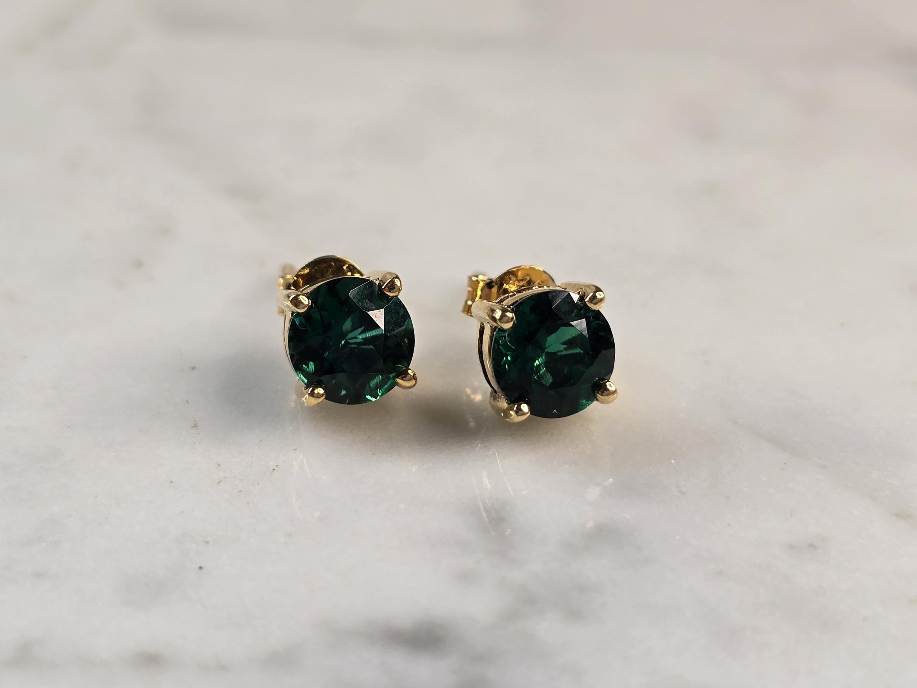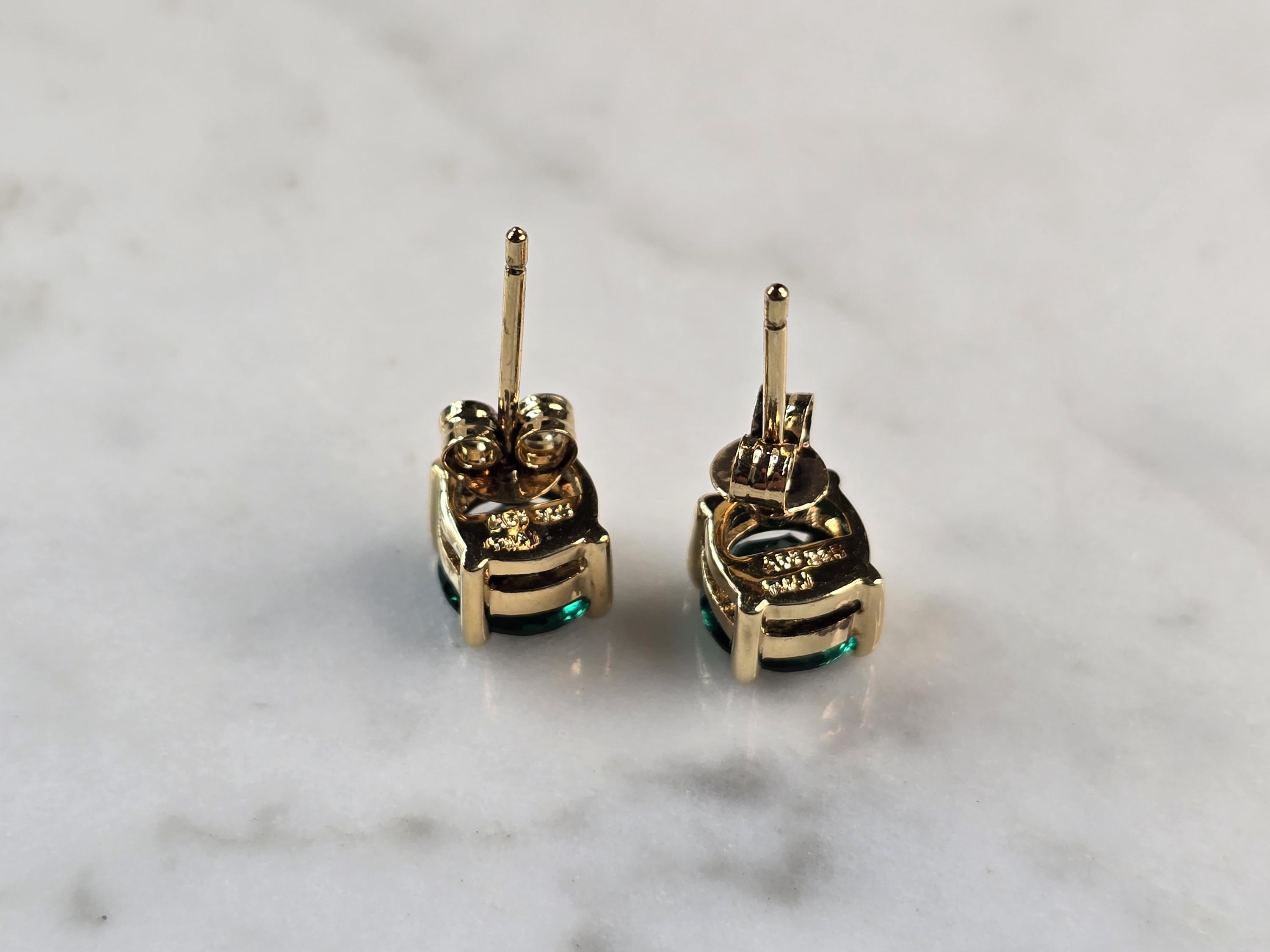 A PAIR OF WOMENS STERLING SILVER GOLD TONE EMERALD COLORED STUD EARRINGS THAT WEIGH 1.8g AND MEASURE 1/4" LONG BY 1/4" WIDE. NOT SURE IF STONES ARE NATURAL OR MAN MADE. ANY QUESTIONS, PLEASE DO NOT HESITATE TO ASK. BE SURE TO CHECK OUT SOME OF MY OTHER GREAT ITEMS UP FOR SALE. THANK YOU