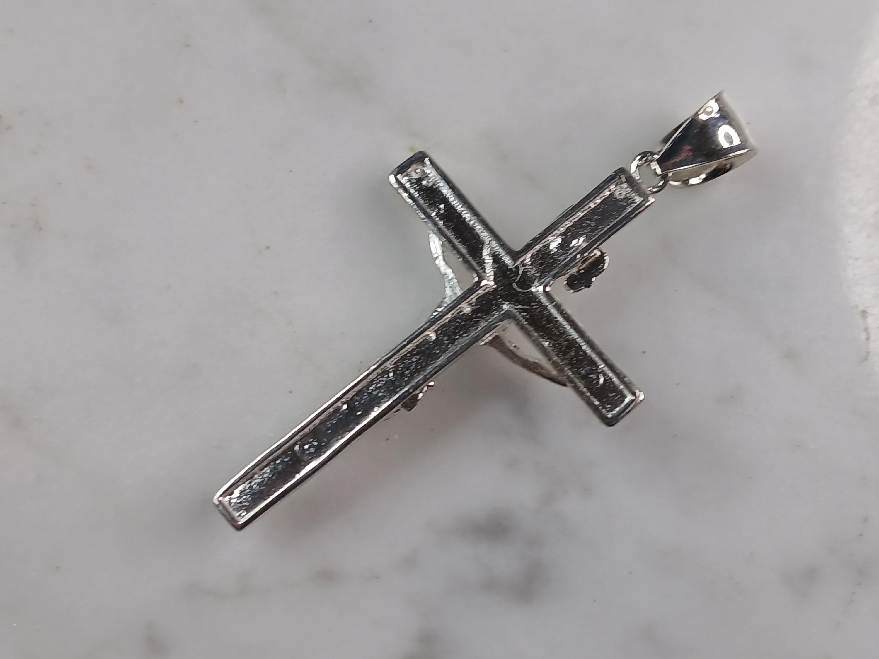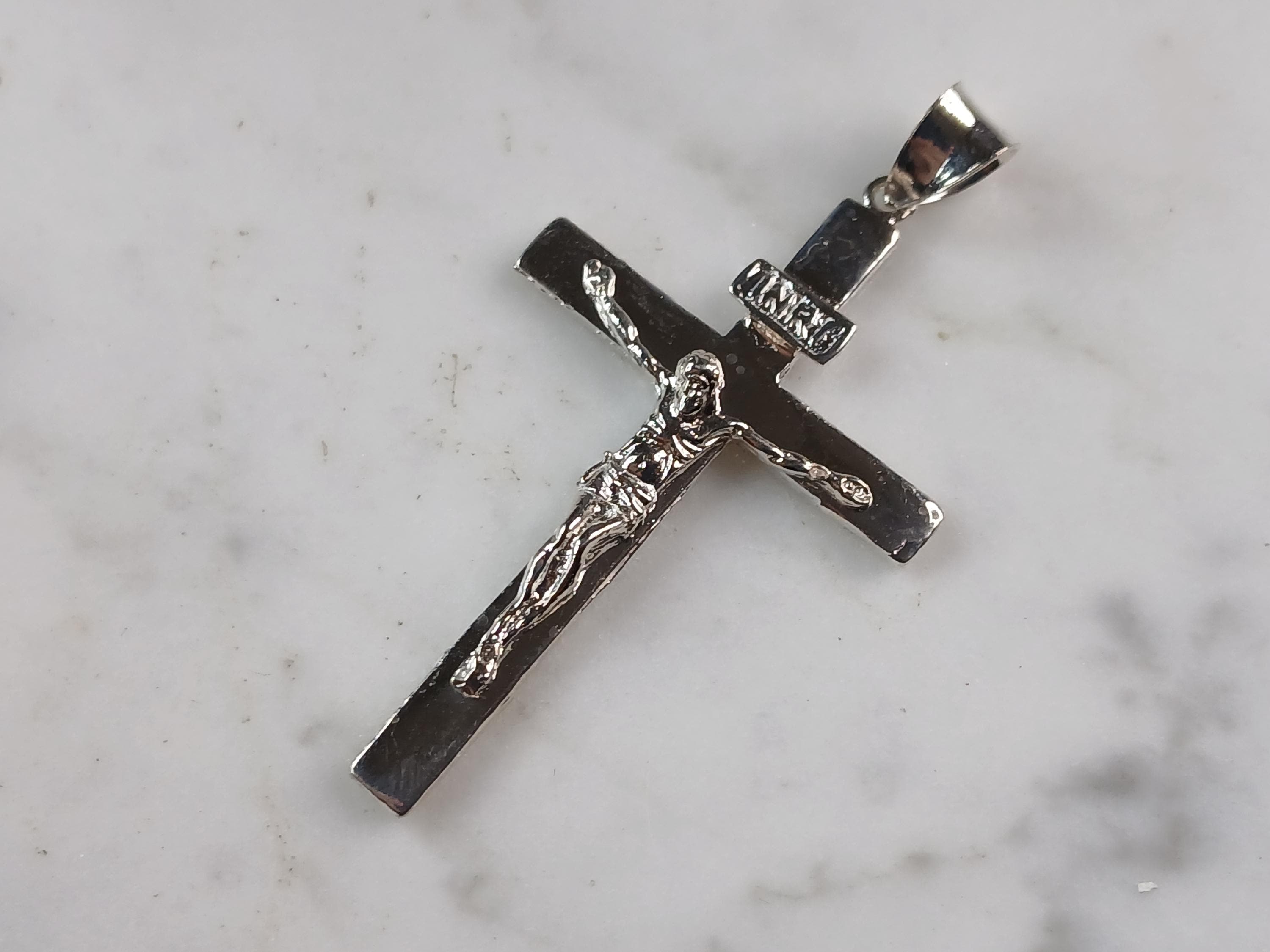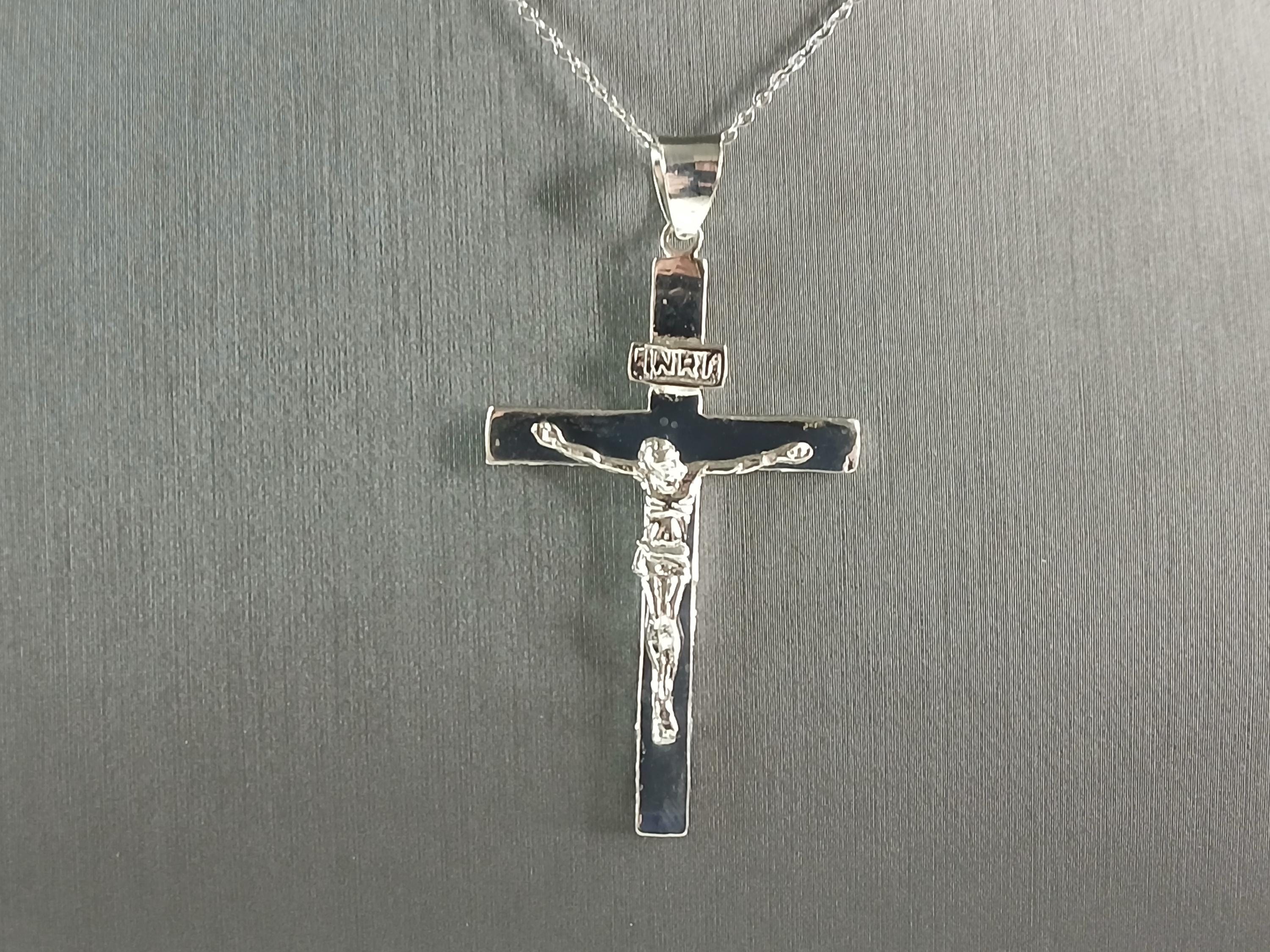 A VERY NICE STERLING SILVER RELIGIOUS CROSS PENDANT WITH NECKLACE THAT WEIGHS 5.9g. THE PENDANT MEASURES 2 1/8" LONG BY 1 1/8" WIDE. THE NECKLACE MEASURES 18" LONG. ANY QUESTIONS PLEASE DONT HESITATE TO ASK. BE SURE TO CHECK OUT SOME OF MY OTHER GREAT ITEMS UP FOR SALE. THANK YOU