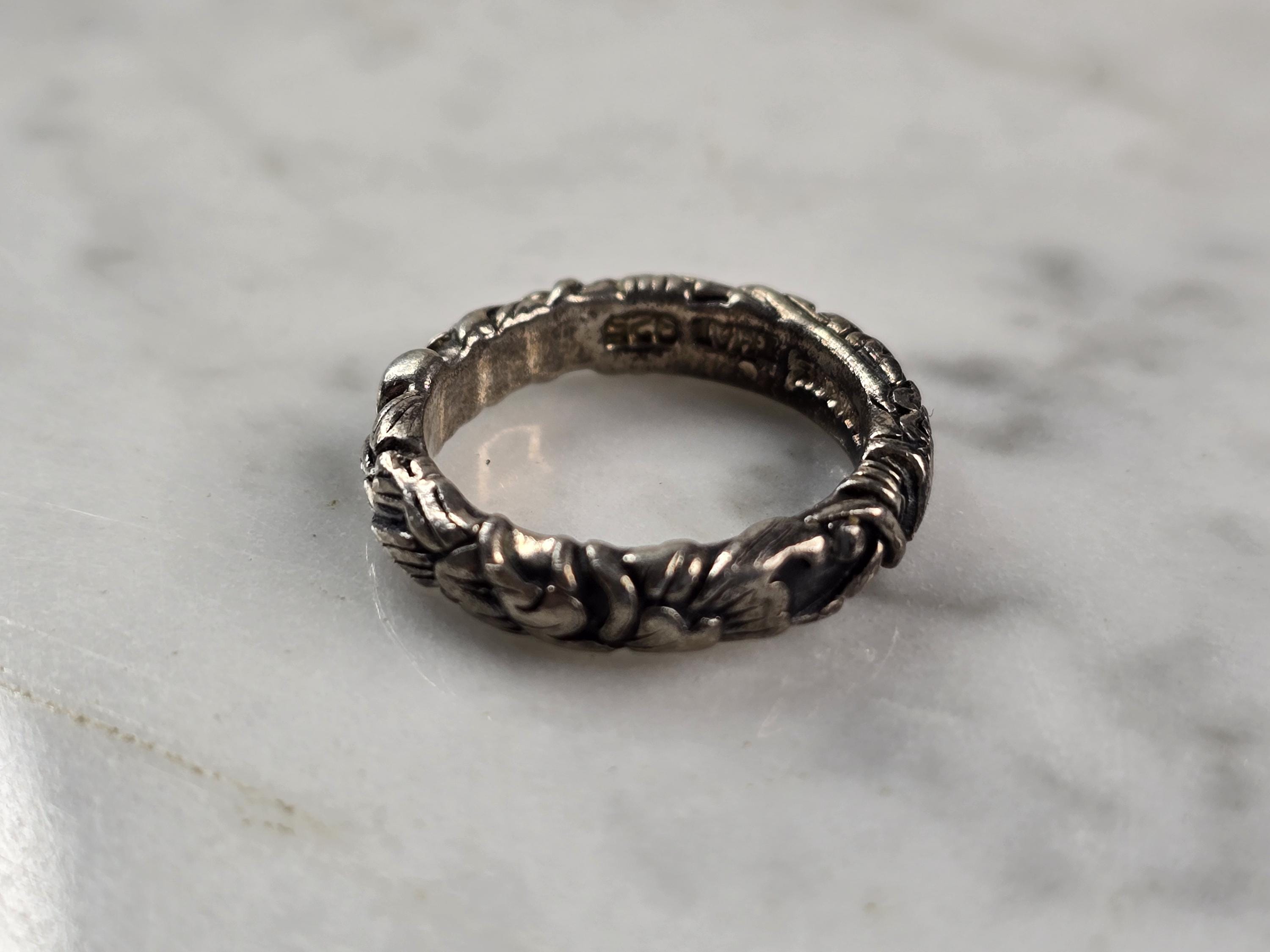A WOMENS VINTAGE ESTATE STERLING SILVER FLORAL RING. THE TOTAL WEIGHT OF THE RING IS 4.0g. THE RING SIZE IS 4.75. THE WIDTH OF THE RING IS 1/8". MAKES A GREAT GIFT FOR THAT SPECIAL SOMEONE. ANY QUESTIONS, PLEASE ASK. BE SURE TO CHECK OUT SOME OF OUR OTHER GREAT ITEMS FOR SALE.