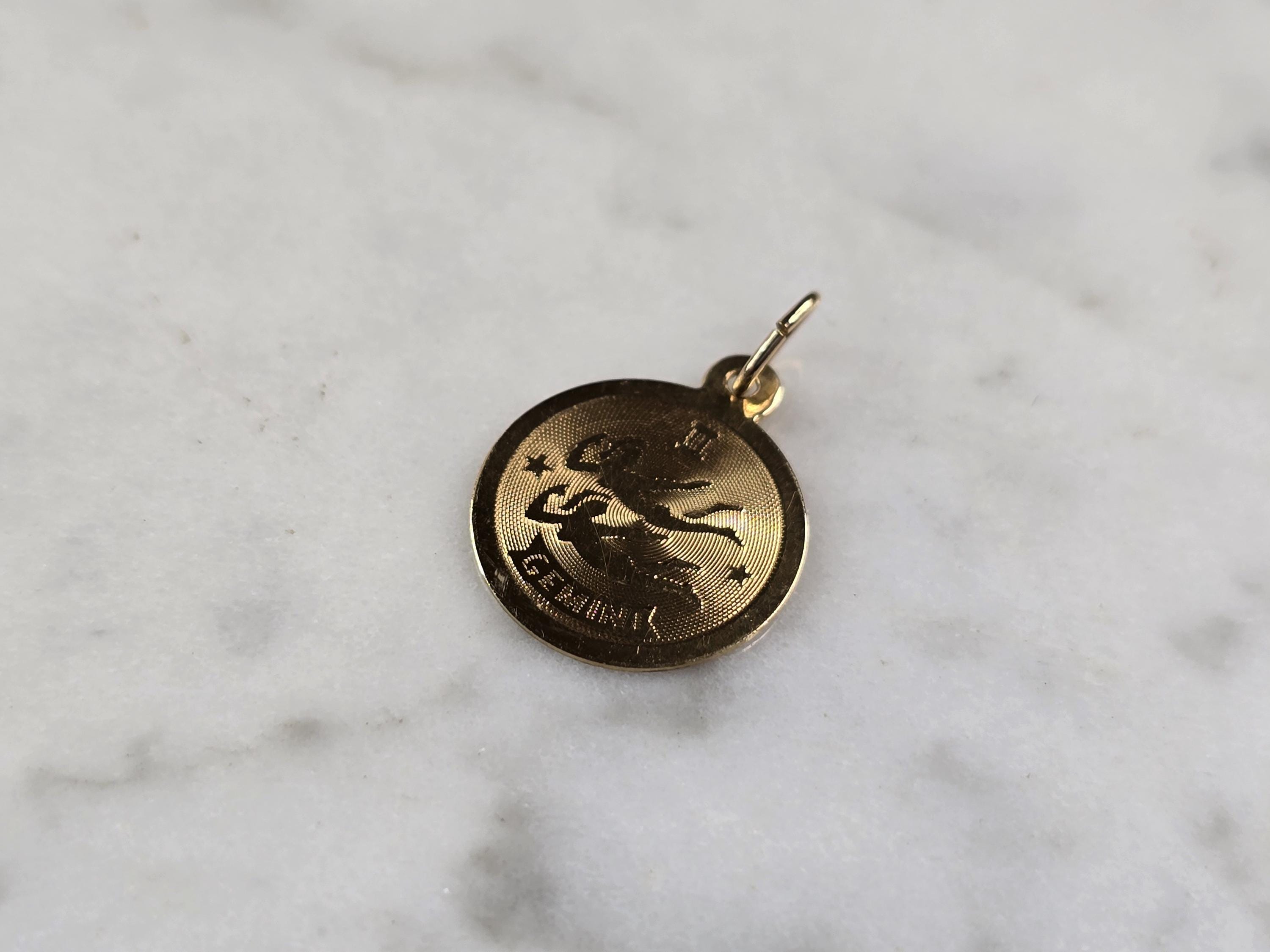 A WOMENS VINTAGE ESTATE 14K YELLOW GOLD GEMINI CHARM OR PENDANT. THE CHARM PENDANT WEIGHS 0.6g AND MEASURES 3/4" LONG BY 1/2" WIDE. MAKES A GREAT GIFT FOR THAT SOMEONE SPECIAL. ANY QUESTIONS, PLEASE ASK. BE SURE TO CHECK OUT OUR OTHER ITEMS FOR SALE.