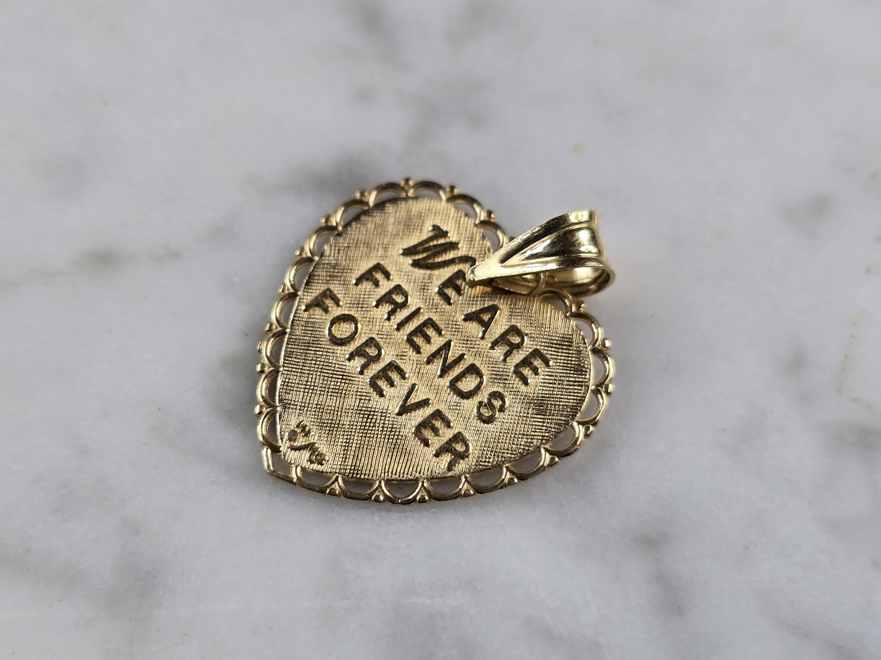 A WOMENS VINTAGE ESTATE 14K GOLD SISTER LOVE HEART PENDANT MADE BY MICHAEL ANTHONY. THE TOTAL WEIGHT IS 1.2g. THE PENDANT MEASURES 3/4" LONG BY 5/8" WIDE. PENDANT IS MARKED ON THE BACK. MAKES A GREAT GIFT FOR THAT SOMEONE SPECIAL. ANY QUESTIONS, PLEASE ASK. BE SURE TO CHECK OUT SOME OF MY OTHER GREAT ITEMS FOR SALE.